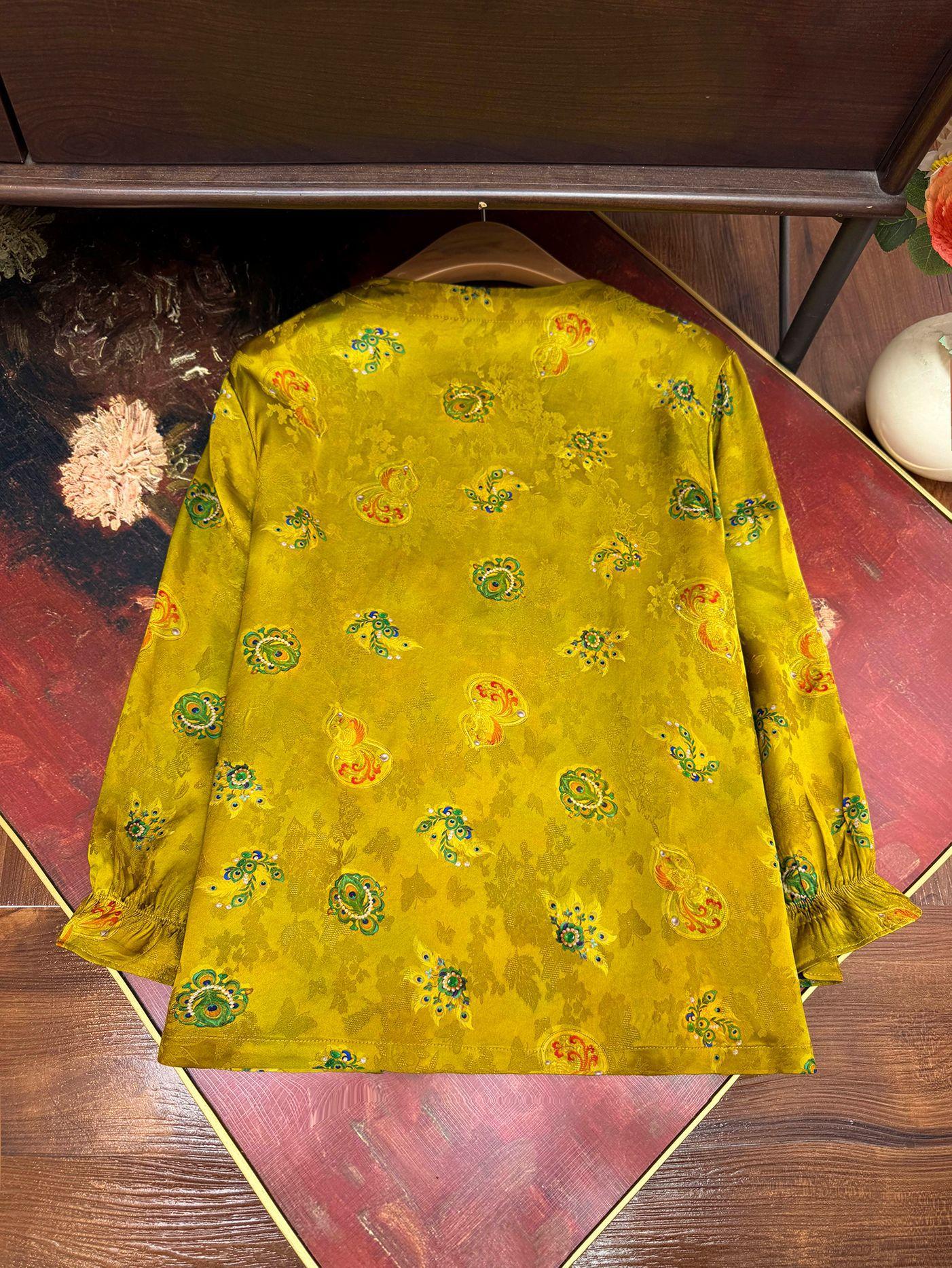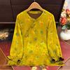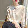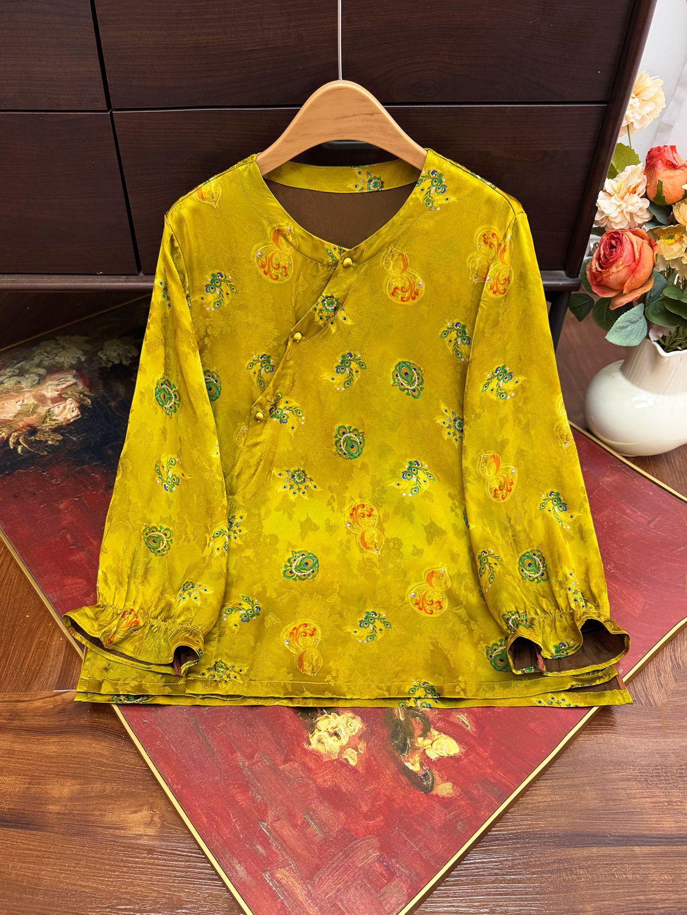 2025 Principios de Otoño Nuevo Estilo Jacquard Chino Nuevo Estilo Nacional Chaqueta Cuello Mao Solapa Inclinada Cárdigan Retro Top Suave Cómodo Mujer