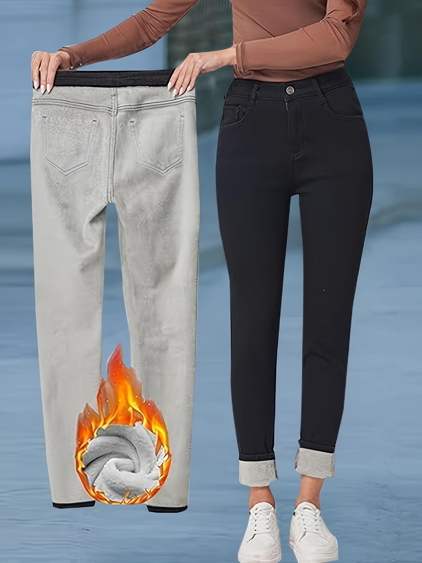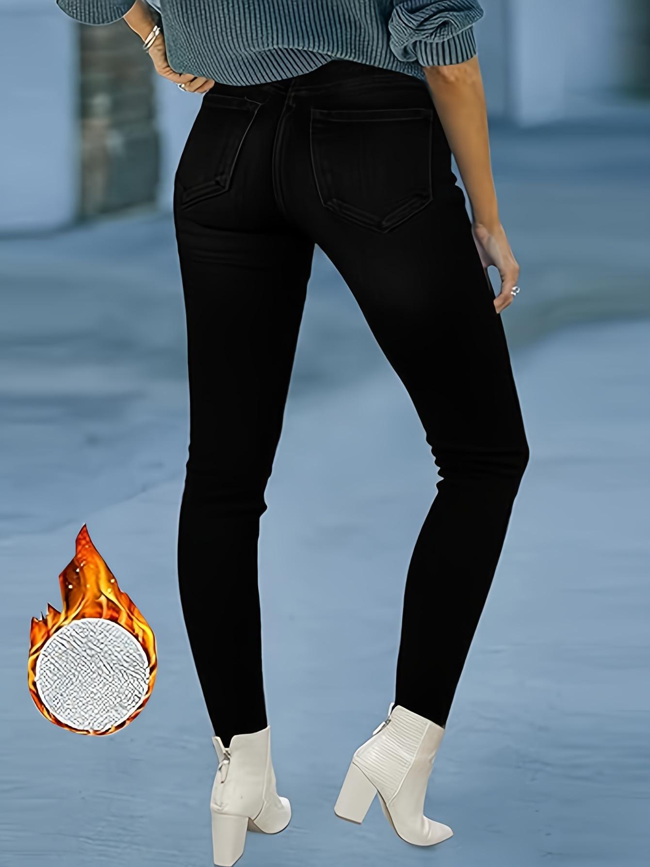 Amazon Xiyin 2025 Nuevo Jeans Skinny Casual para Mujer con Bolsillos, Forro Polar, Skinny, Transfronterizo, Directo del Fabricante