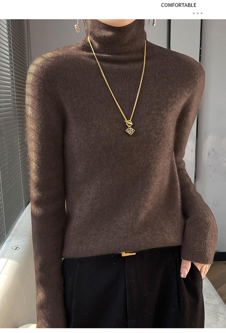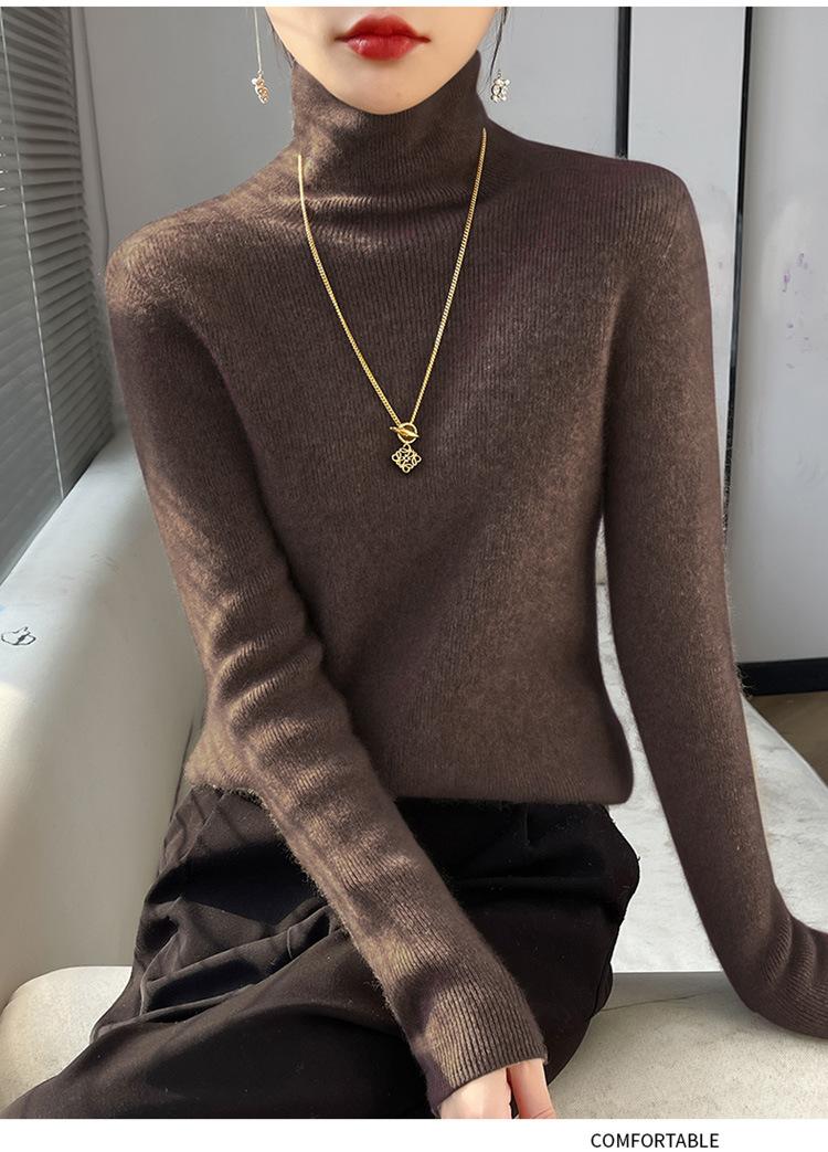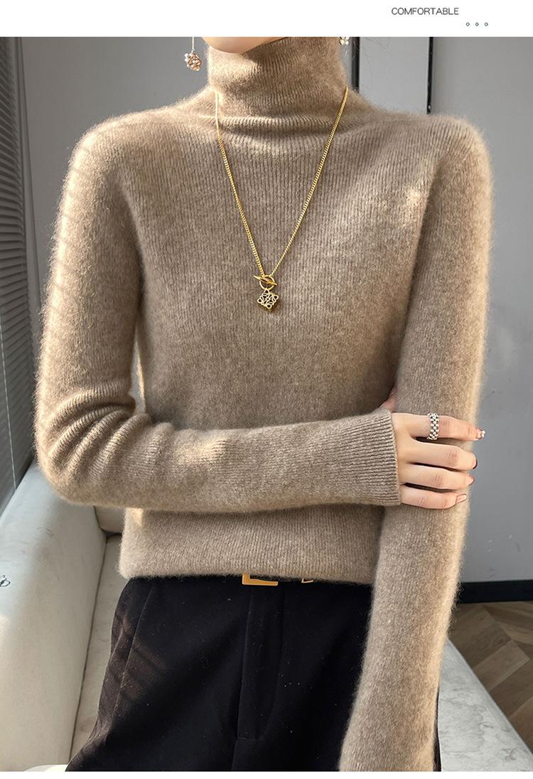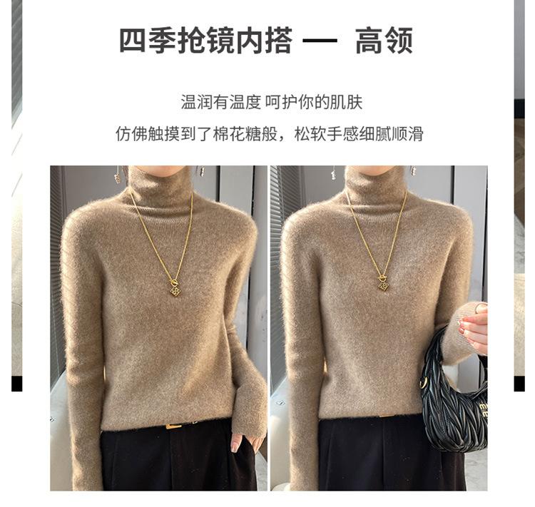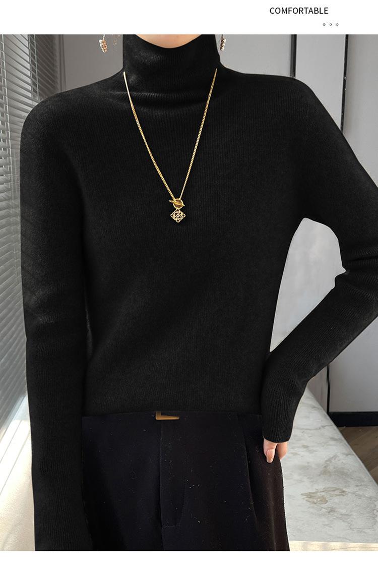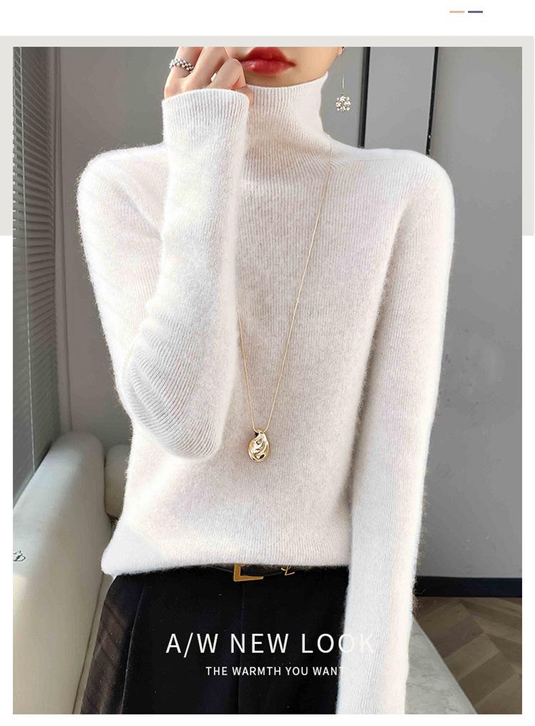 Nuevo Suéter de Punto de Cuello Alto de Invierno y Otoño para Mujer, Suéter de Punto de Manga Larga, Ajustado y Delgado, Interior de Cuello Alto, Camiseta Básica