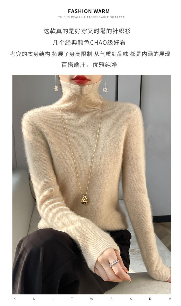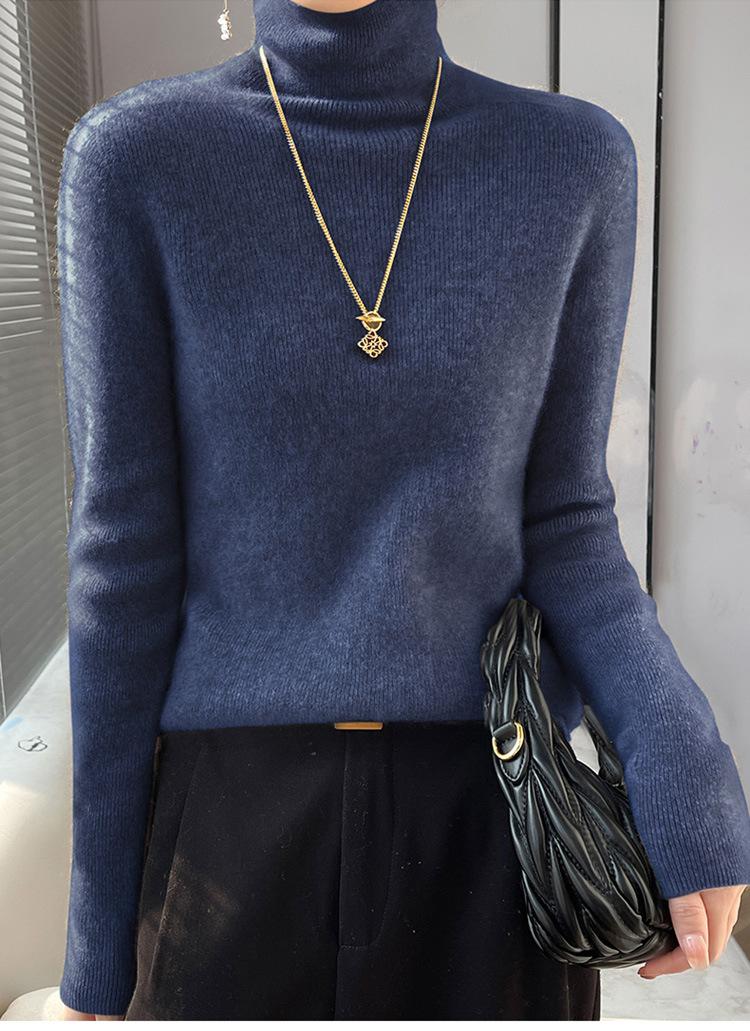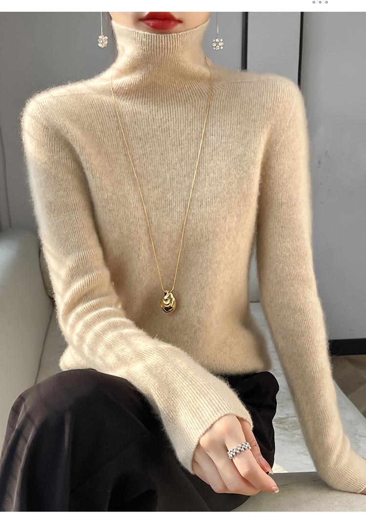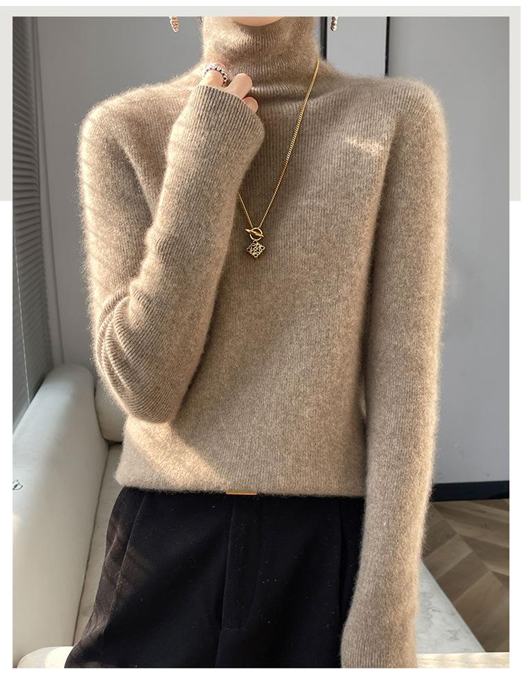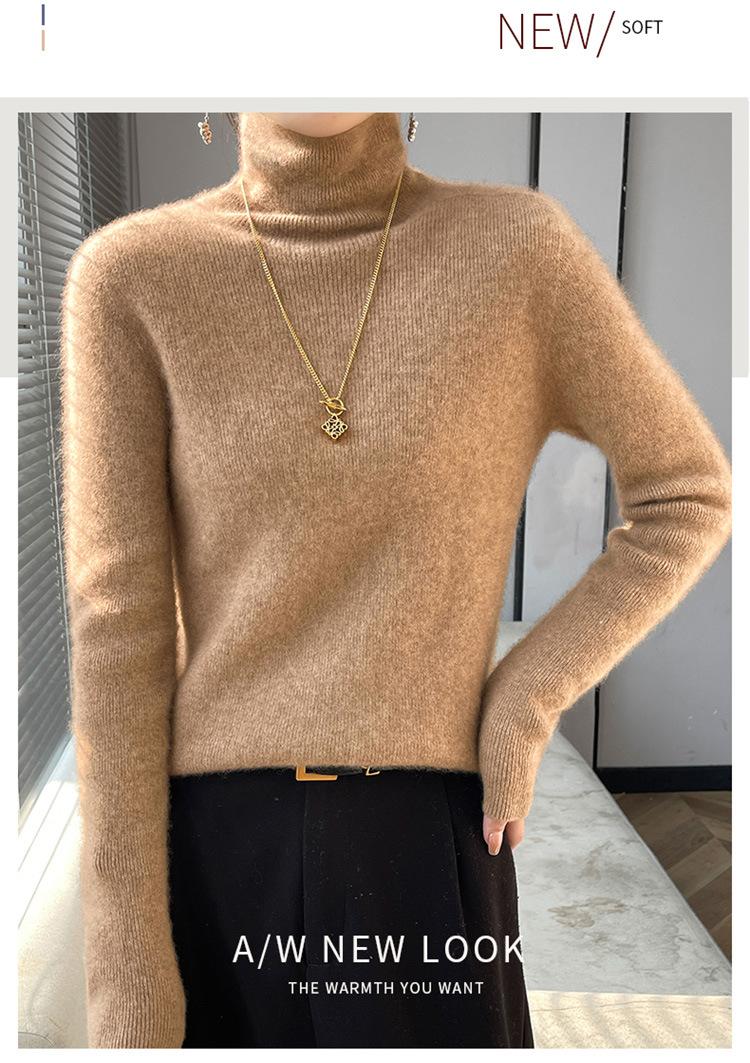 Nuevo Suéter de Punto de Cuello Alto de Invierno y Otoño para Mujer, Suéter de Punto de Manga Larga, Ajustado y Delgado, Interior de Cuello Alto, Camiseta Básica