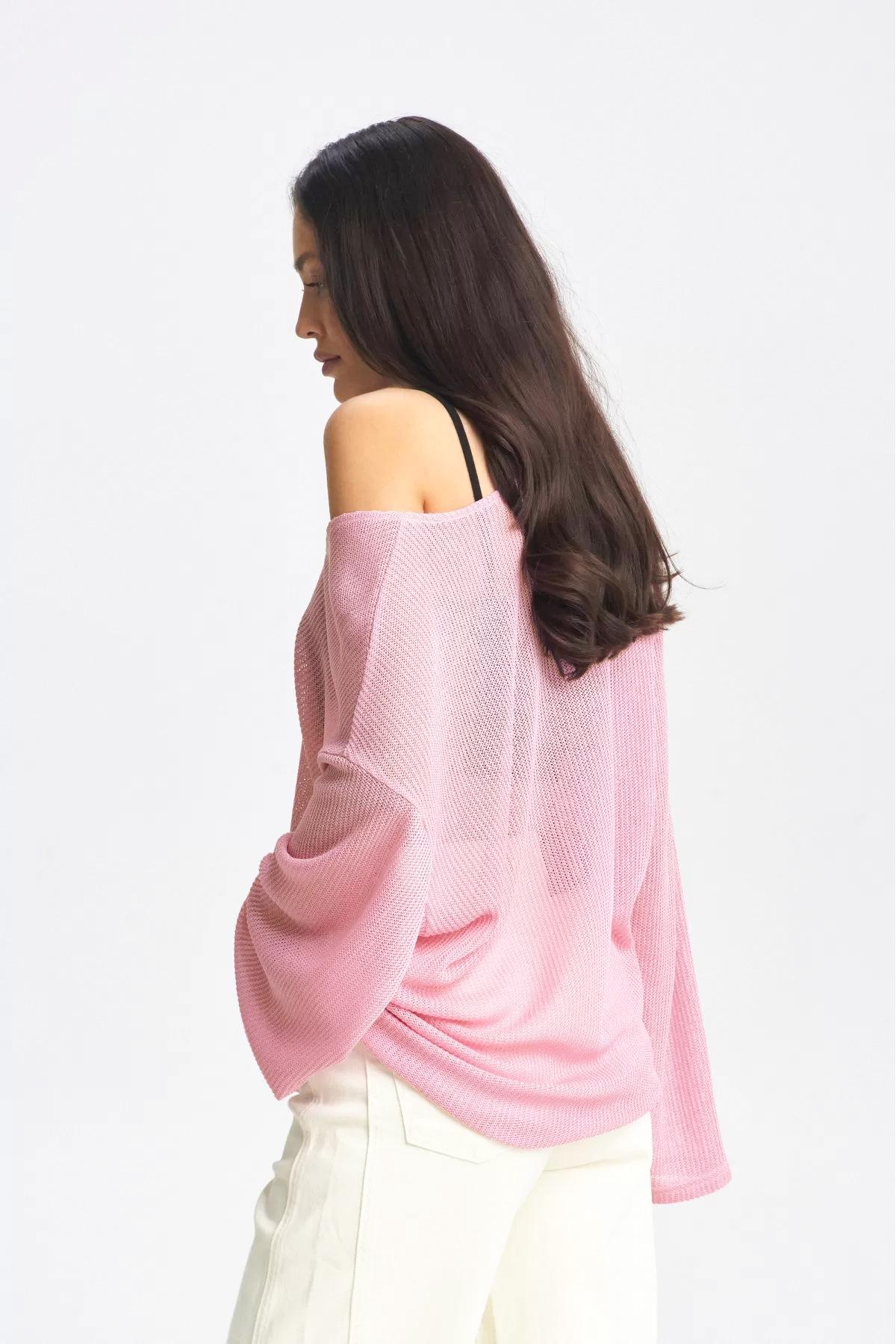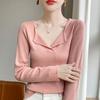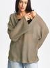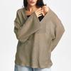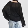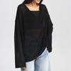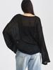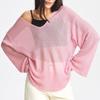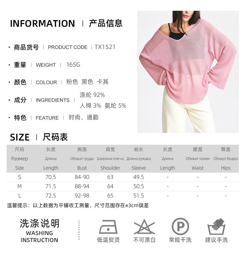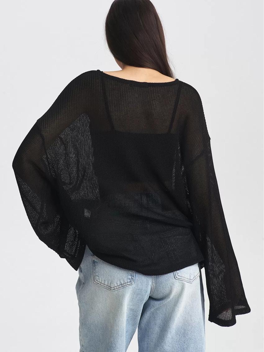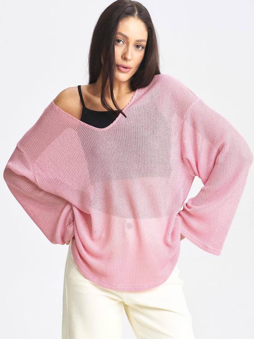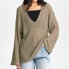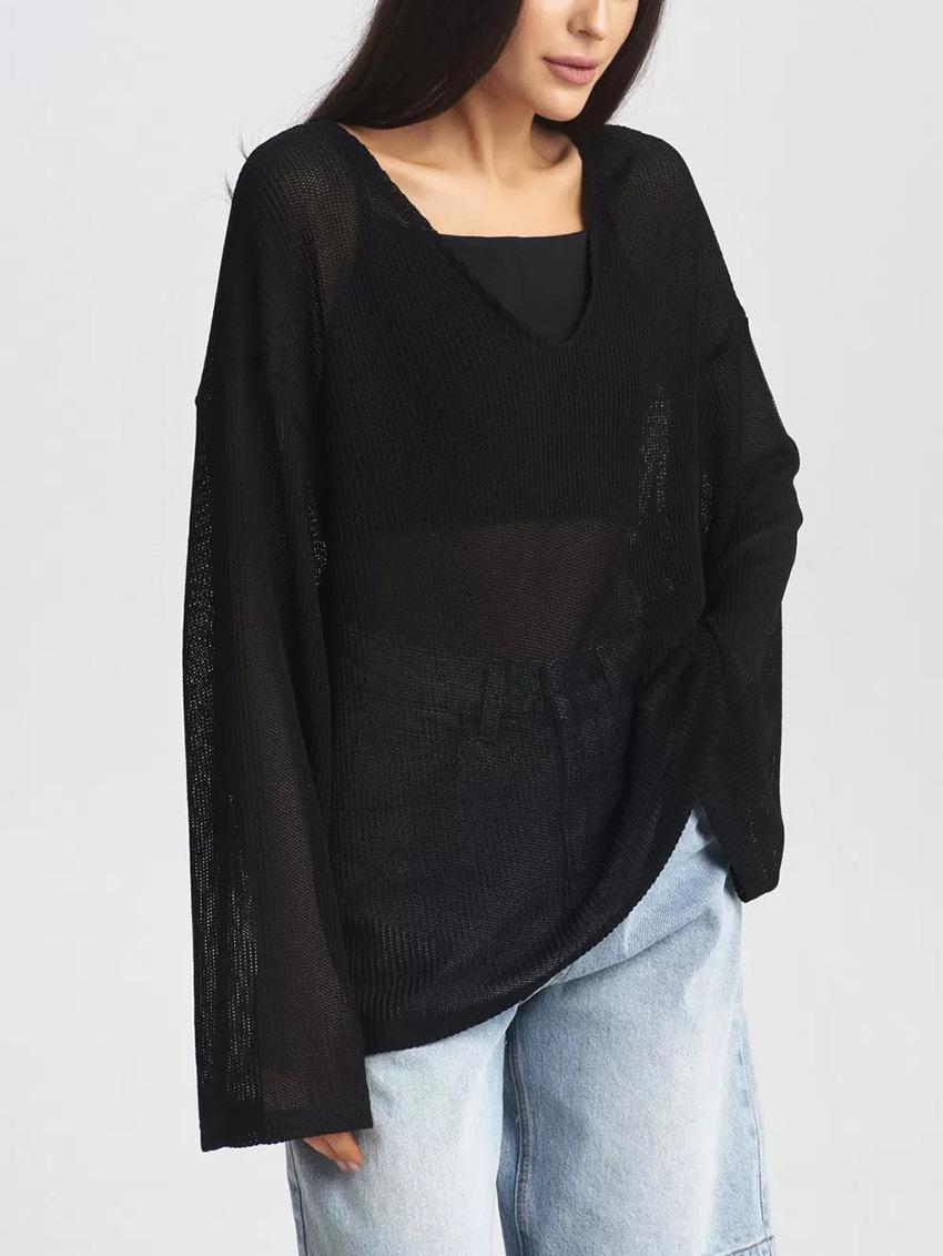 2025 Otoño e Invierno Nuevo Semi-Transparente Cuello en V Suelto Perezoso Tejido Camiseta de Manga Larga para Mujer con Diseño, Elegante y con Sentido del Diseño Transfronterizo