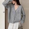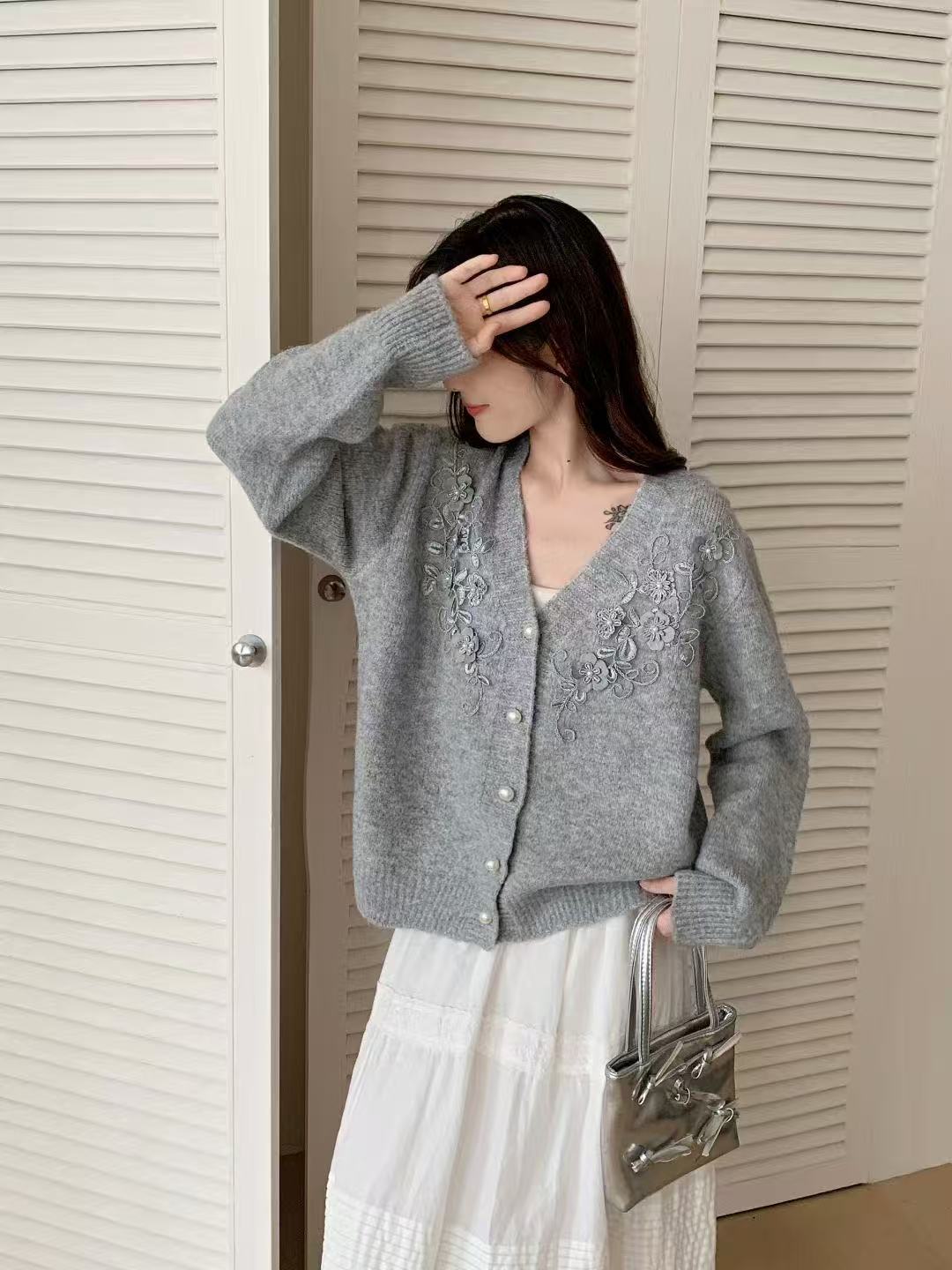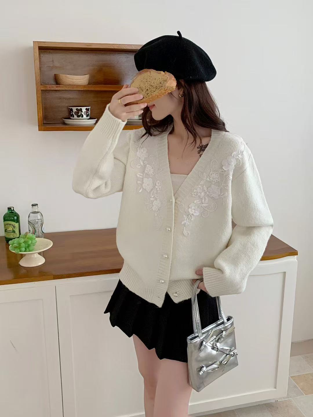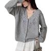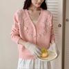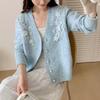 Suéter Cárdigan Retro Francés con Cuello en V para Mujer Otoño e Invierno 2025 Nuevo Temperamento Bordado con Cuentas Top de Punto