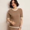 2025 Otoño/Invierno Nuevo Suéter de Cachemira de Moda con Bloque de Color Cuello Redondo Jersey Falso de Dos Piezas Corto Adelgazante Tejido de Punto Base