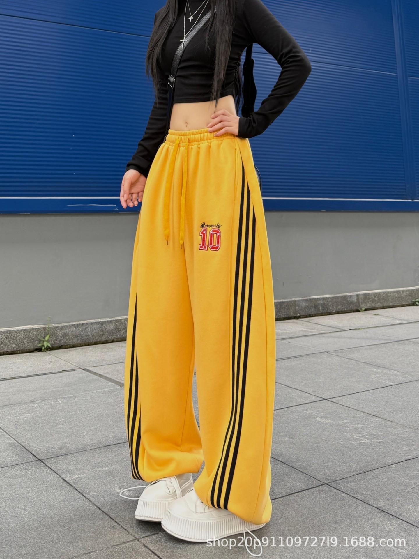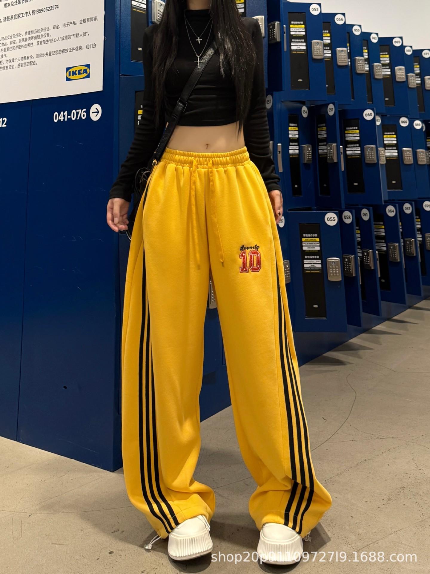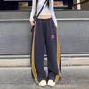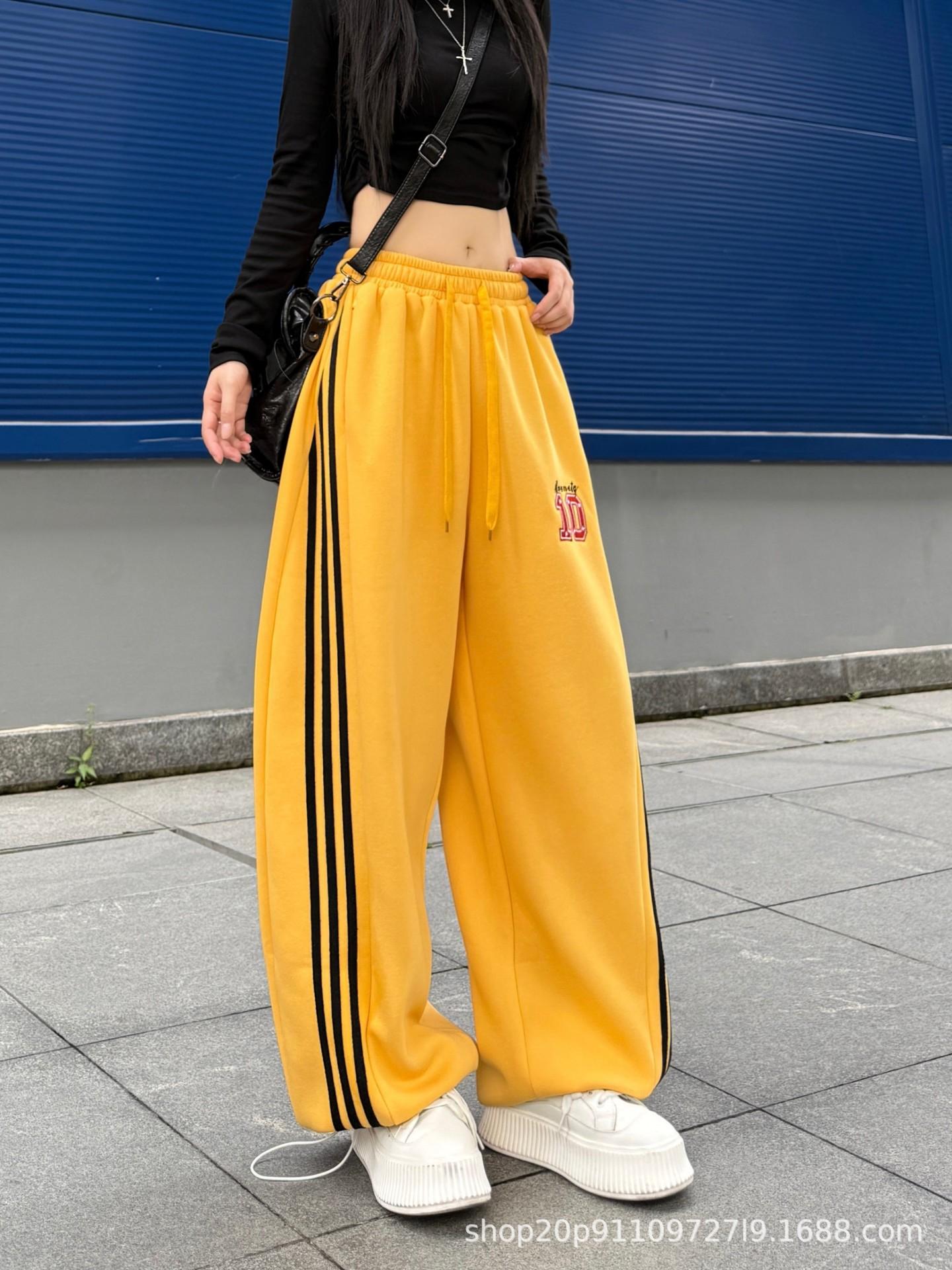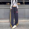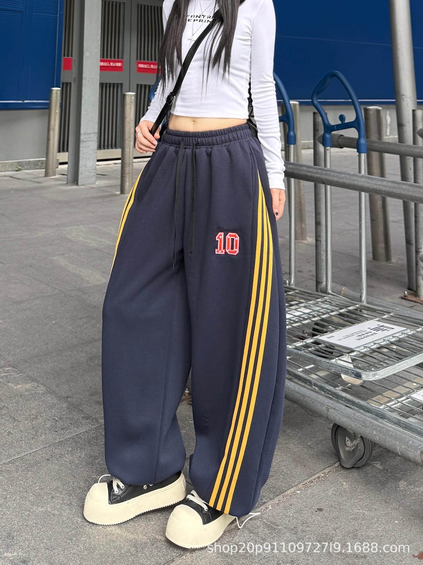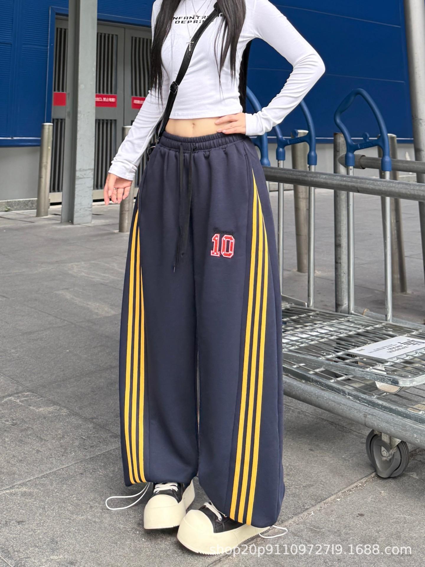 Amazon nuevos pantalones deportivos casuales holgados con cordón americano de tres rayas para mujer otoño pantalones de pierna ancha recta comercio exterior transfronterizo