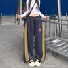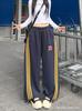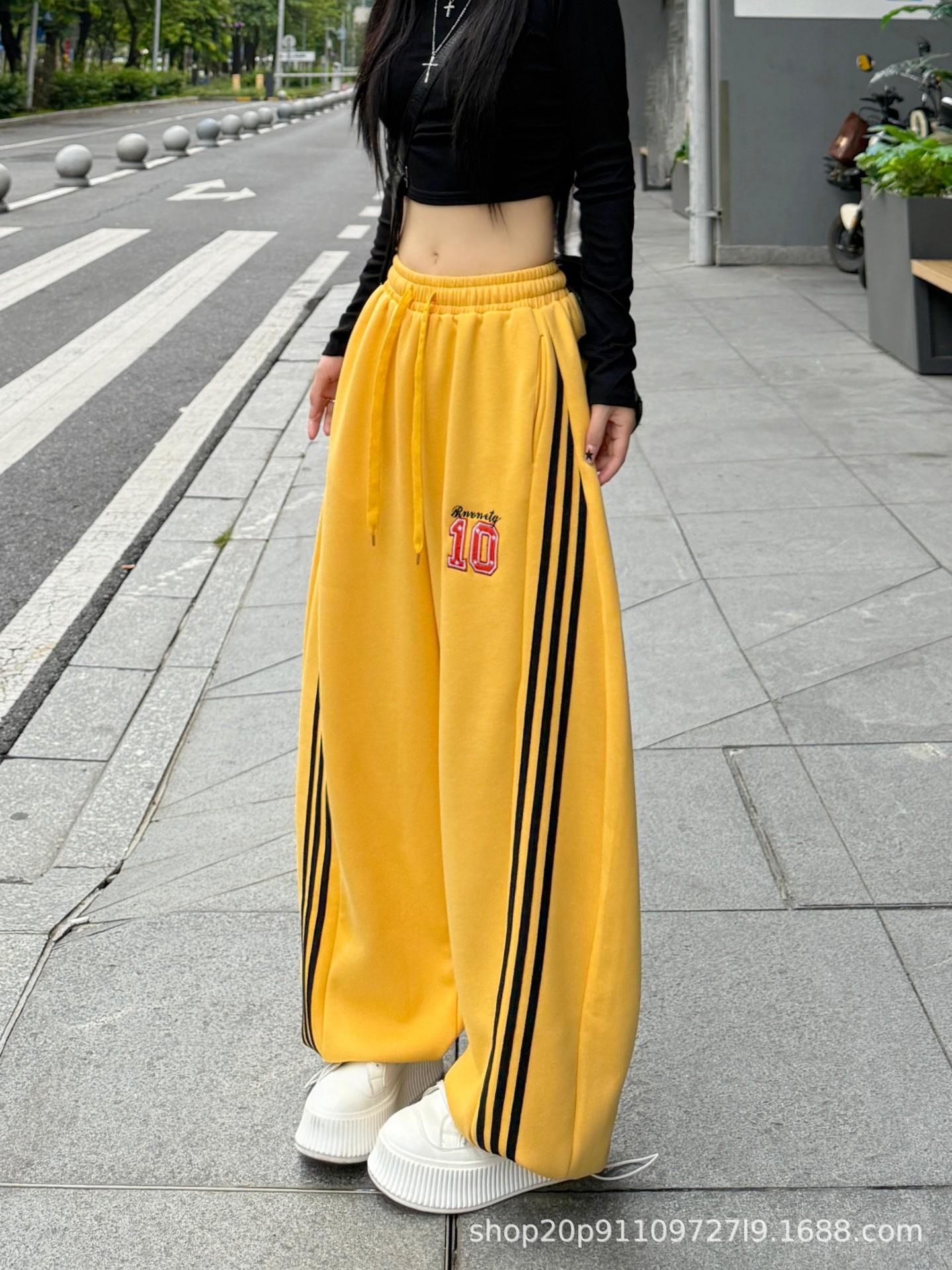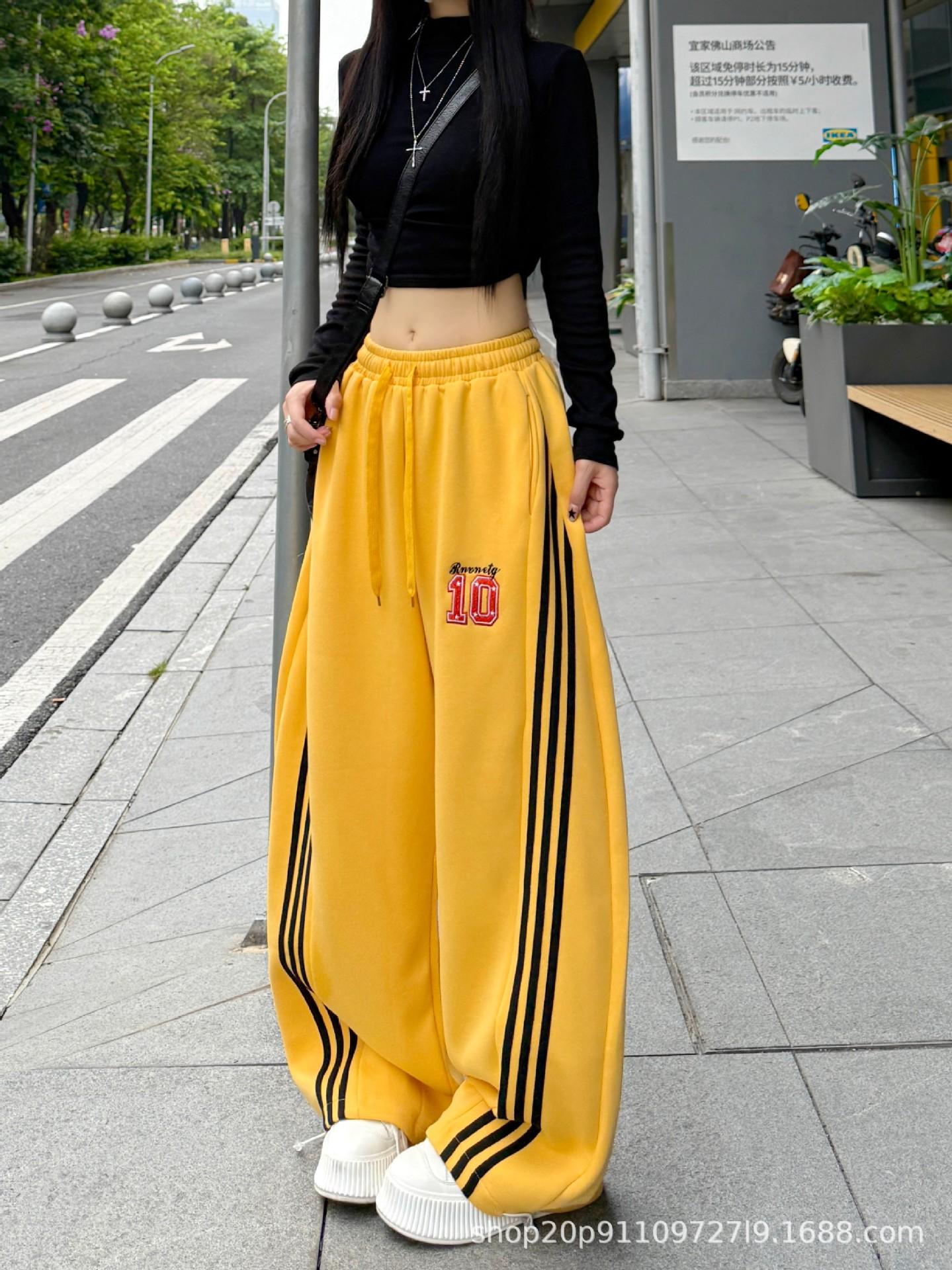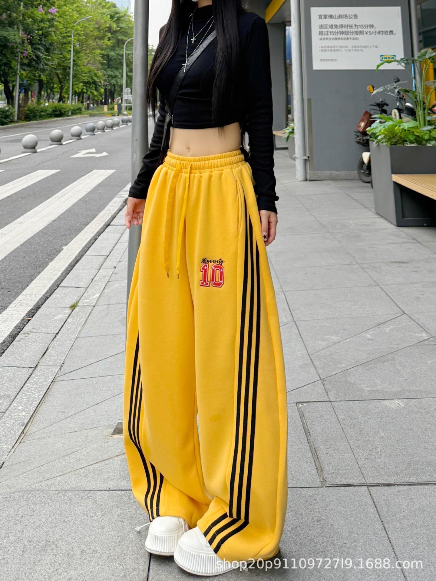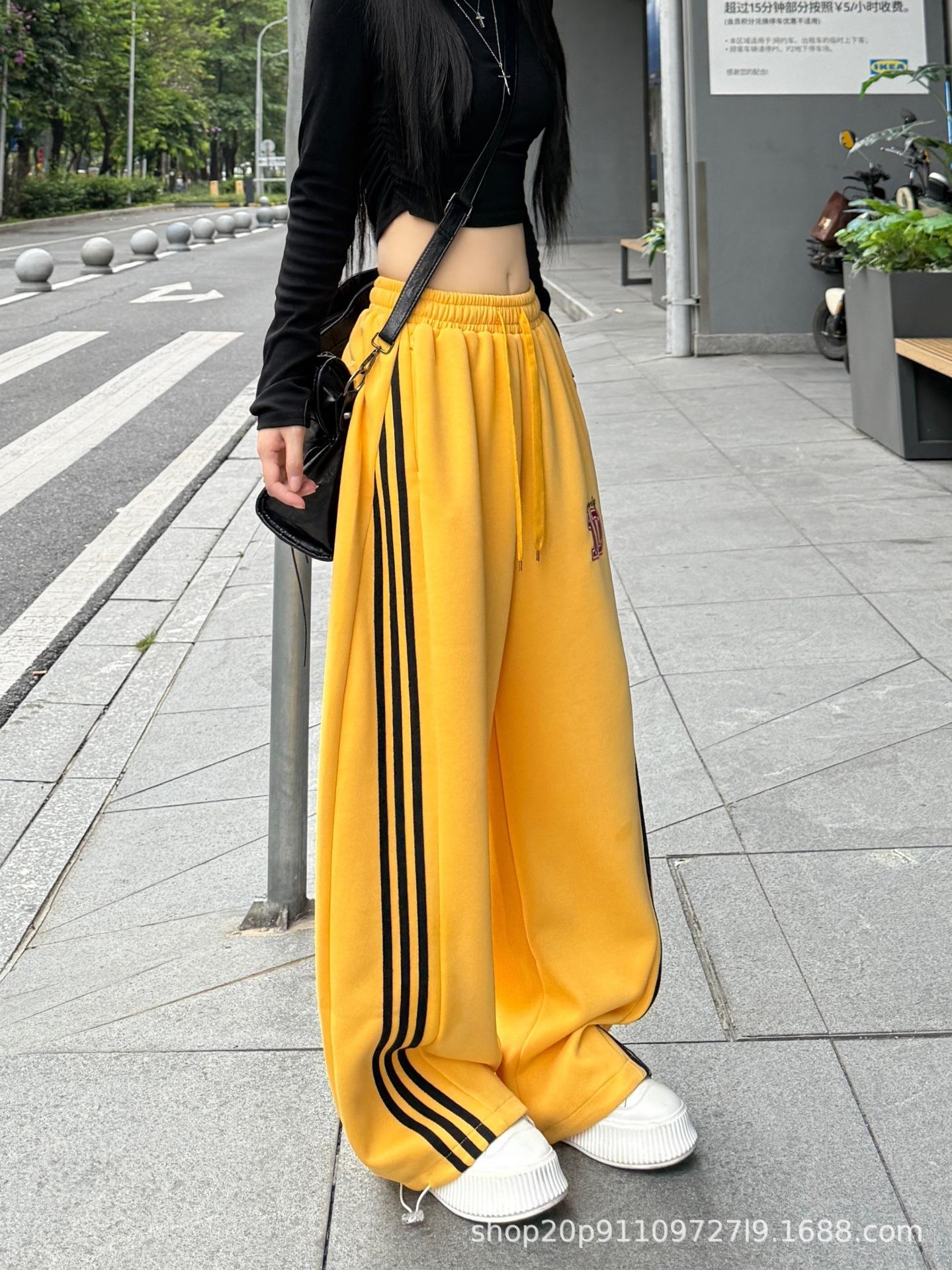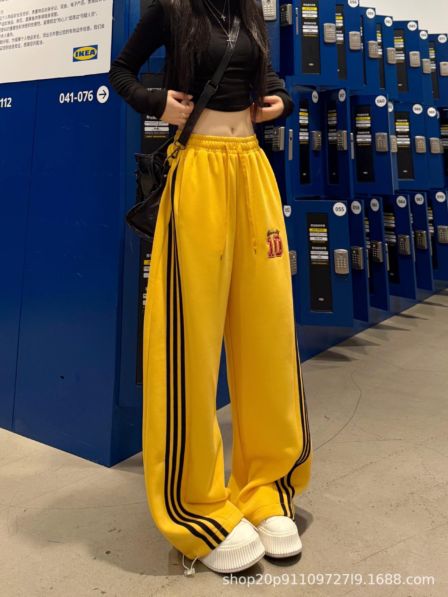 Amazon nuevos pantalones deportivos casuales holgados con cordón americano de tres rayas para mujer otoño pantalones de pierna ancha recta comercio exterior transfronterizo