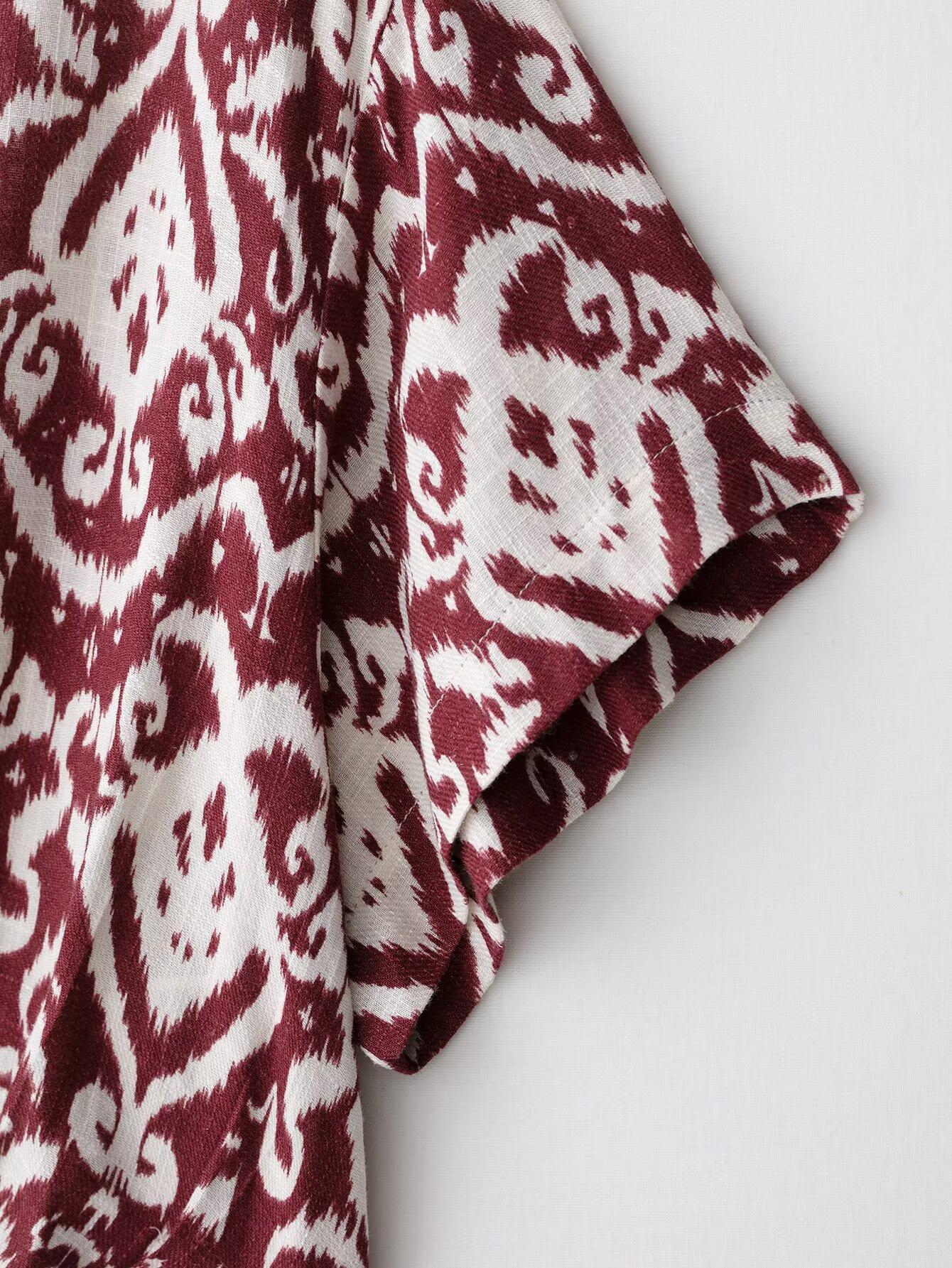 Nuevo Producto Transfronterizo 2025 Estilo Europeo y Americano Ropa de Mujer Exportación Venta al por Mayor Zr Estampado de Lazo Camisa Corta