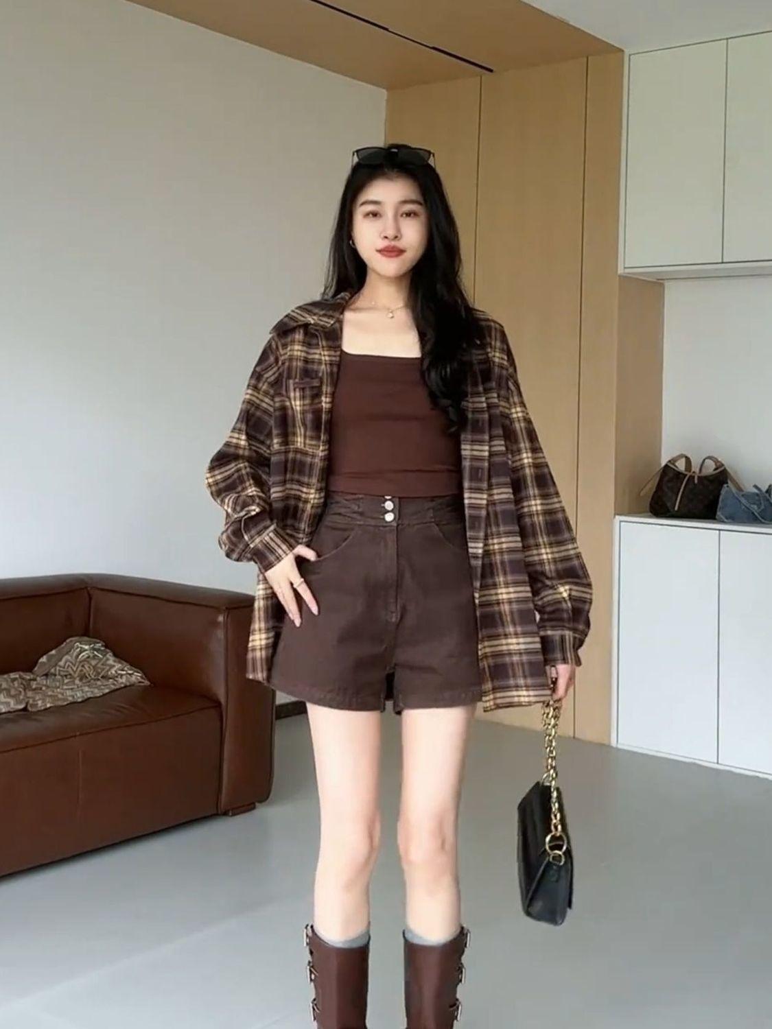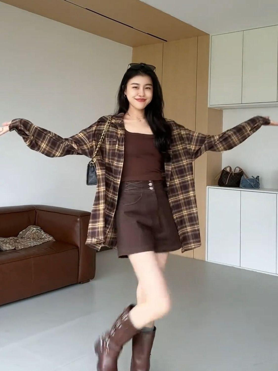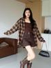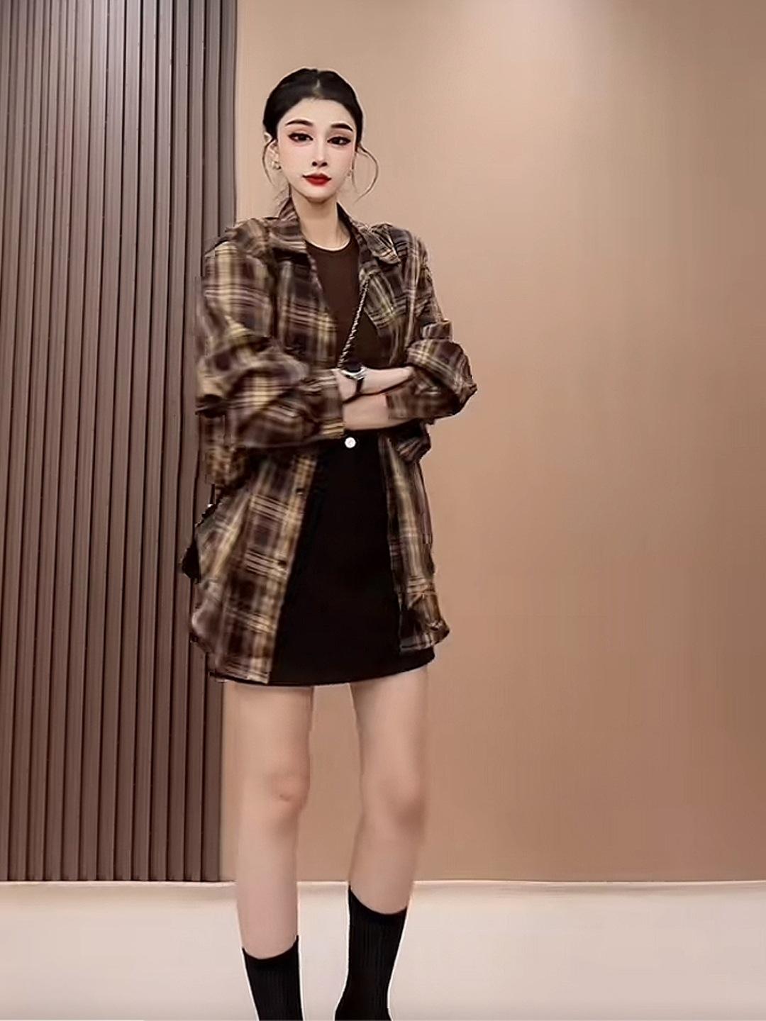 Camisa a cuadros de moda estilo coreano para mujer 2025 Otoño Nuevo Top de manga larga casual versátil holgado de alta gama