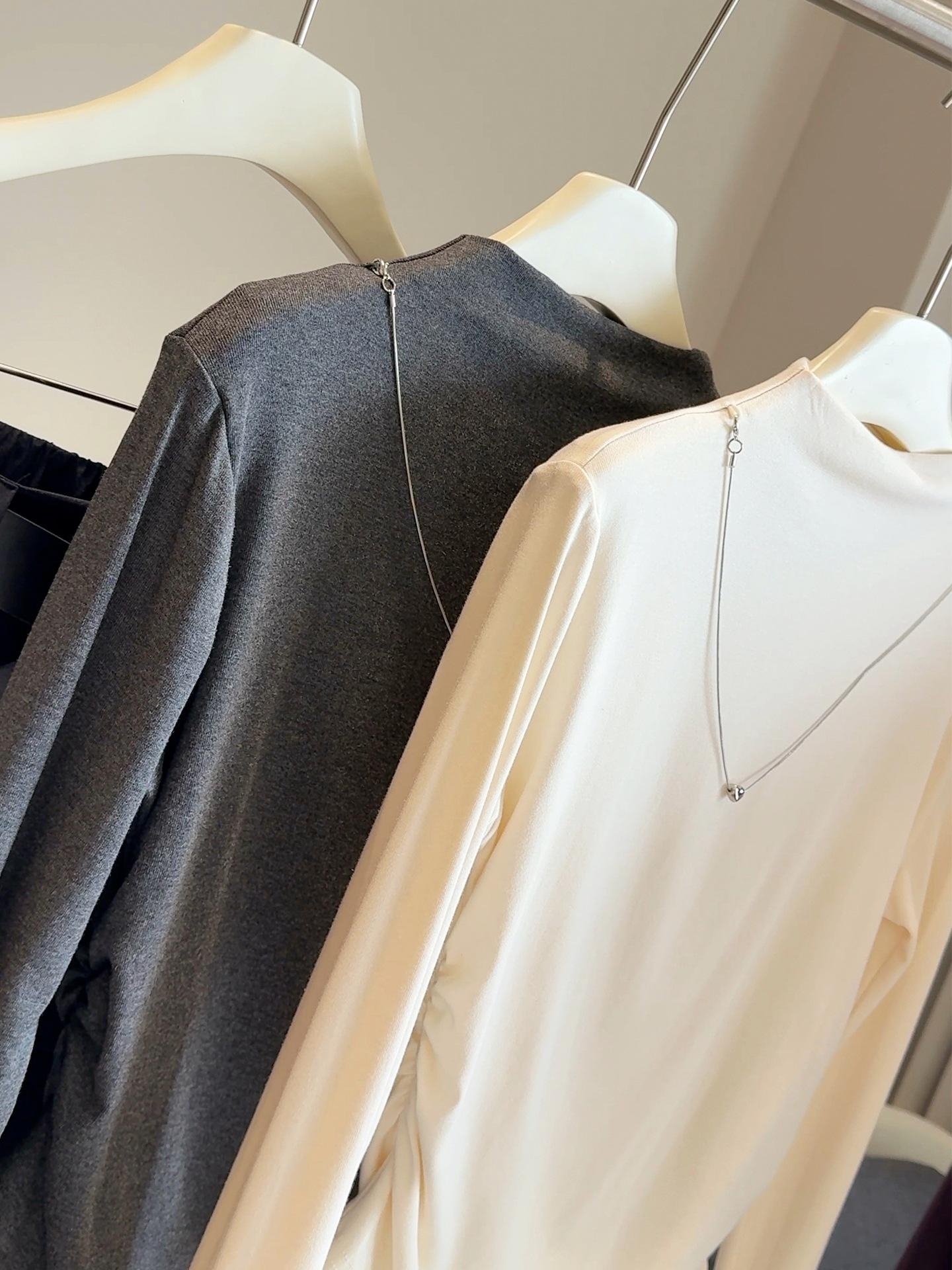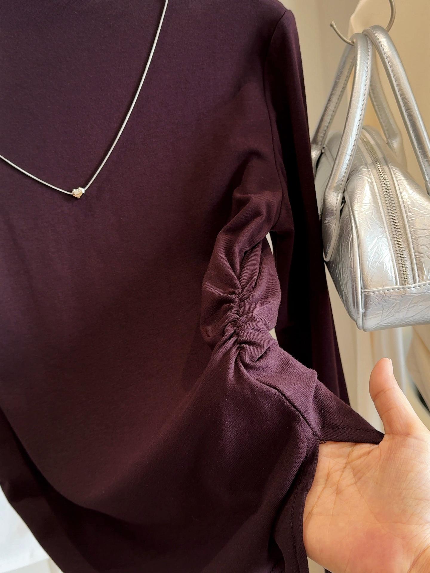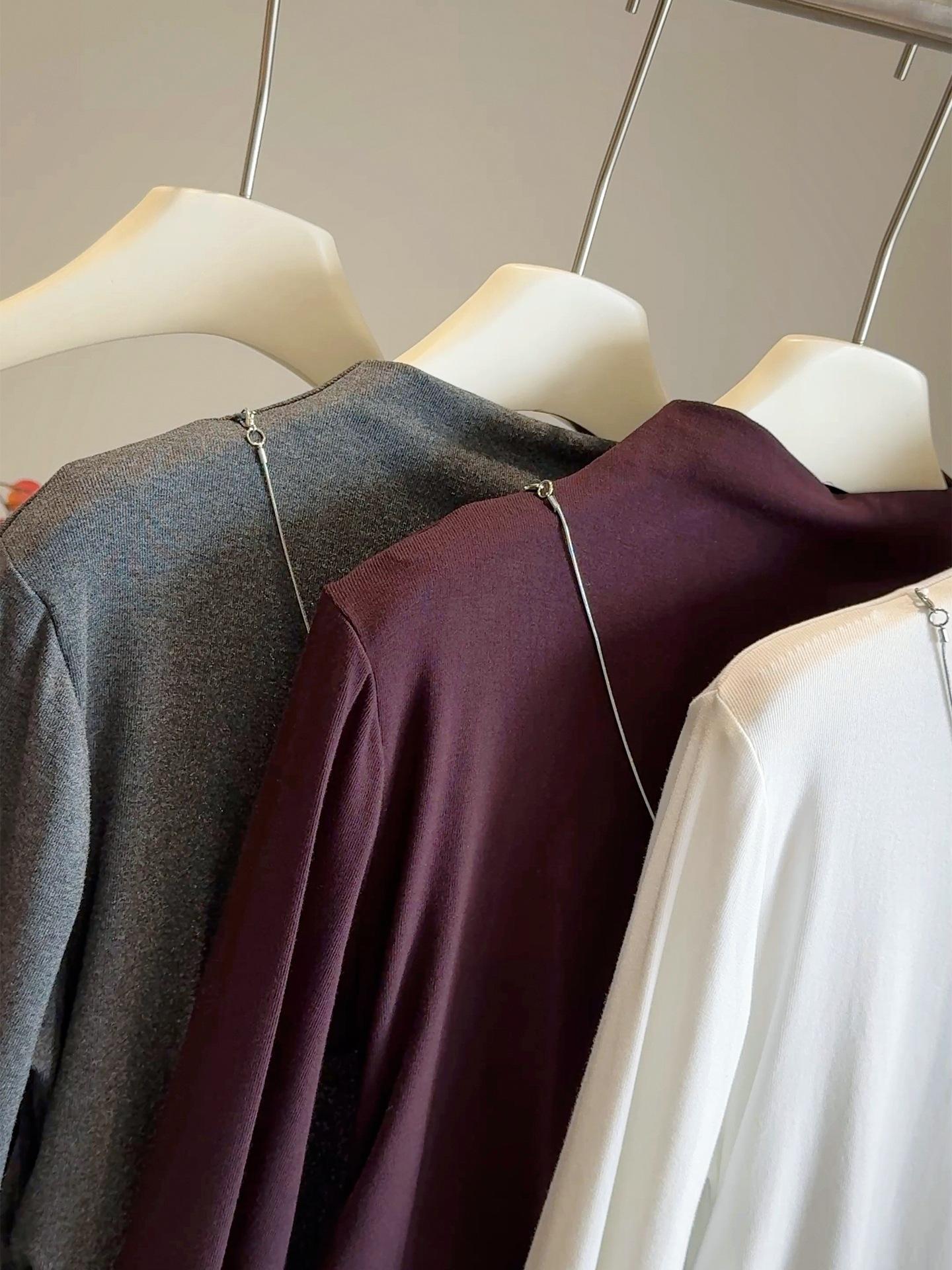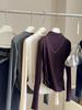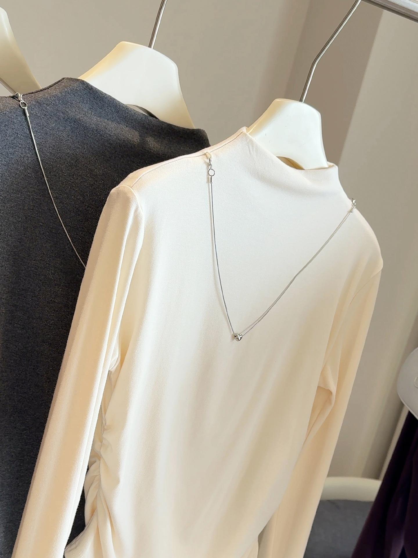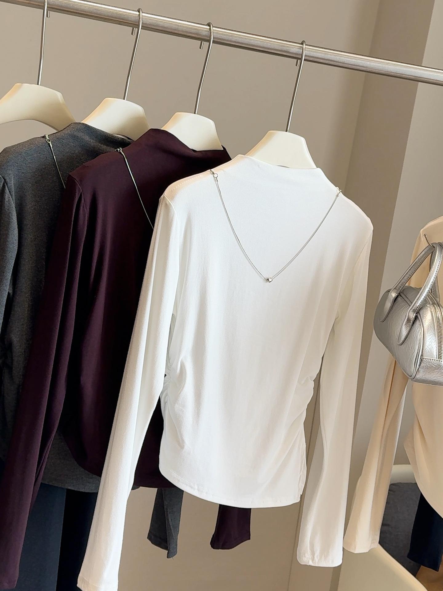 Sentido del diseño cuello semi alto bajo asimétrico camiseta base mujer principios de otoño 2025 nueva corte ajustado manga larga en capas camiseta interior top