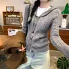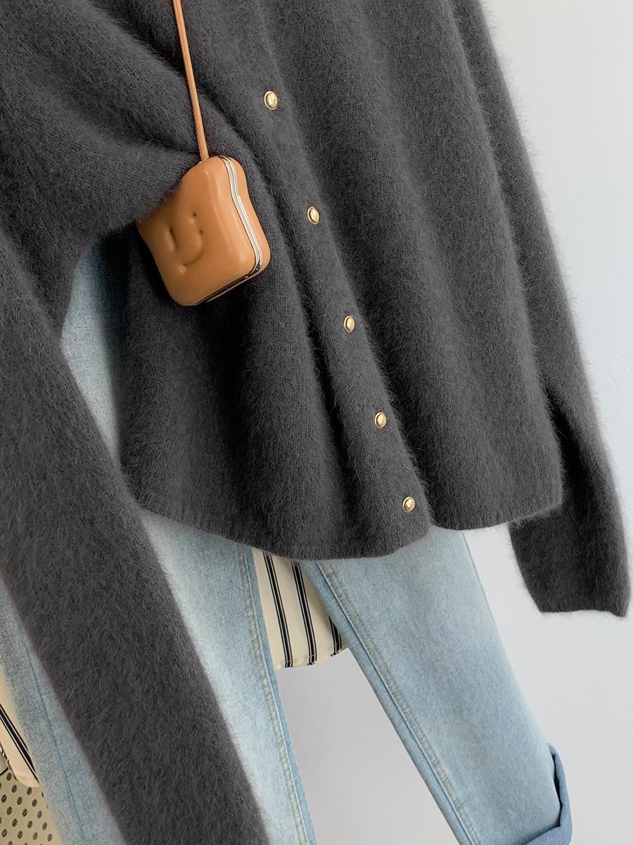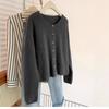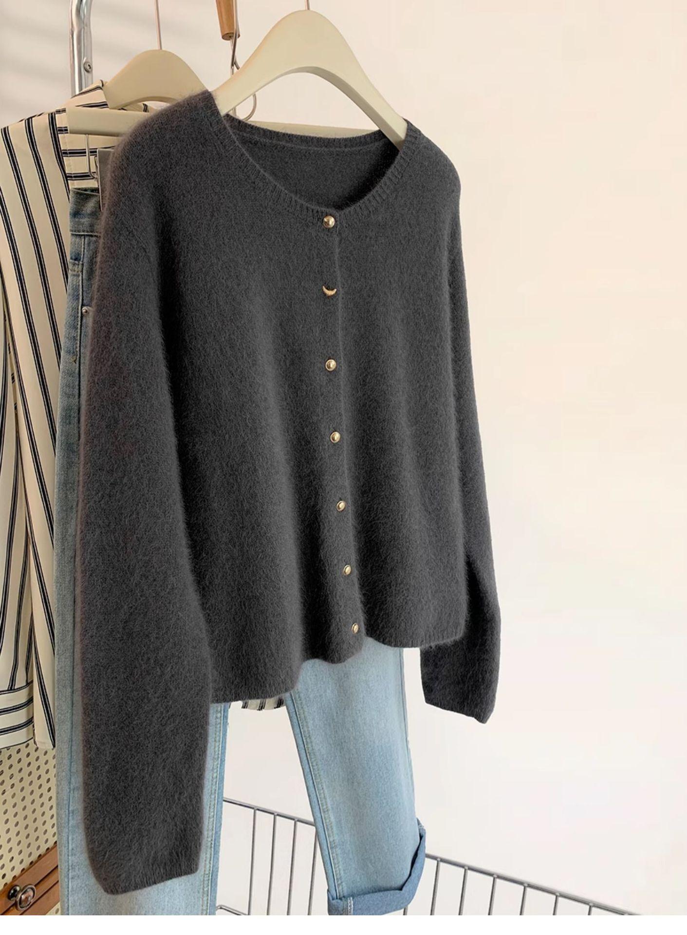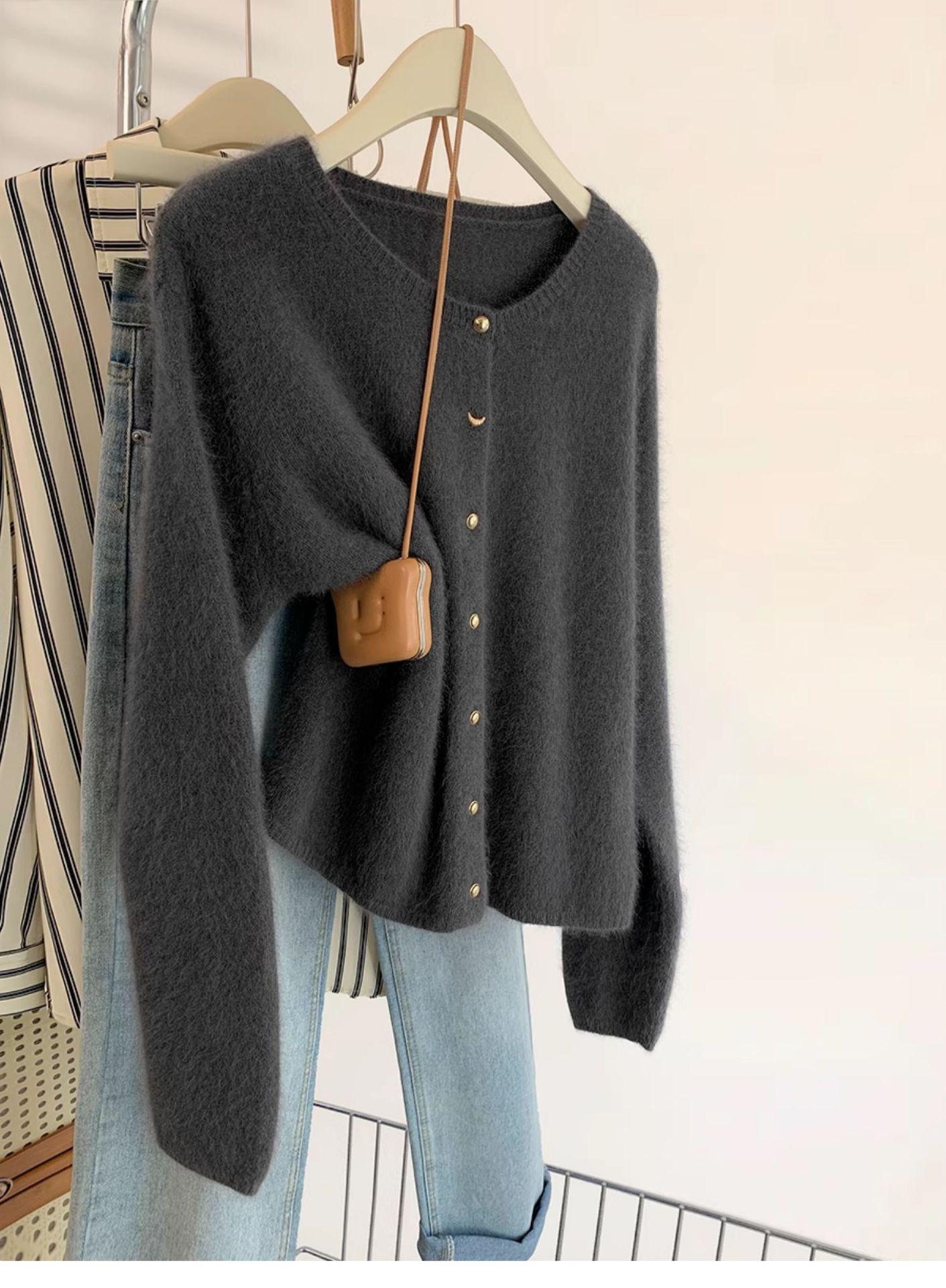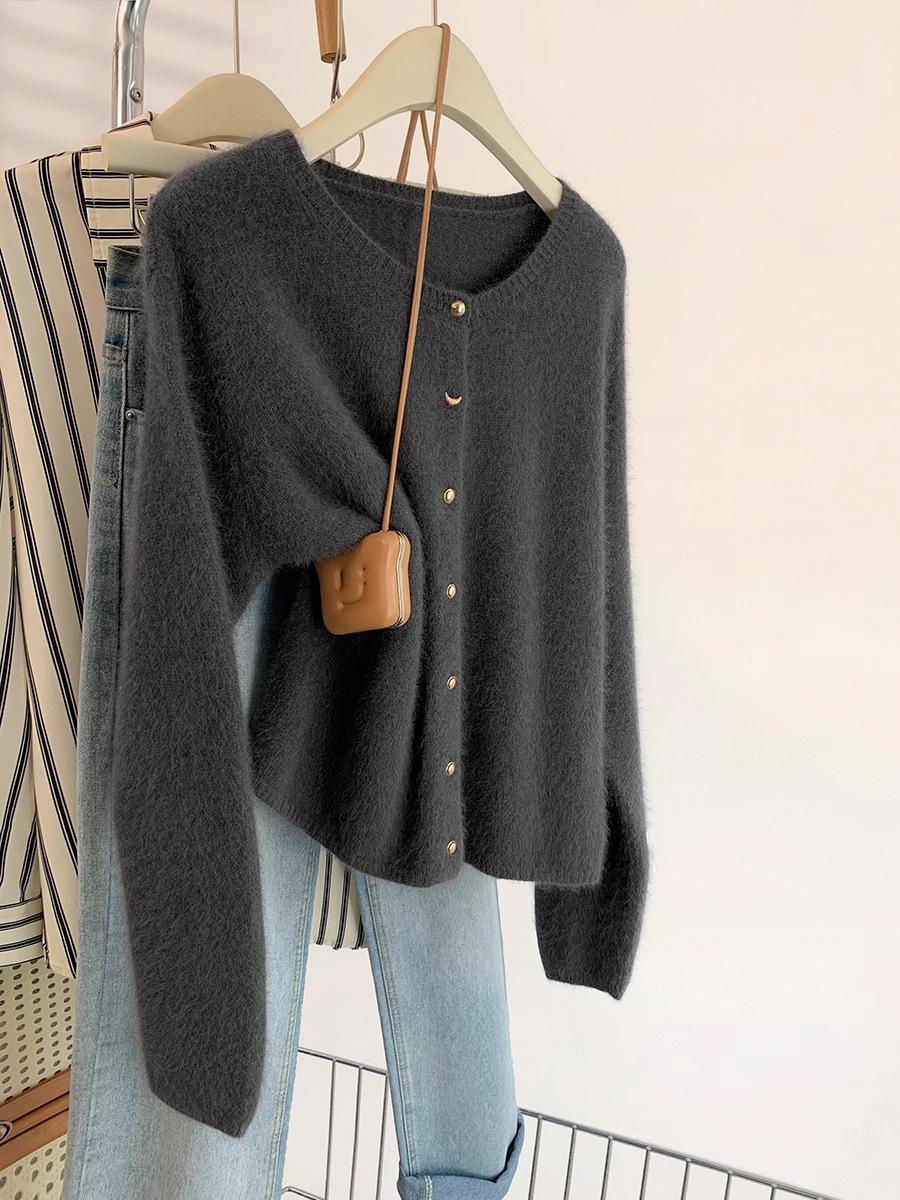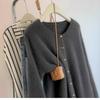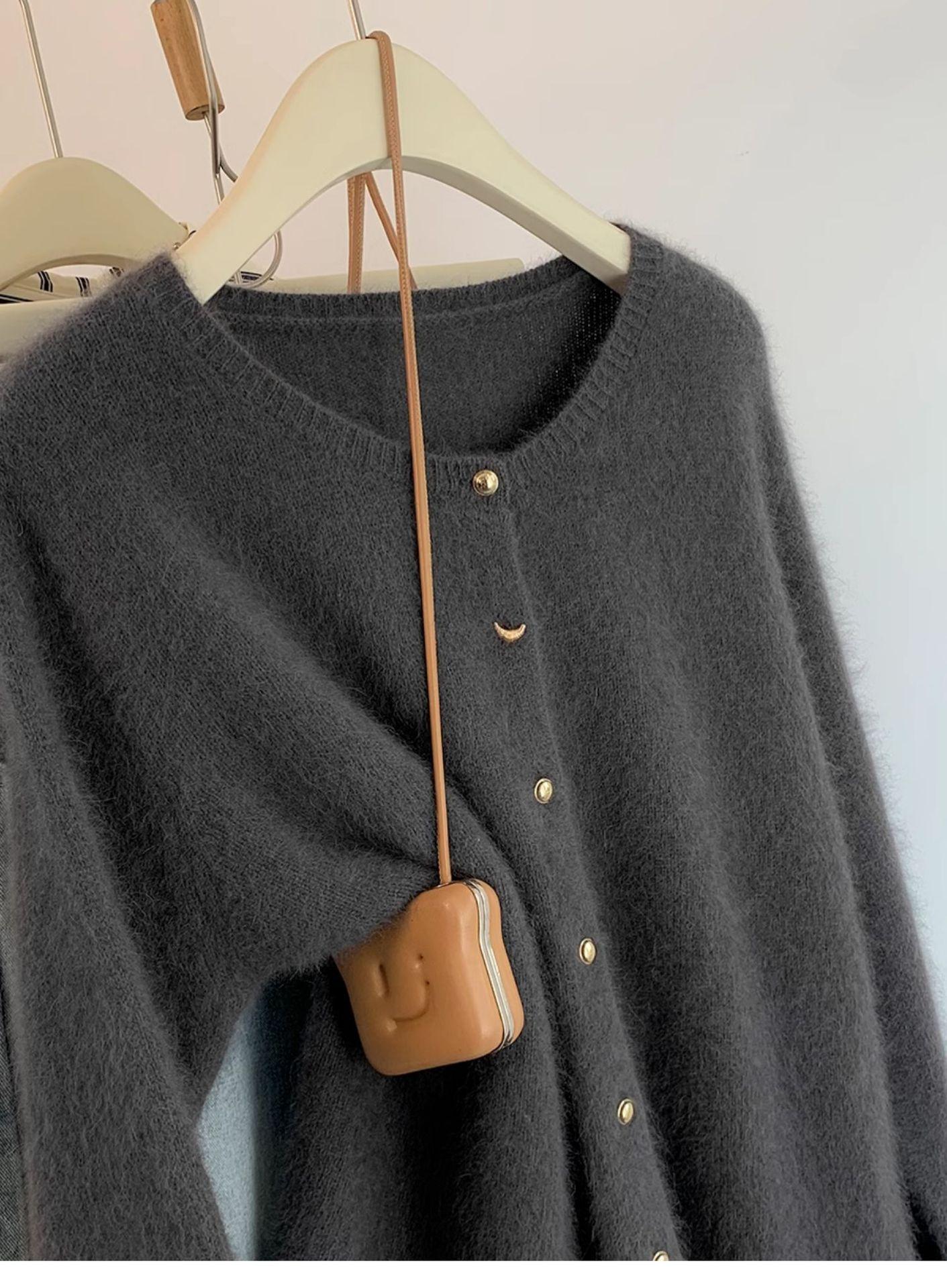 Abrigo suéter gris oscuro suave y glutinoso para mujer otoño e invierno 2025 nuevo talla pequeña prenda exterior cárdigan de punto holgado de alta calidad