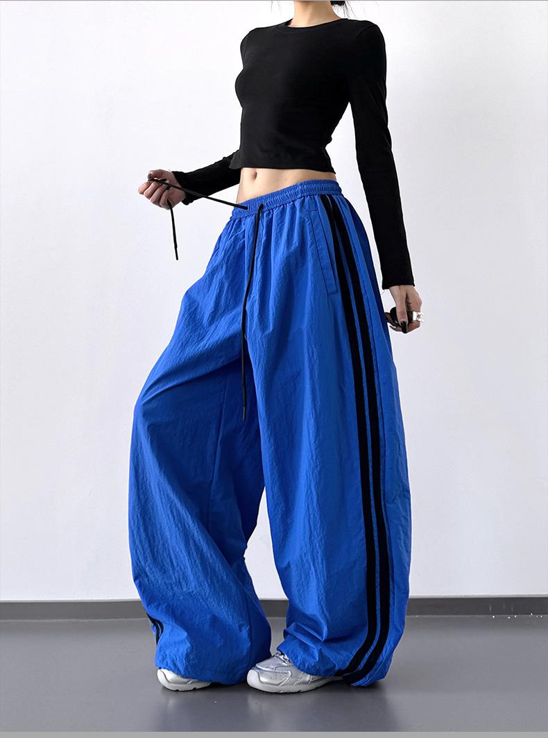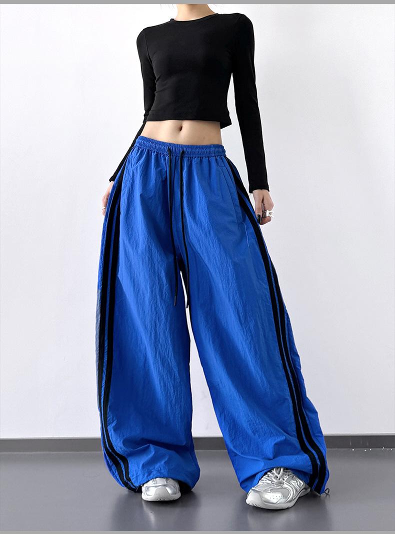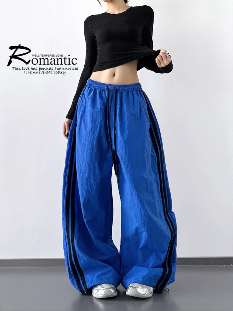 Pantalón de chándal retro americano a rayas para mujer verano 2025 nuevo suelto casual para mujer delgado de secado rápido tipo cargo