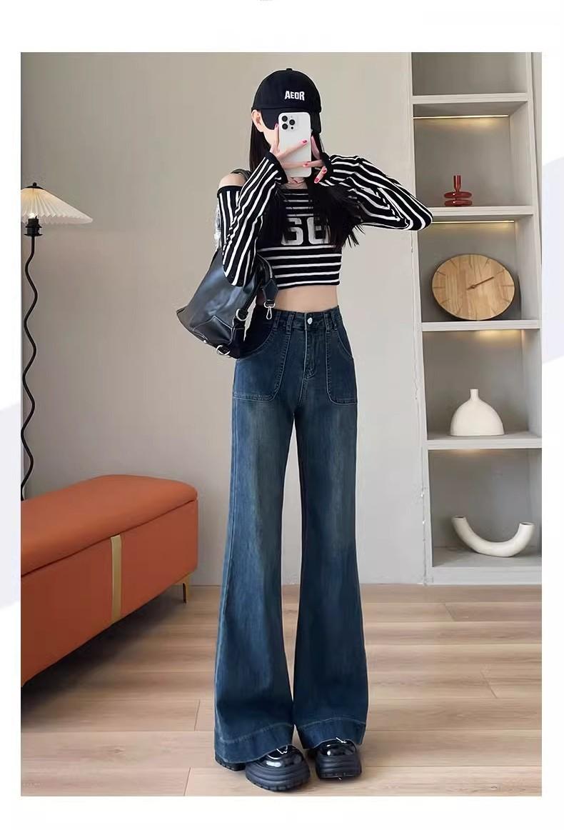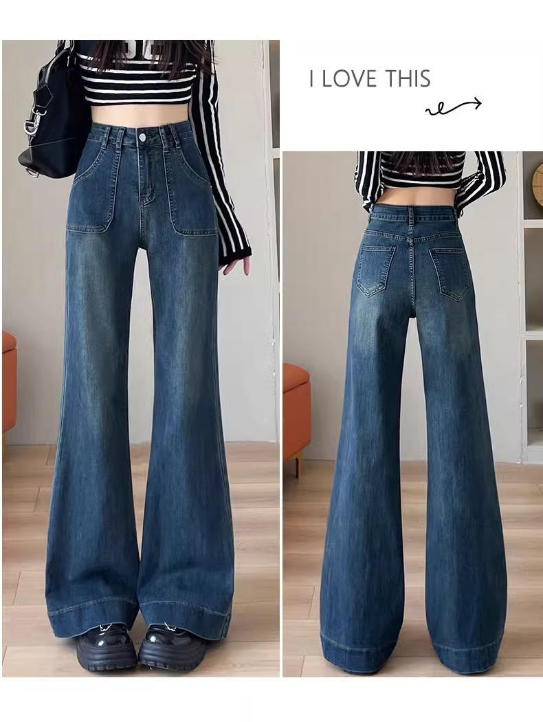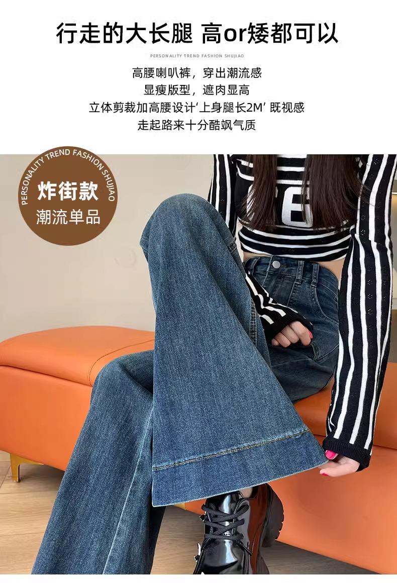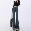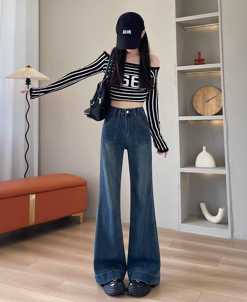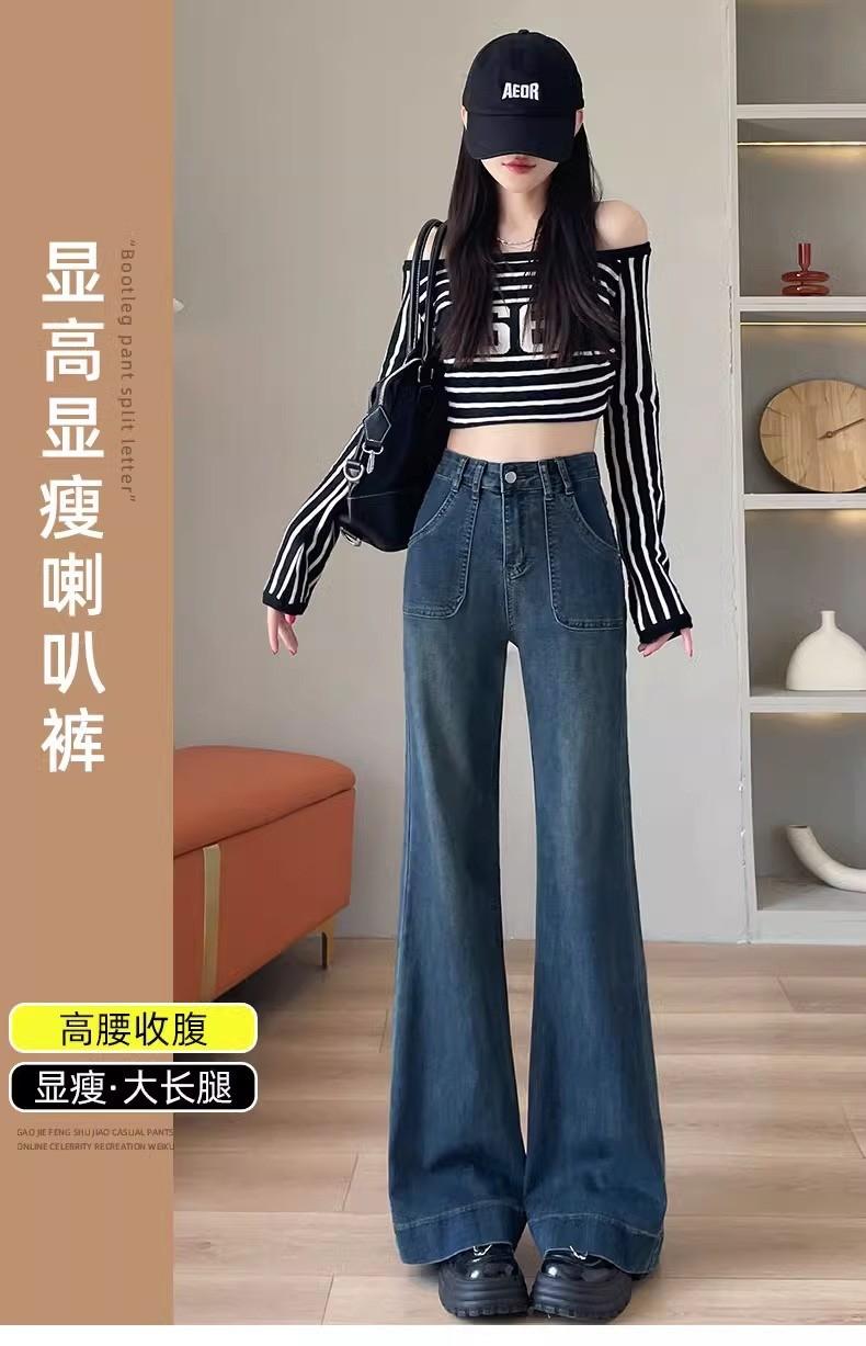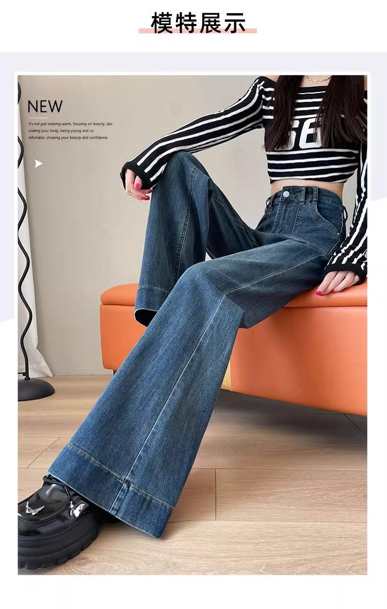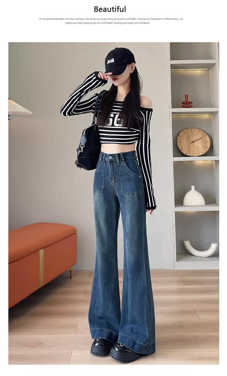 Vintage Azul Micro La Jeans Moda para Mujer Combinable Nuevo Cintura Alta Adelgazante Diseño Ajustado Sentido del Diseño Pantalones Largos Acampanados