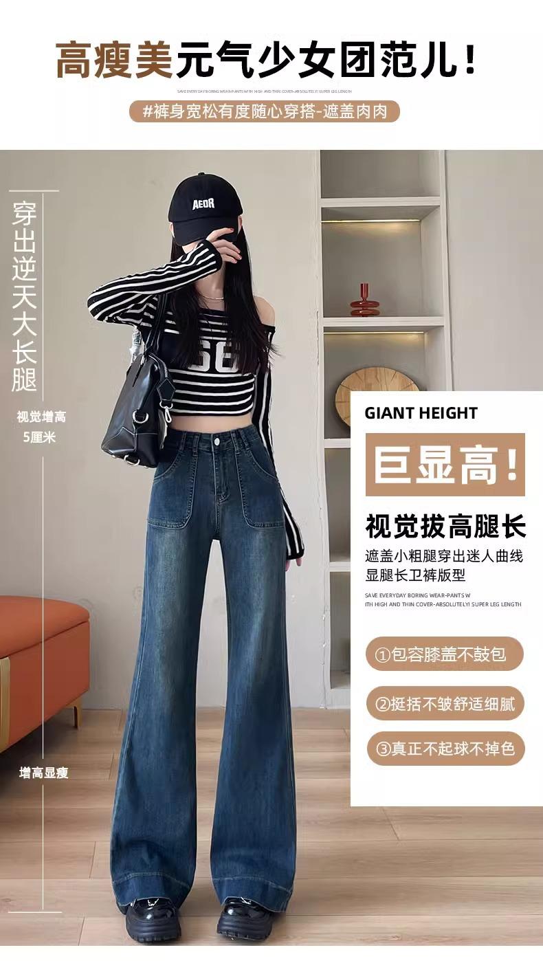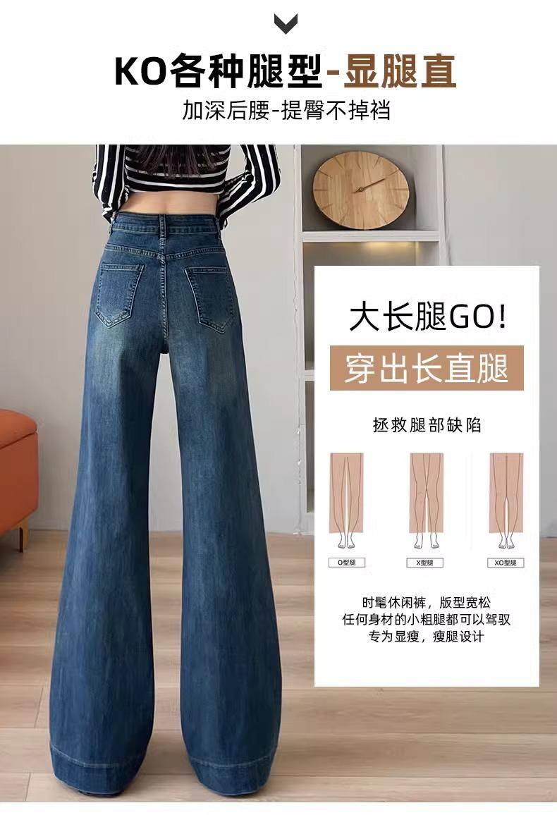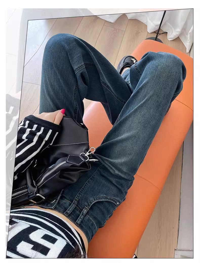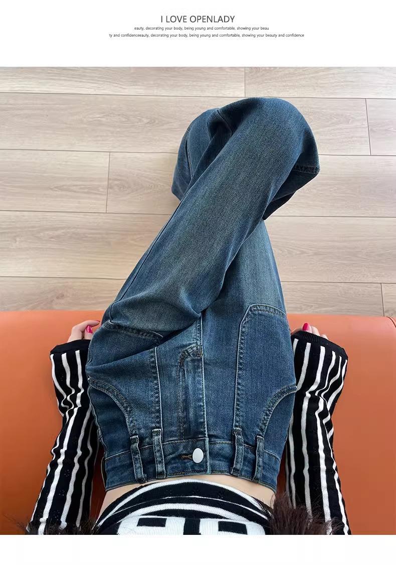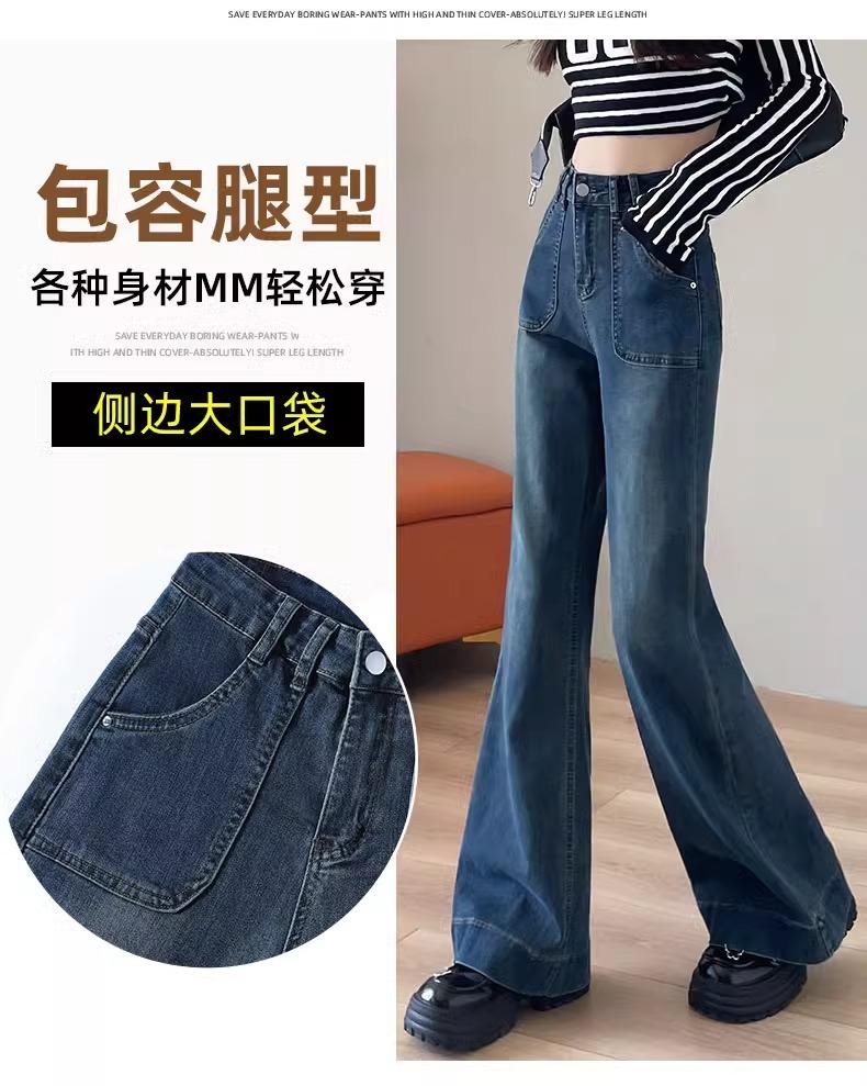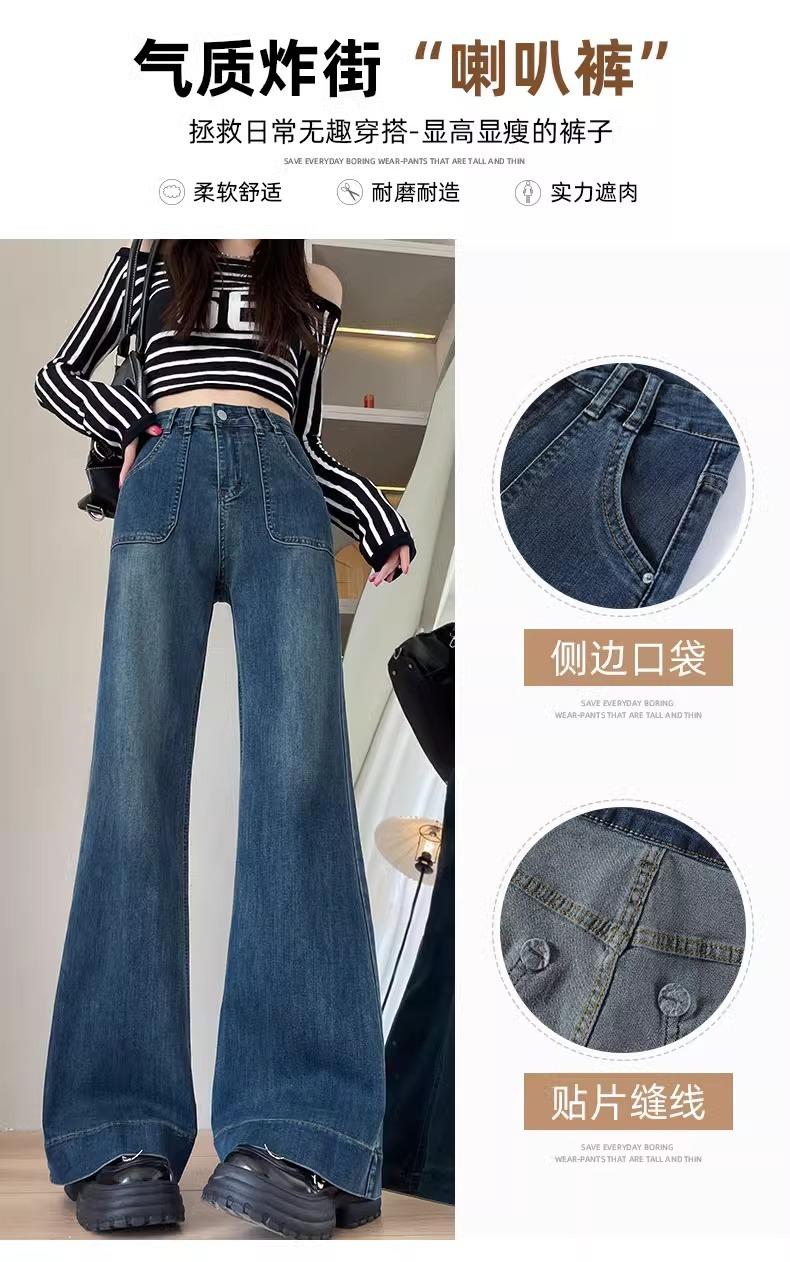 Vintage Azul Micro La Jeans Moda para Mujer Combinable Nuevo Cintura Alta Adelgazante Diseño Ajustado Sentido del Diseño Pantalones Largos Acampanados