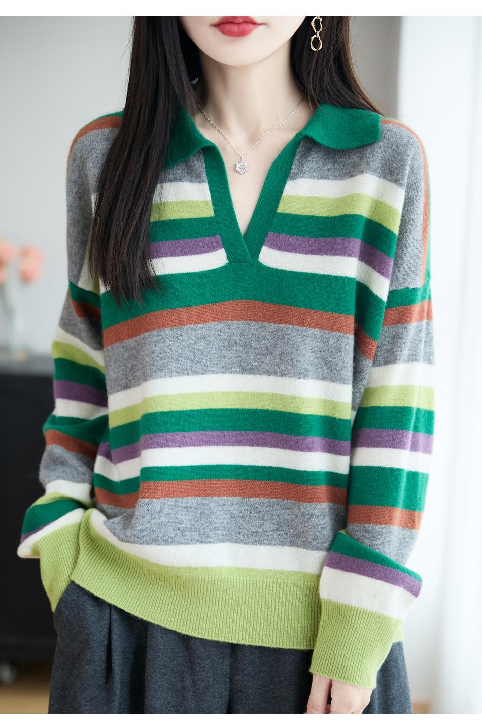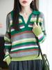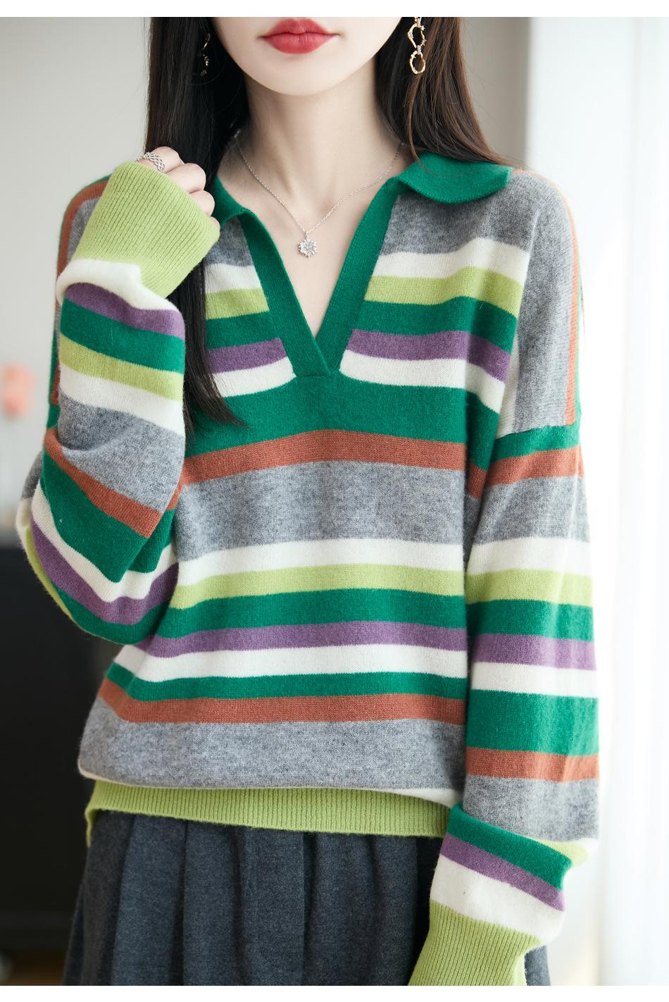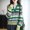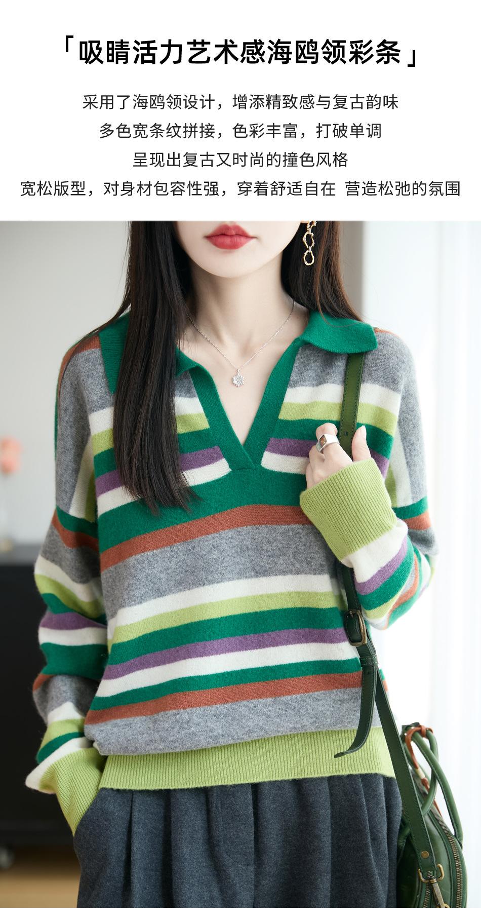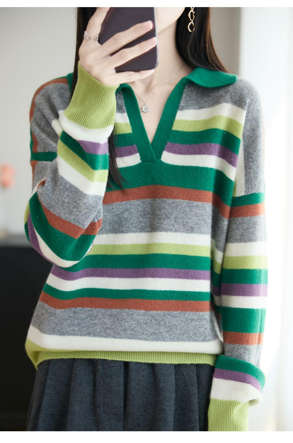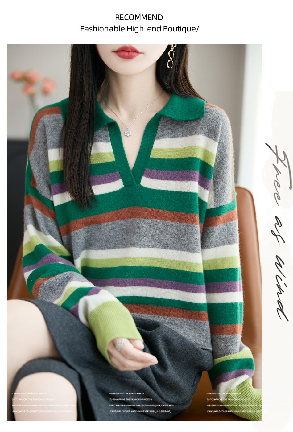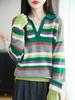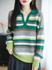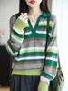 Suéter Rayado de Lana 100% con Cuello de Tijera Cárdigan de Punto Versátil con Bloque de Color Retro para Mujer Diseño Nicho