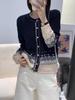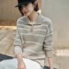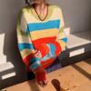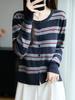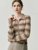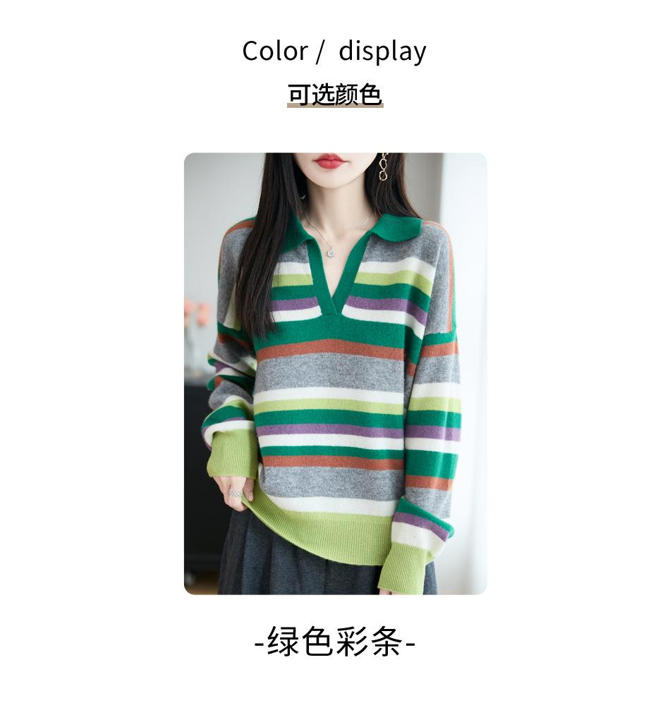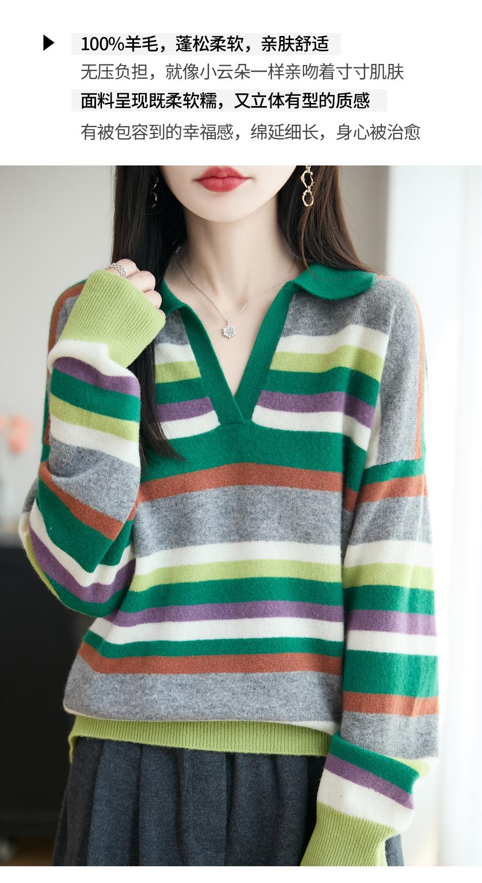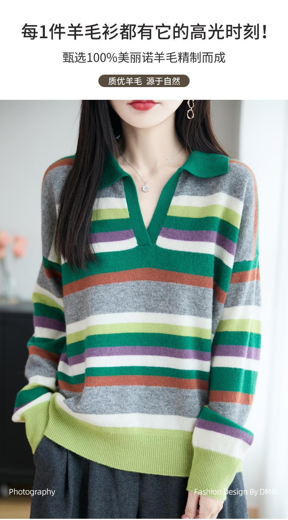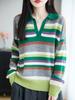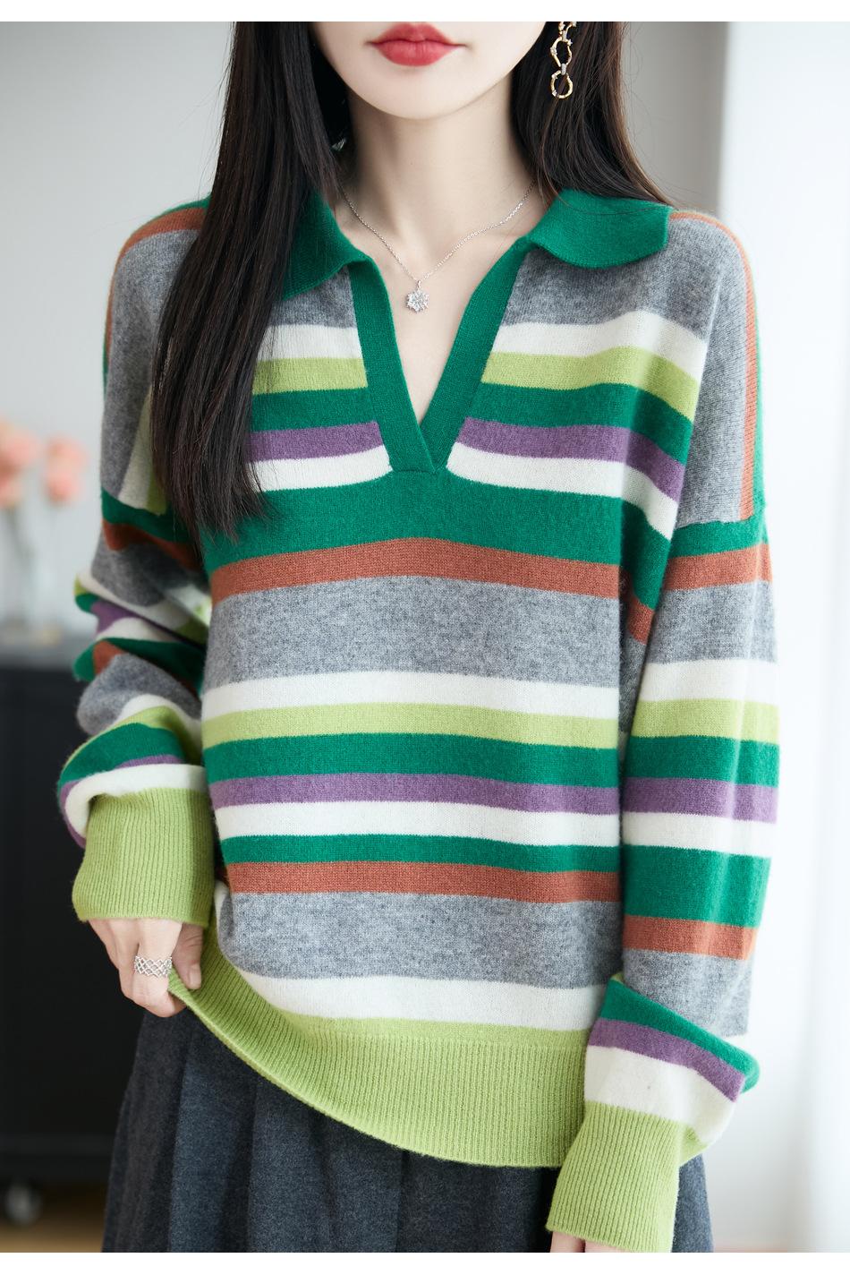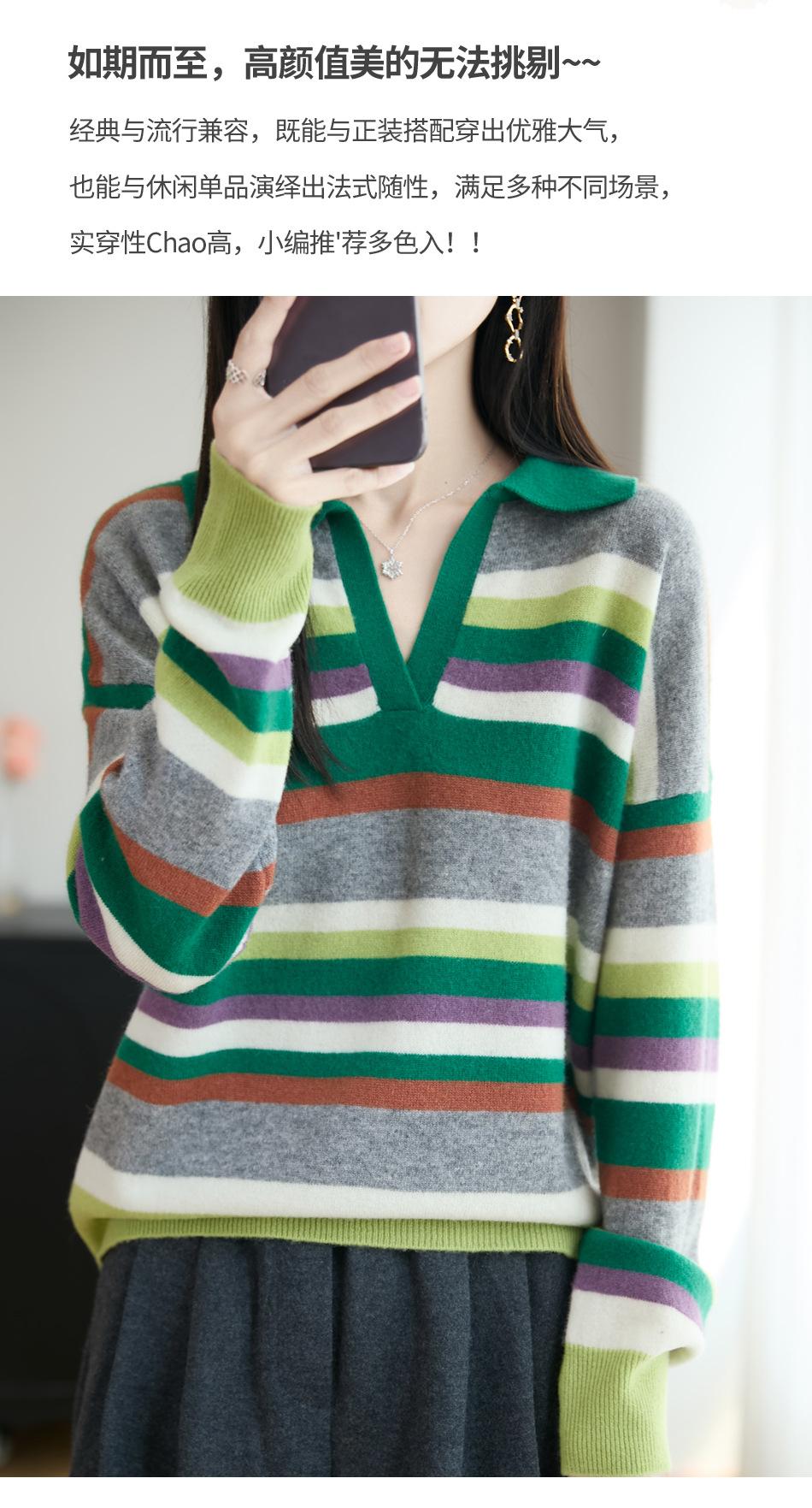 Suéter Rayado de Lana 100% con Cuello de Tijera Cárdigan de Punto Versátil con Bloque de Color Retro para Mujer Diseño Nicho