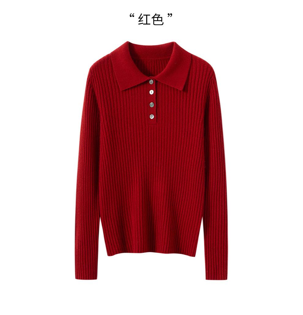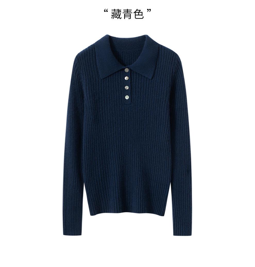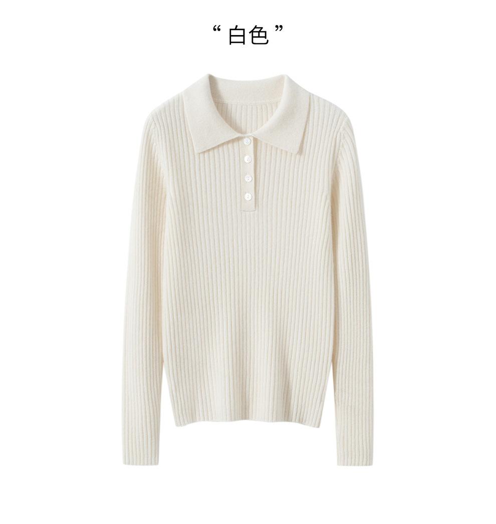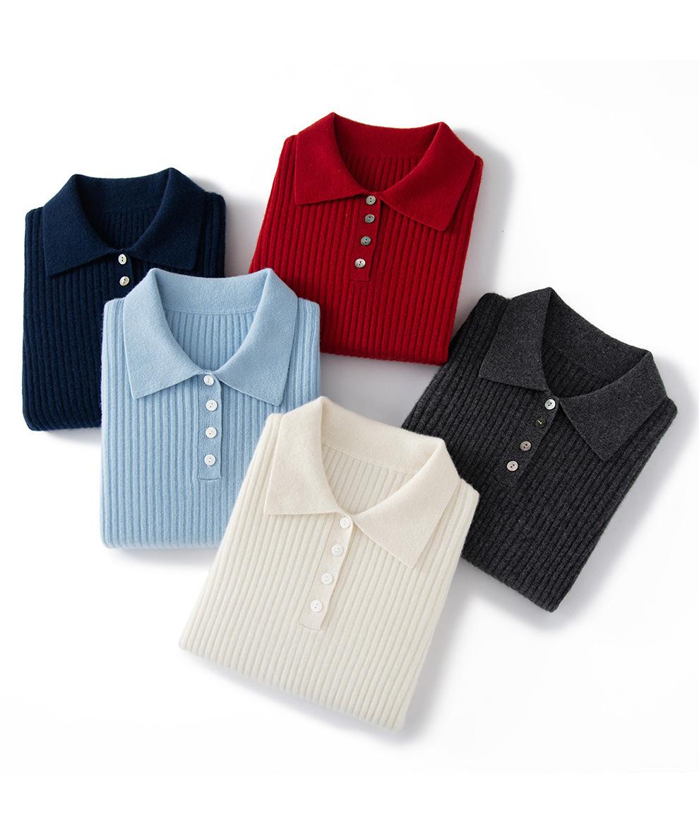 Otoño e invierno casual suave y glutinoso 100 cachemira pura tejido camisa base de manga larga para mujer cálido ajustado top con cuello POLO