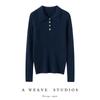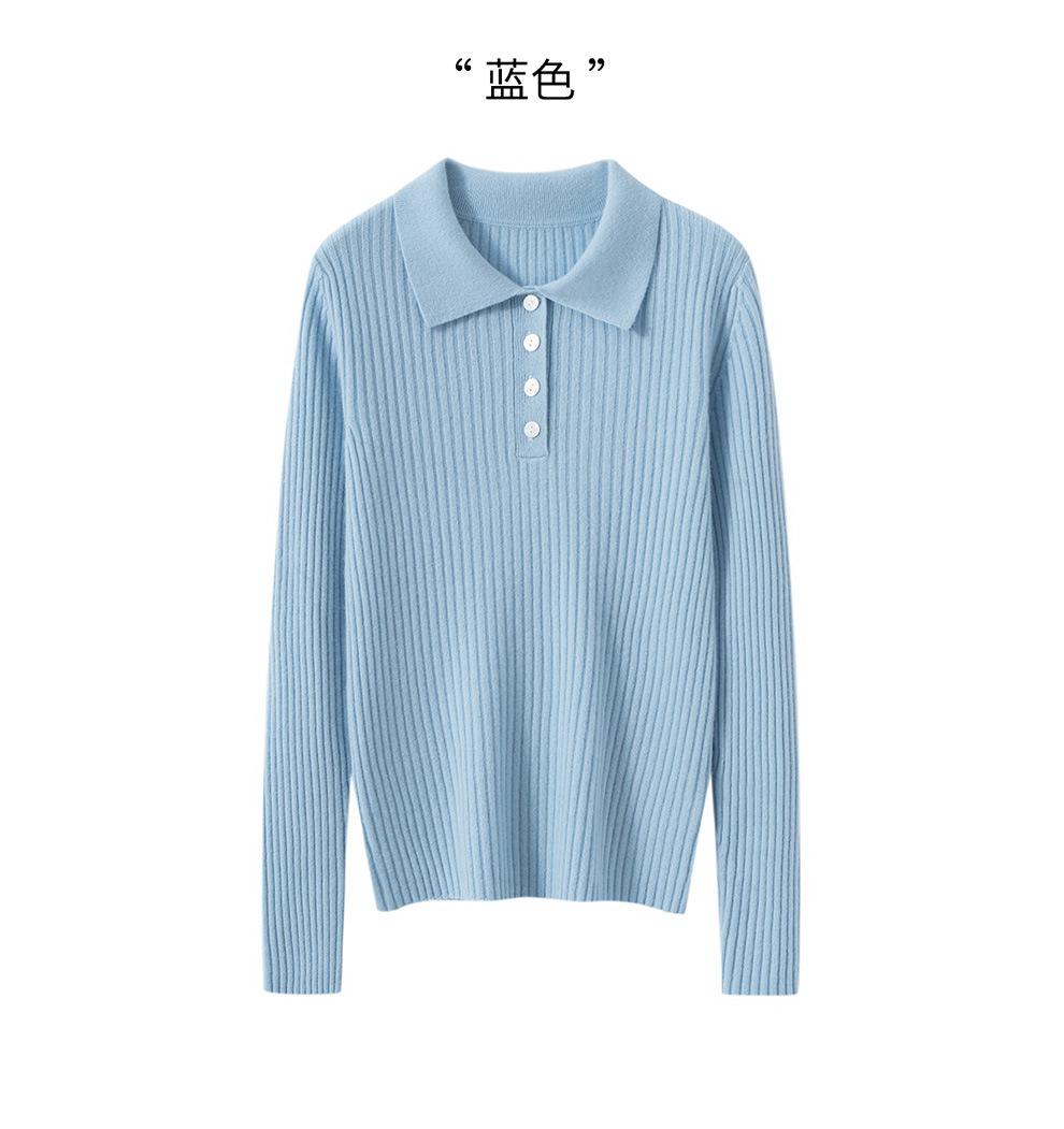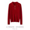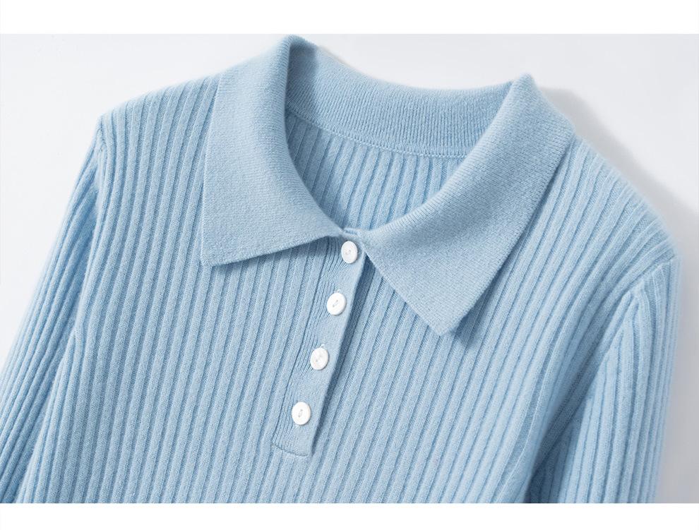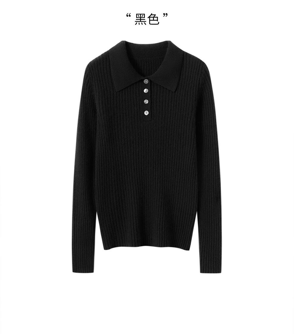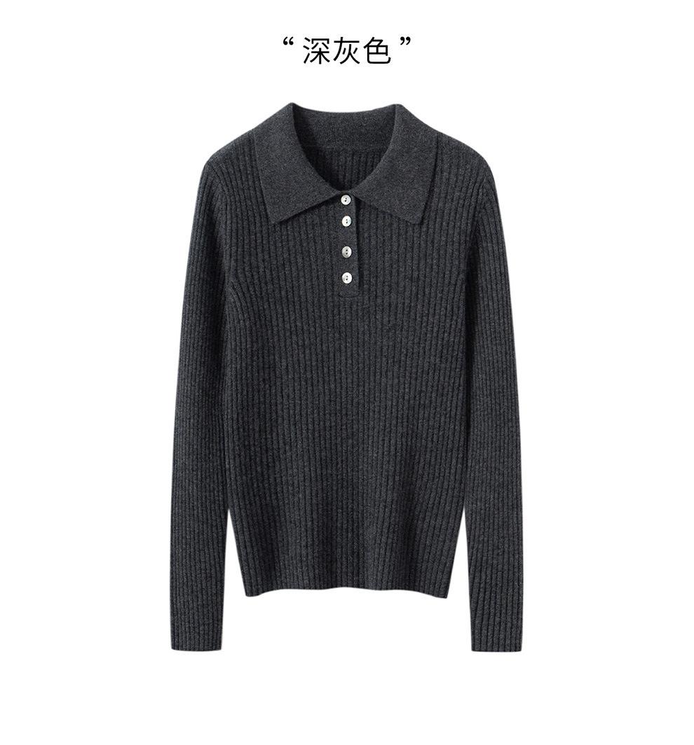 Otoño e invierno casual suave y glutinoso 100 cachemira pura tejido camisa base de manga larga para mujer cálido ajustado top con cuello POLO