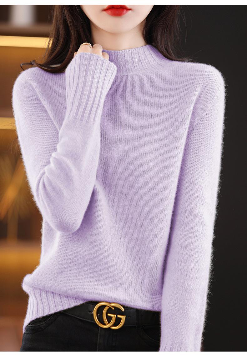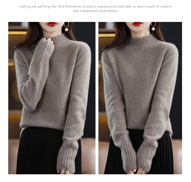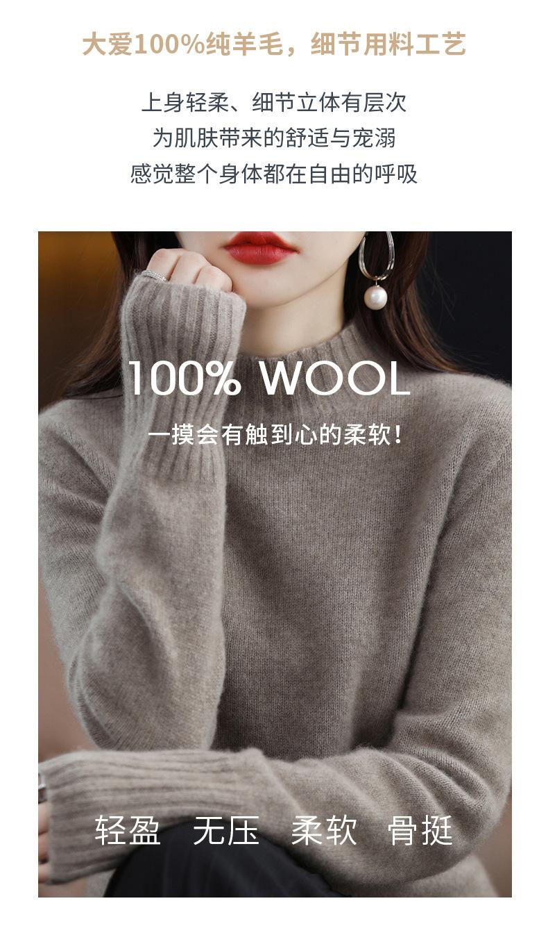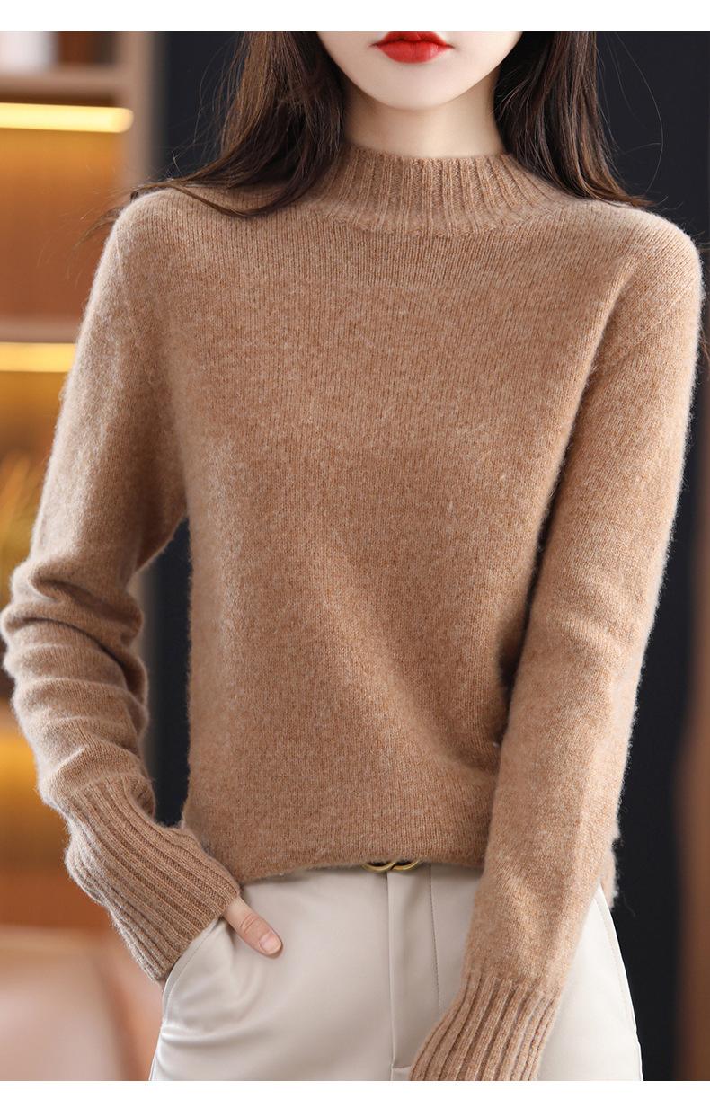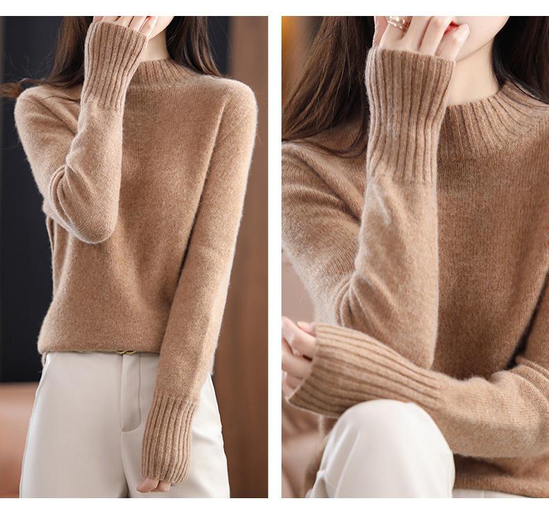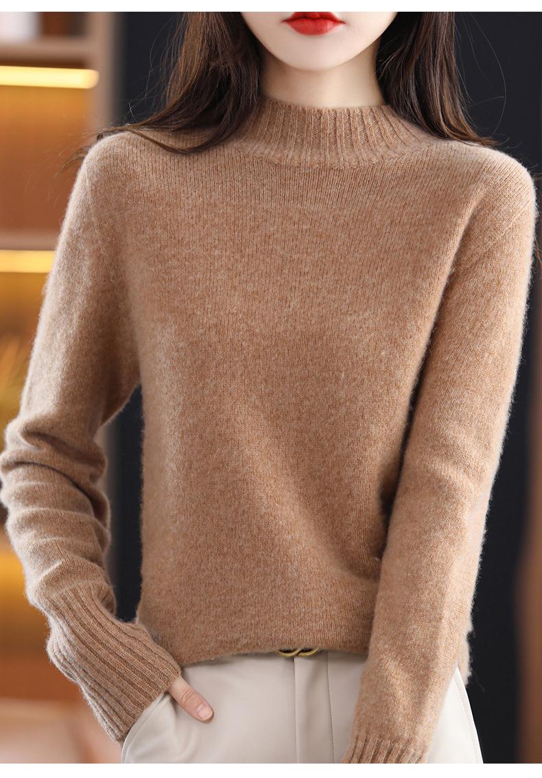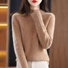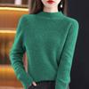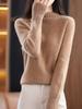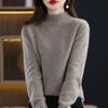 Suéter de Punto de Lana Pura para Mujer 2025 Nuevo Cuello Medio Alto Color Sólido Holgado Casual Grueso de Base de Una Línea