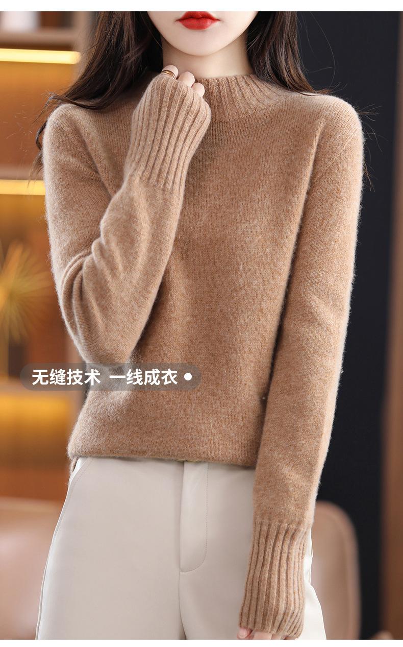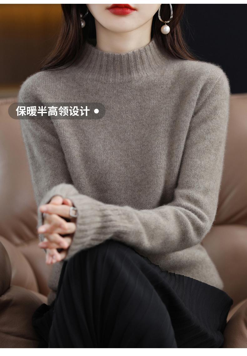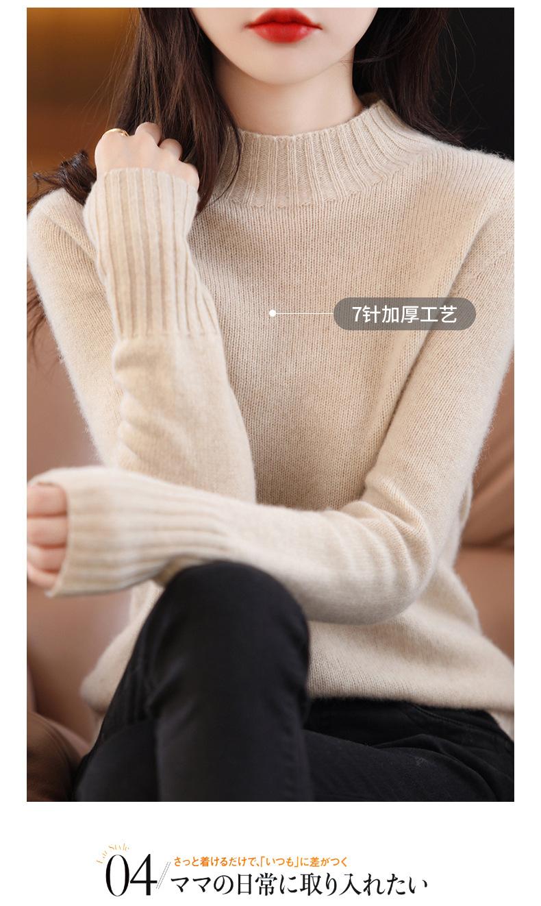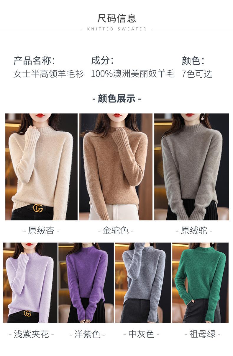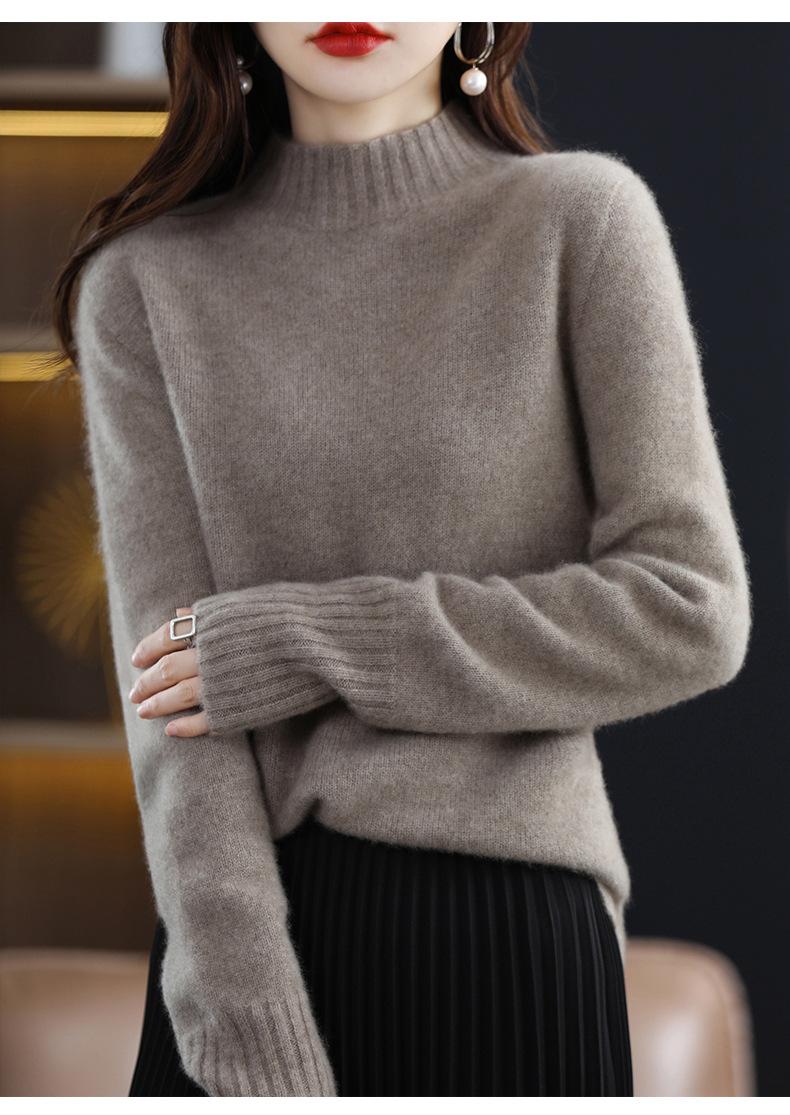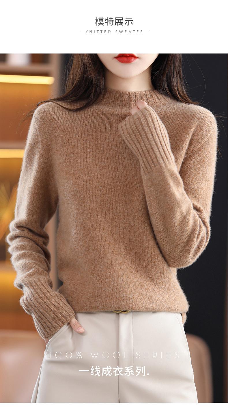 Suéter de Punto de Lana Pura para Mujer 2025 Nuevo Cuello Medio Alto Color Sólido Holgado Casual Grueso de Base de Una Línea