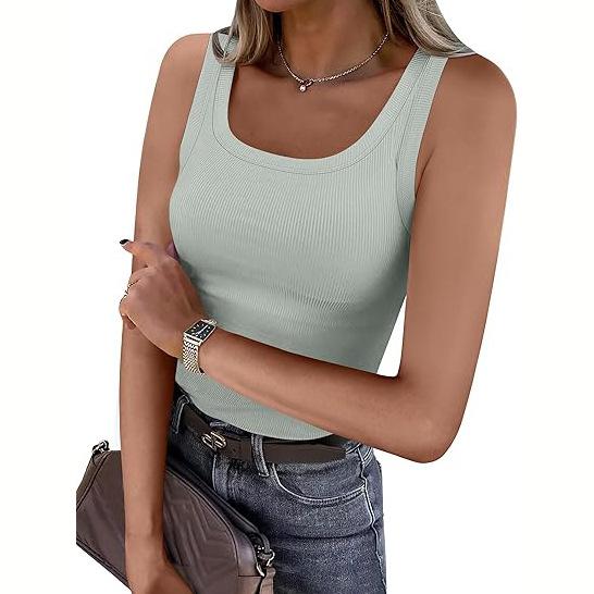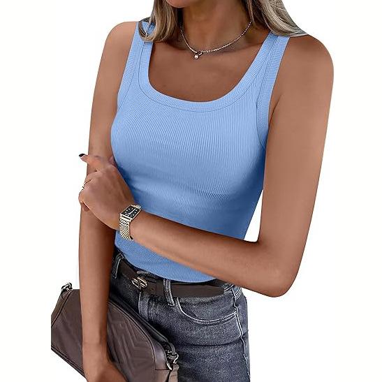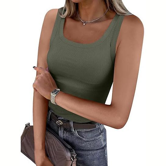 Top sin mangas de mujer europeo y americano transfronterizo de primavera/verano con cuello cuadrado, ajuste ceñido, camisa sin mangas, top básico acanalado para mujer, camiseta