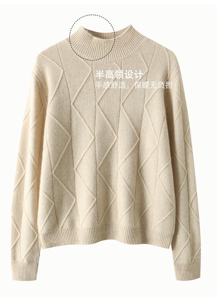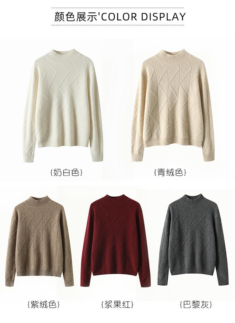 Suéter de Cachemira Mujer 100% Cachemira Pura Otoño e Invierno Nuevo Casual Versátil Suelto Cuello Medio Alto Jersey Tejido