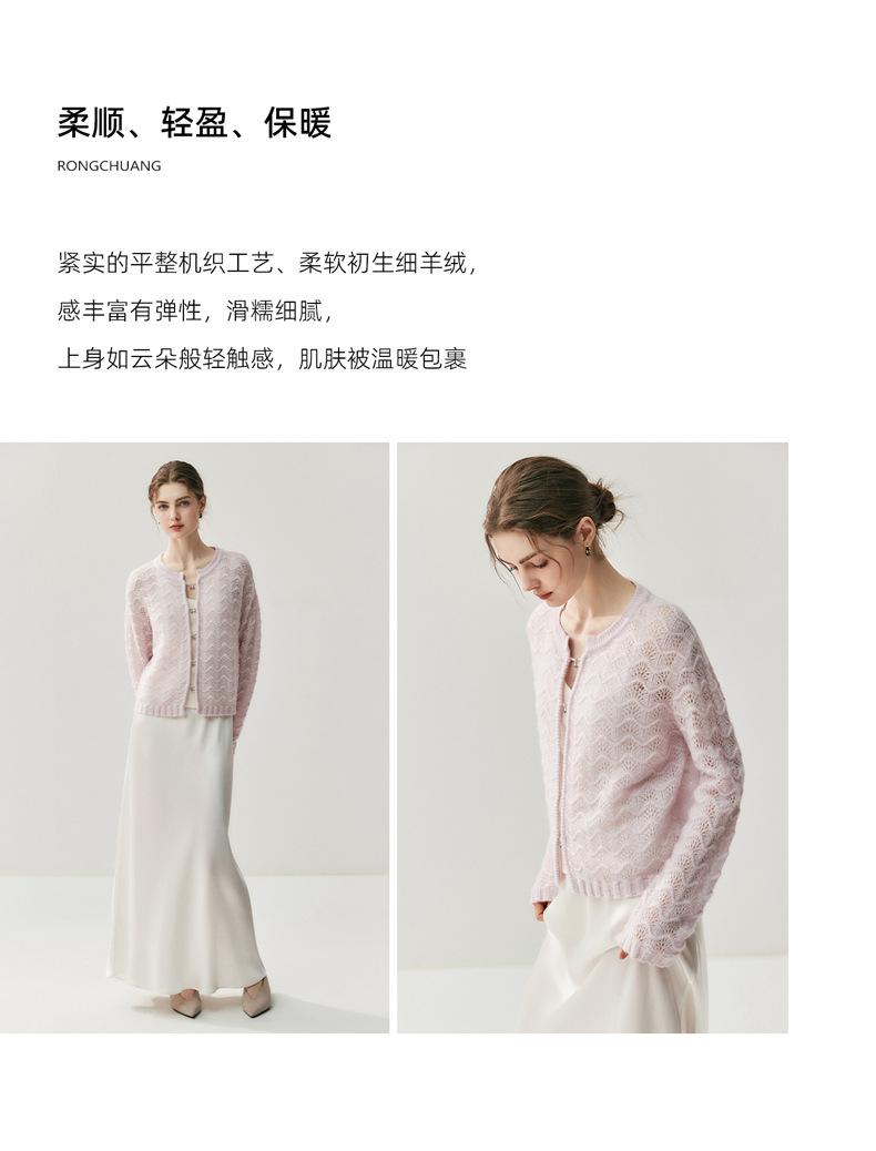 Nuevo Cárdigan de Cachemira Calado Otoño/Invierno para Mujer Cuello Redondo Suave Moda Manga Larga Suéter Tejido Abrigo