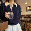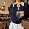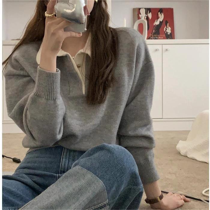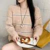 Suéter de temperamento con bloques de color, diseño de nicho, sentido del diseño, cuello alto, estilo coreano perezoso y suave, camisa básica de punto para mujer, otoño e invierno, ropa interior