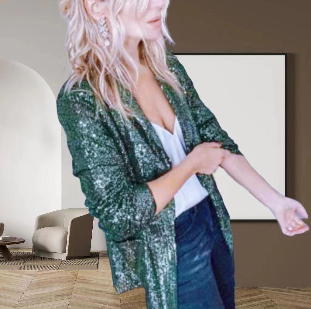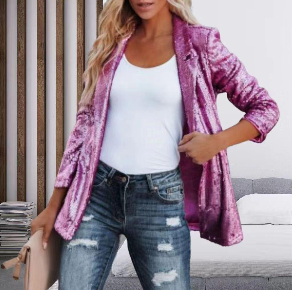 AliExpress 2023 Otoño/Invierno Nuevo Cárdigan Solapa Top Manga Larga Lentejuela Casual Chaqueta de Traje INS