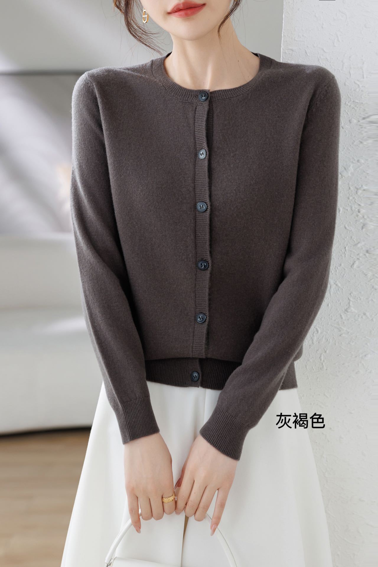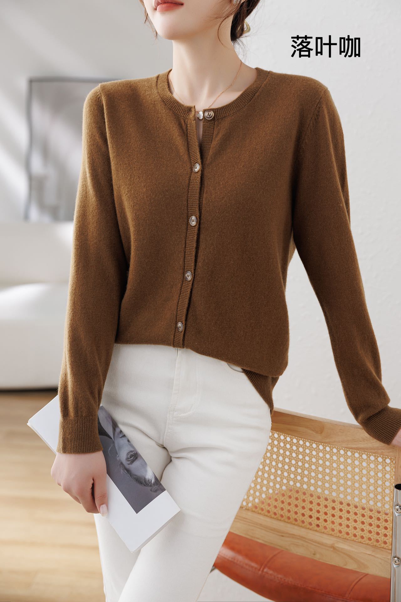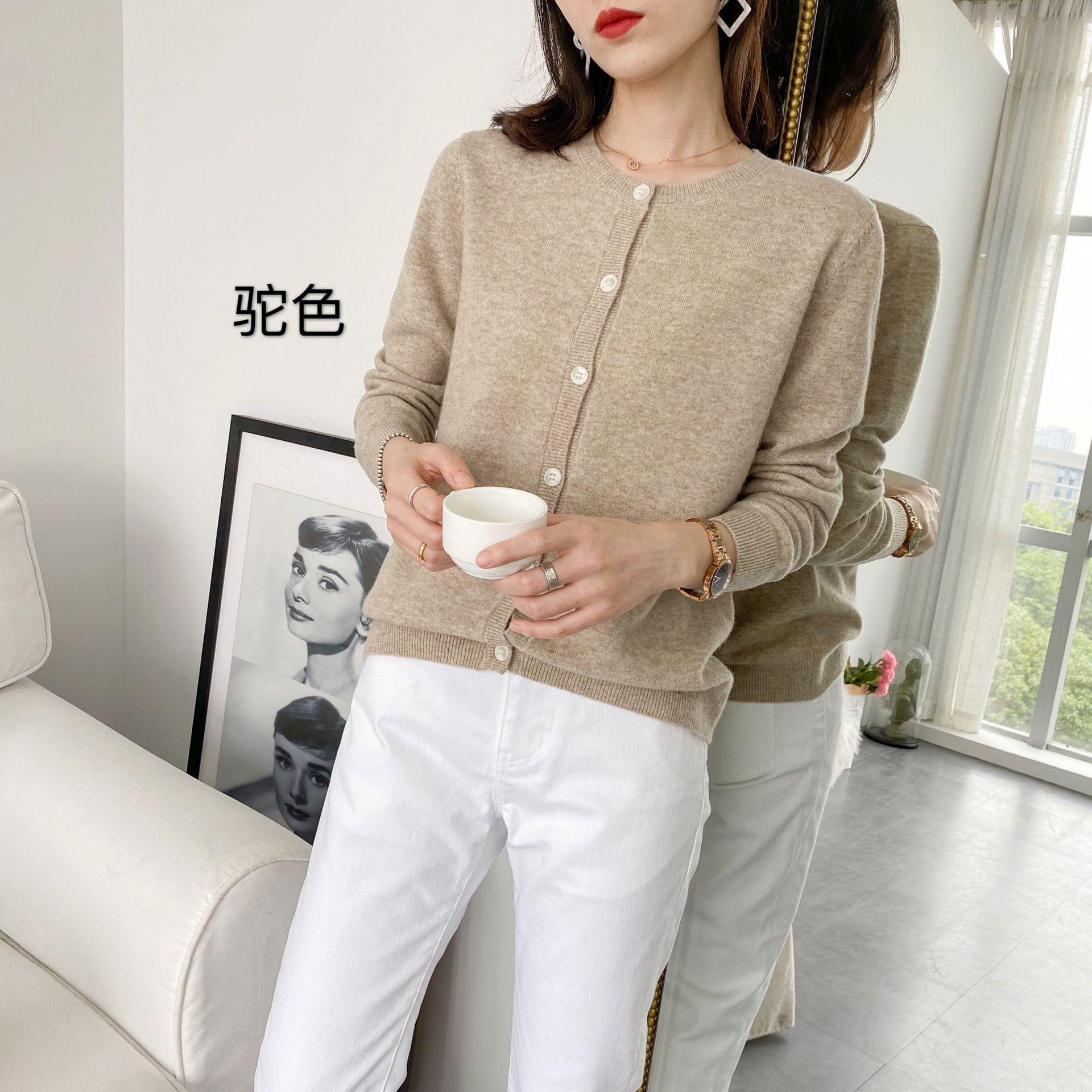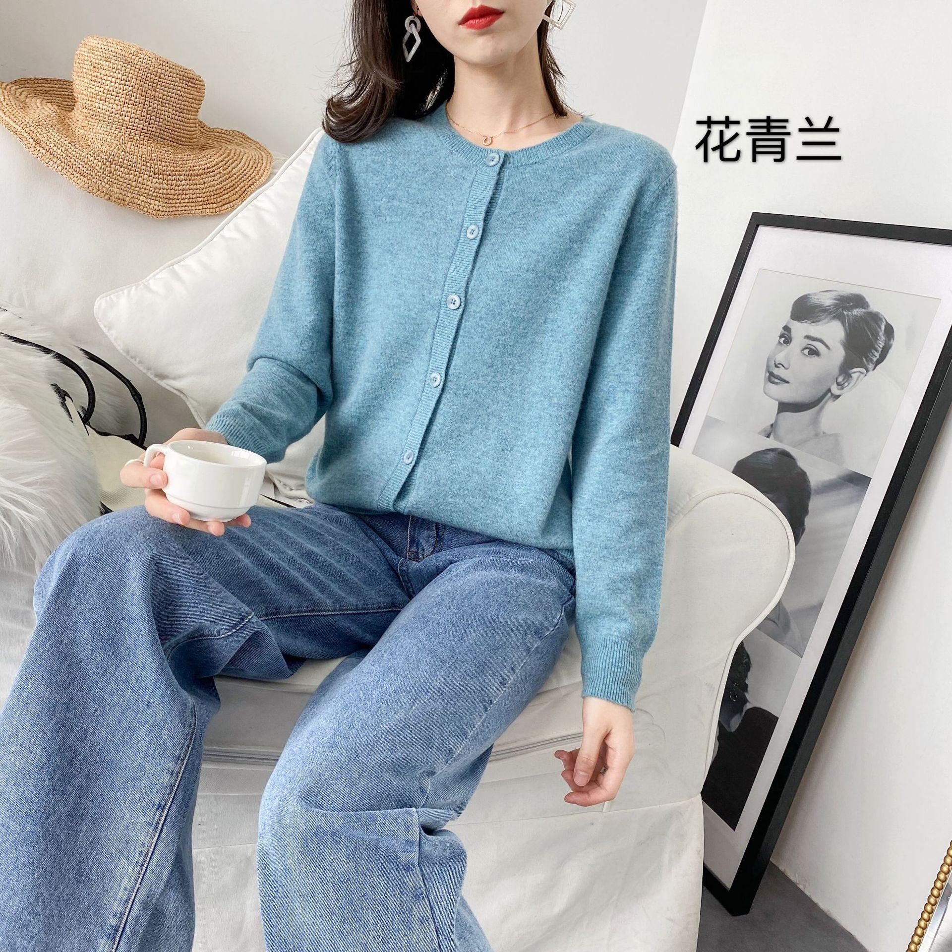 Cárdigan de cuello redondo para dama, material 100% lana, engrosado, tacto cashmere, galga 12 de conteo 26, enlazado a mano, alta densidad, bienvenidos comerciantes de todos los canales para discutir cooperación, con una gran cantidad de stock