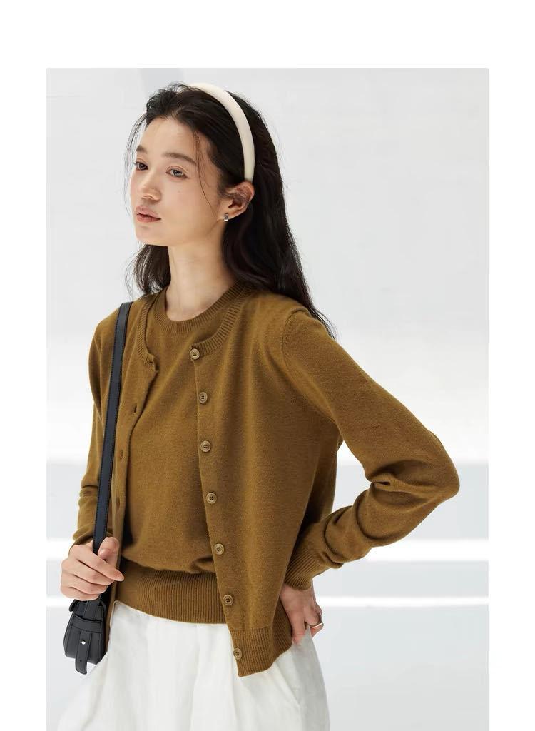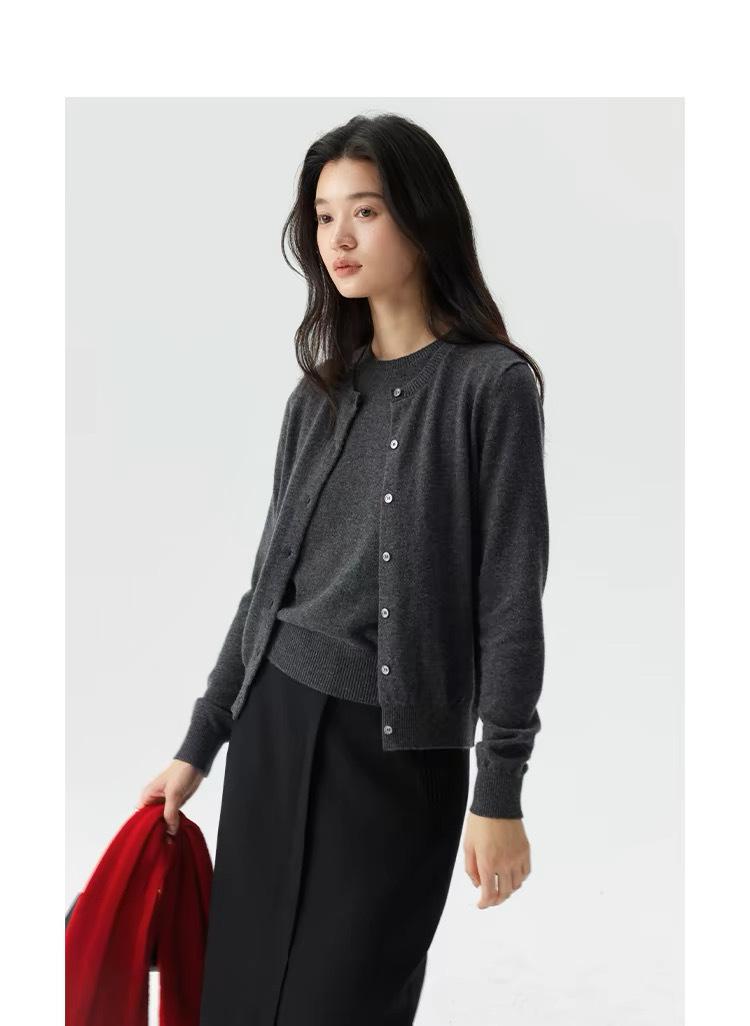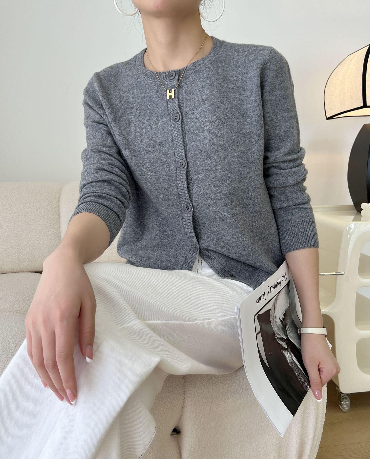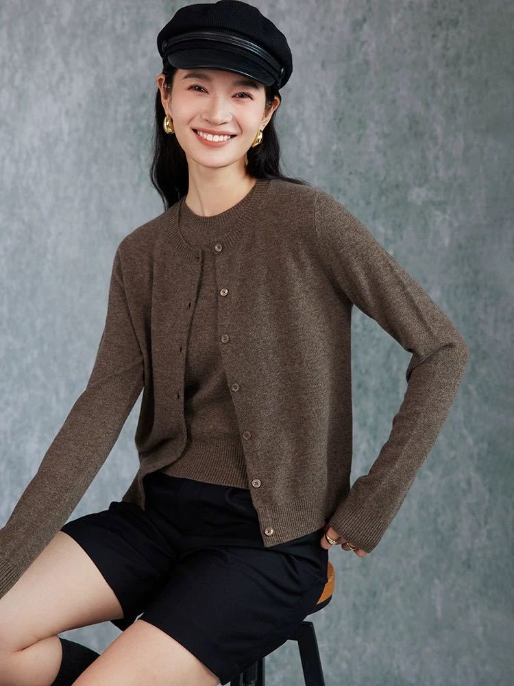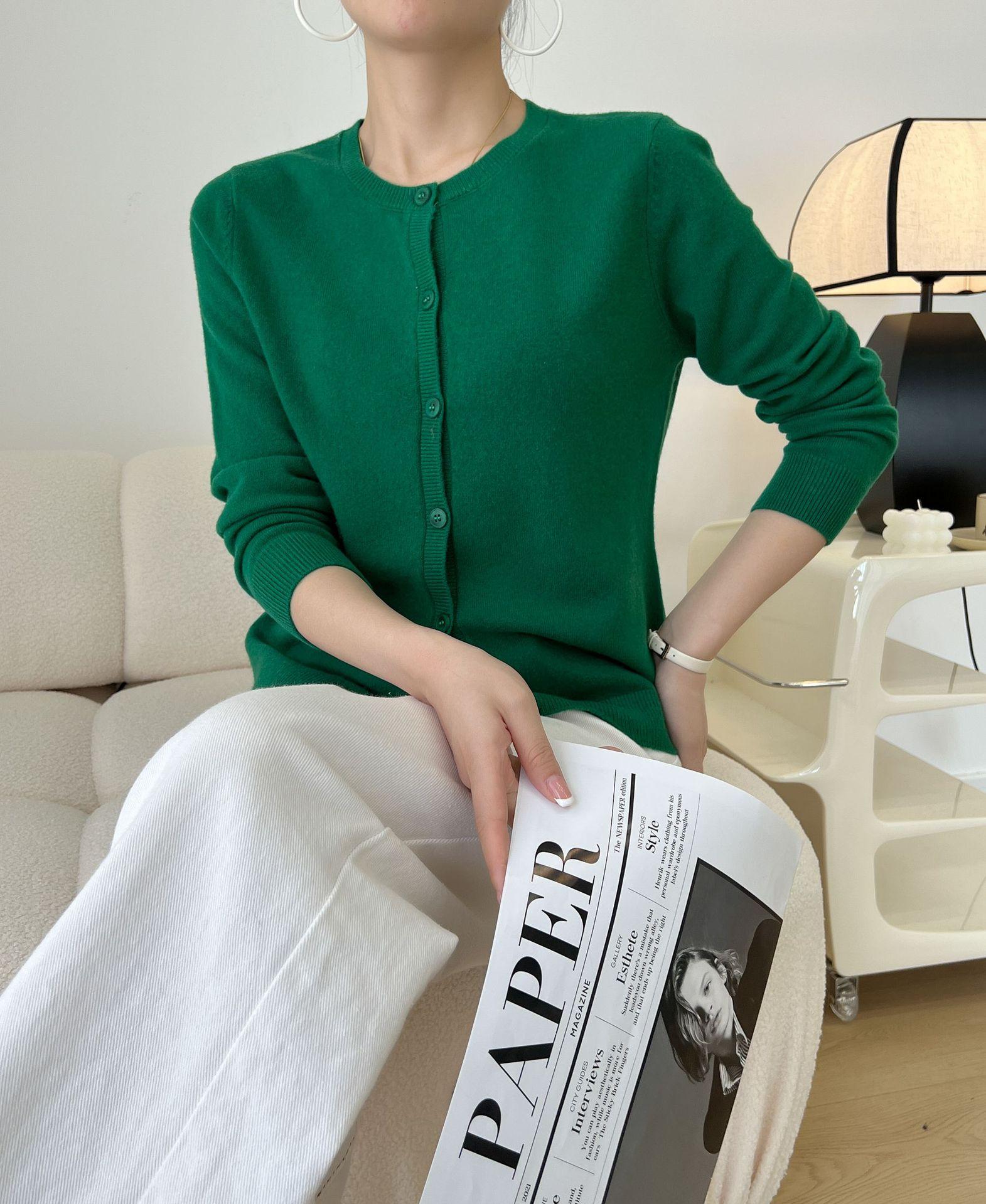 Cárdigan de cuello redondo para dama, material 100% lana, engrosado, tacto cashmere, galga 12 de conteo 26, enlazado a mano, alta densidad, bienvenidos comerciantes de todos los canales para discutir cooperación, con una gran cantidad de stock