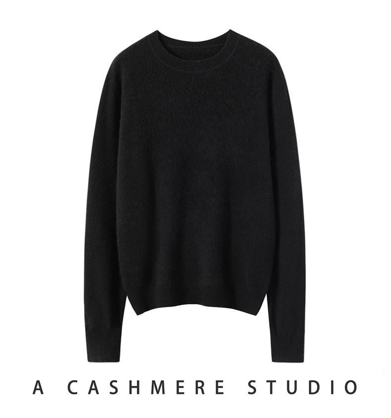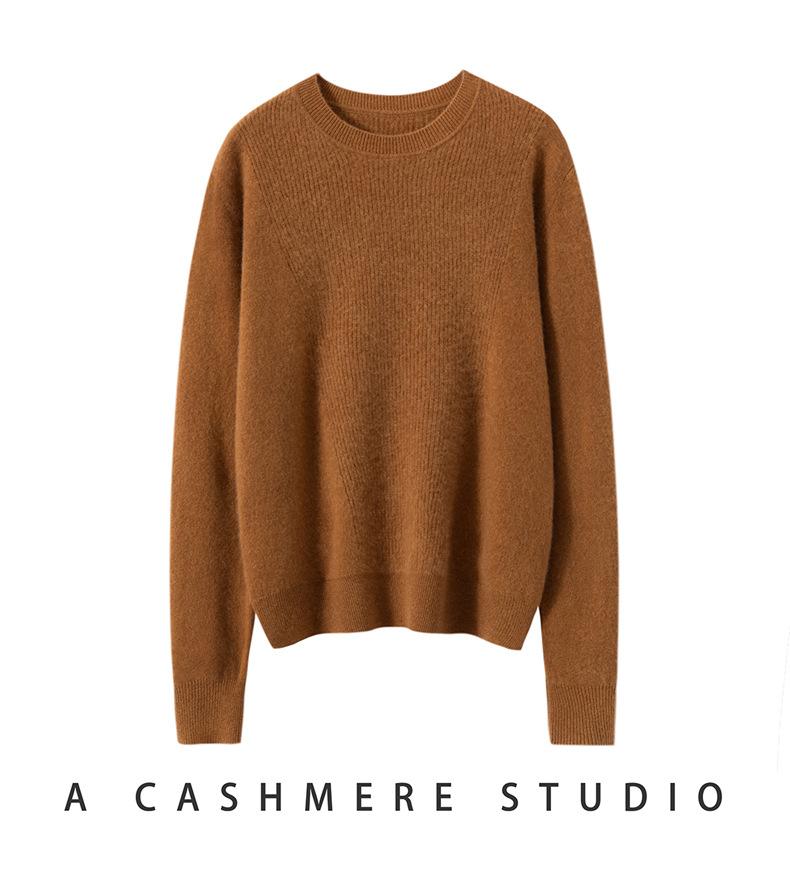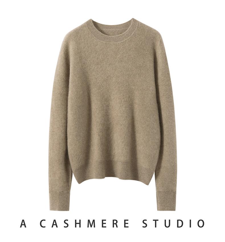 2025 Nuevo Tejido de Cachemira para Mujer Jersey de Cuello Redondo Color Sólido Suelto Casual Cálido Manga Larga Suéter Base