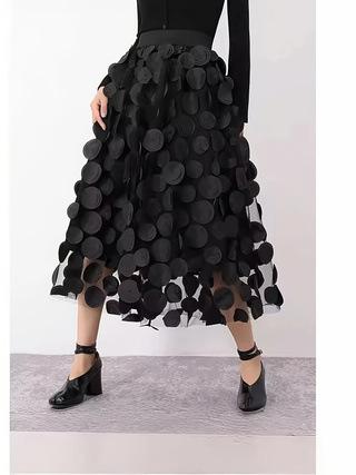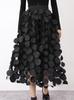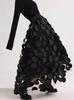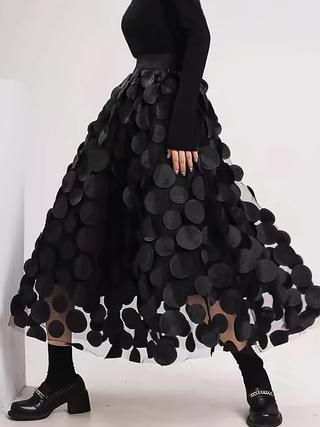 Falda Midi Talla Grande Negra Cintura Elástica Falda Línea A Falda Versátil de Largo Medio Falda Completa Estilo Caliente Europeo y Americano