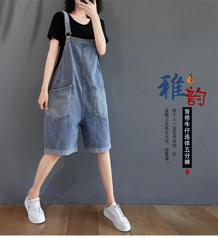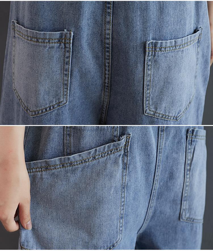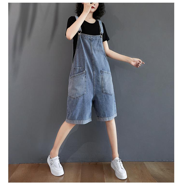 Overol de mezclilla holgado de bolsillo grande para chica gorda