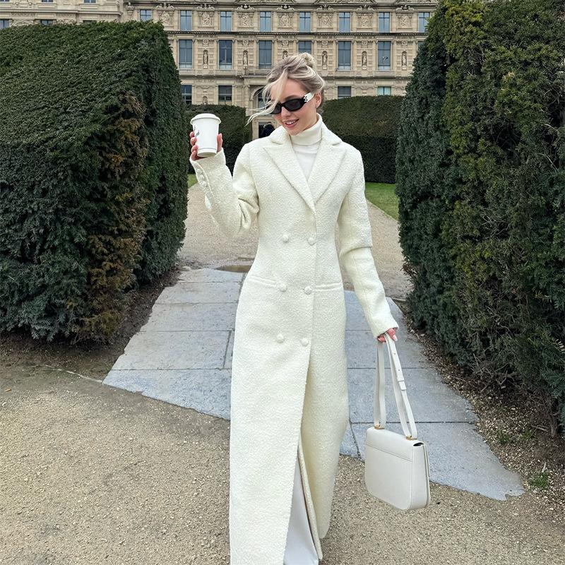 Amazon Transfronterizo Europeo y Americano Comercio Exterior 2025 Otoño e Invierno Nuevo Abrigo Largo Ajustado de Color Sólido Ropa de Mujer