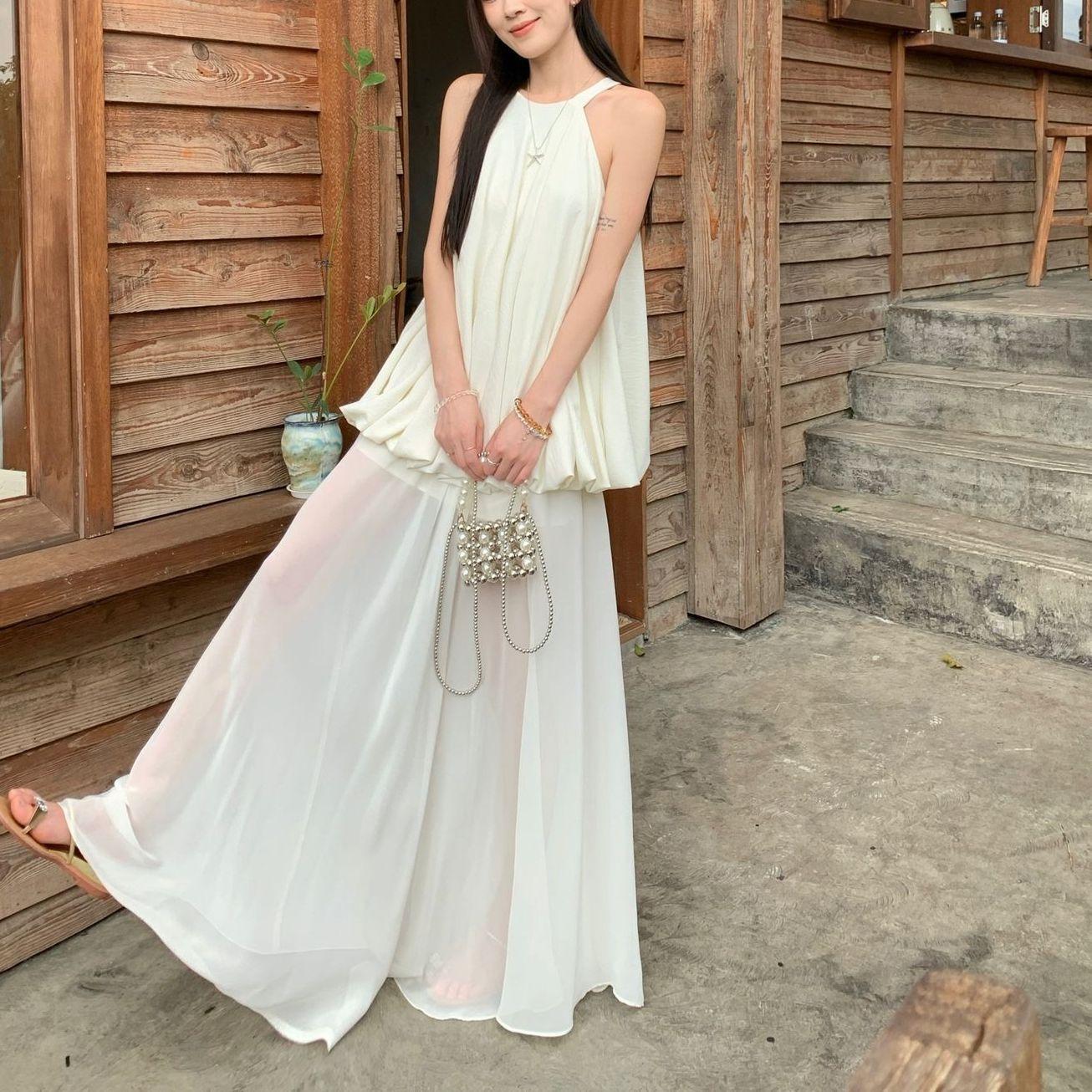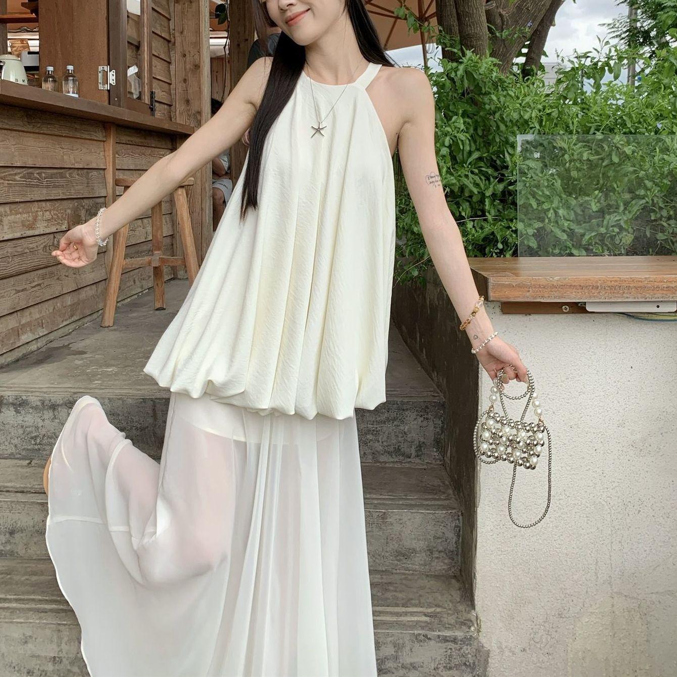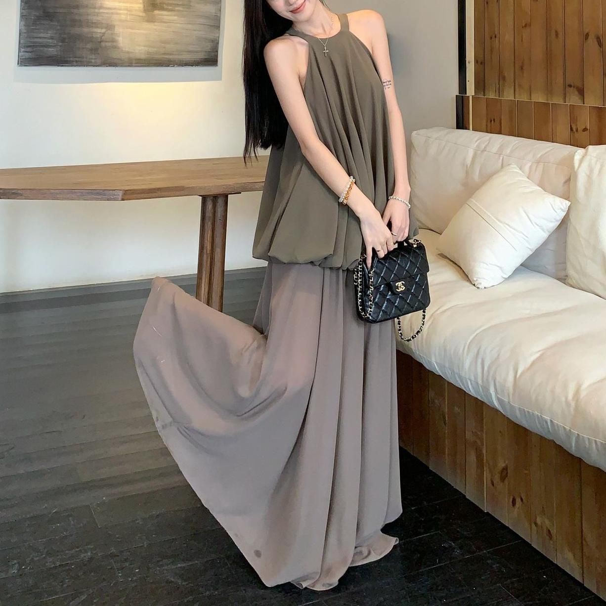 Conjunto de Moda Halter sin Mangas Top Tulipán Moda Conjunto Verano 2025 Nuevo Cómodo Cintura Alta Falda Midi