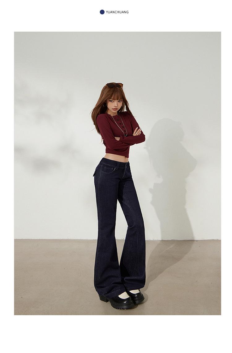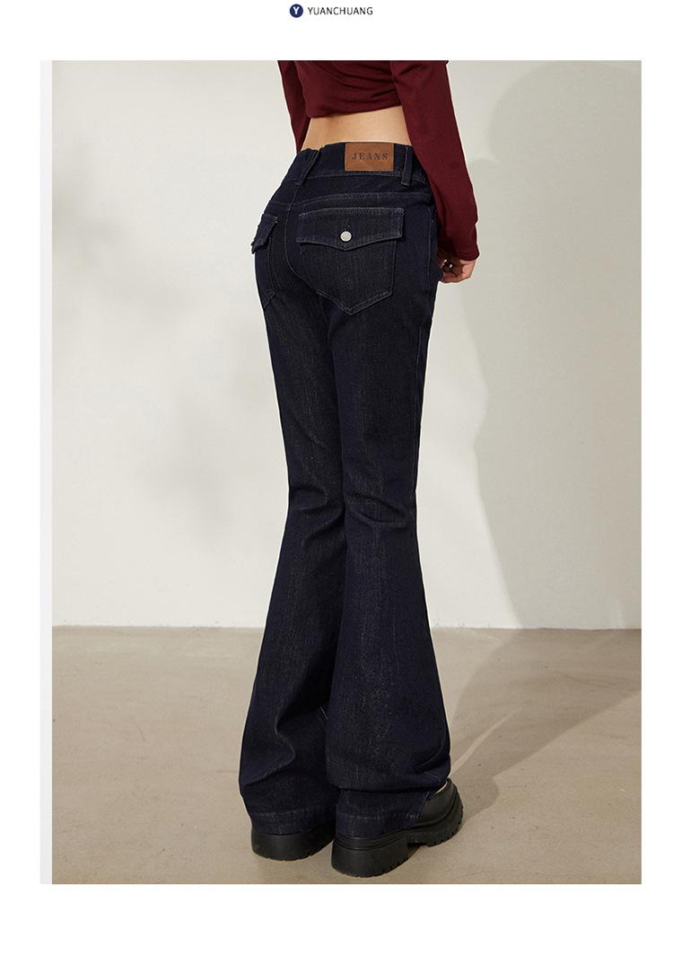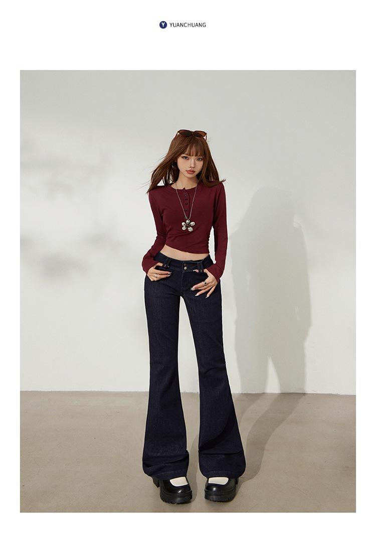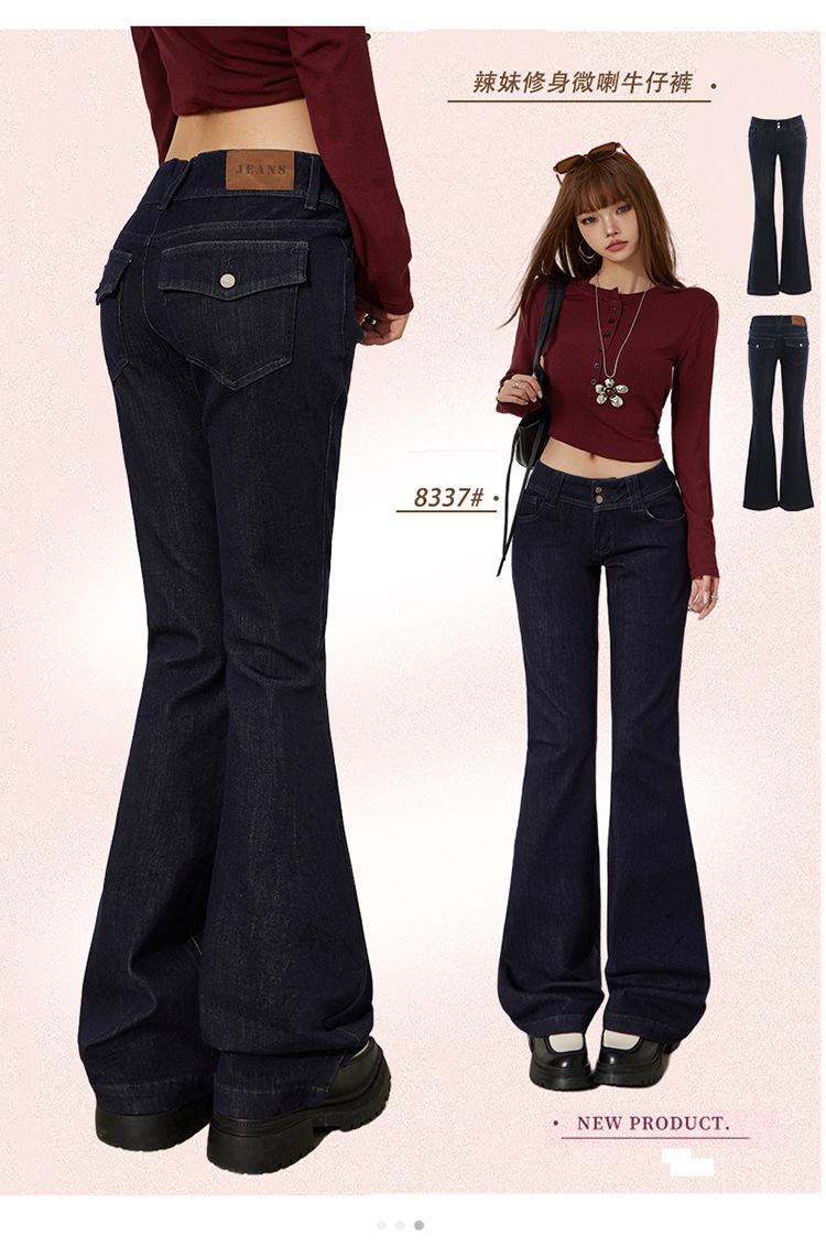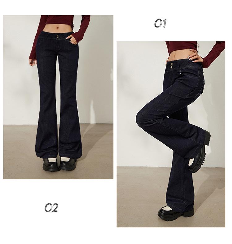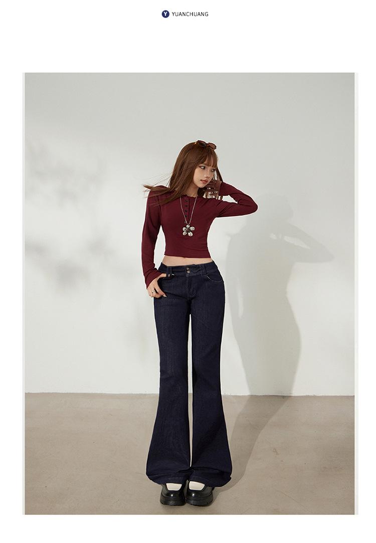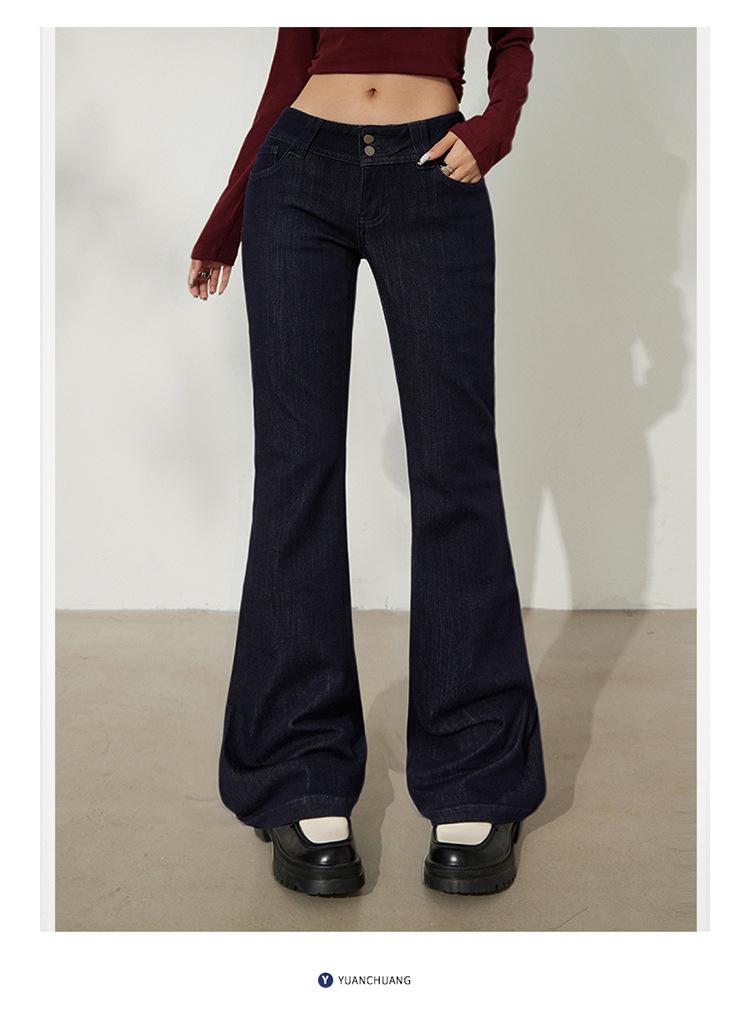 YC&Retro Americano Chica Sexy Cintura Baja Doble Botón Ajustado Acampanado Pantalones Versátiles Otoño Invierno Jeans de Mezclilla Elásticos Mujer Nuevo