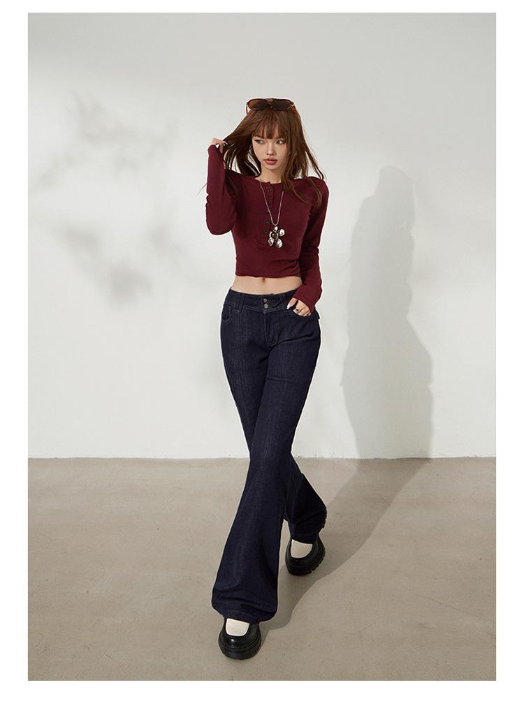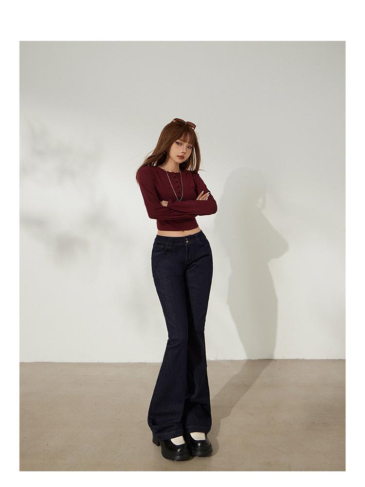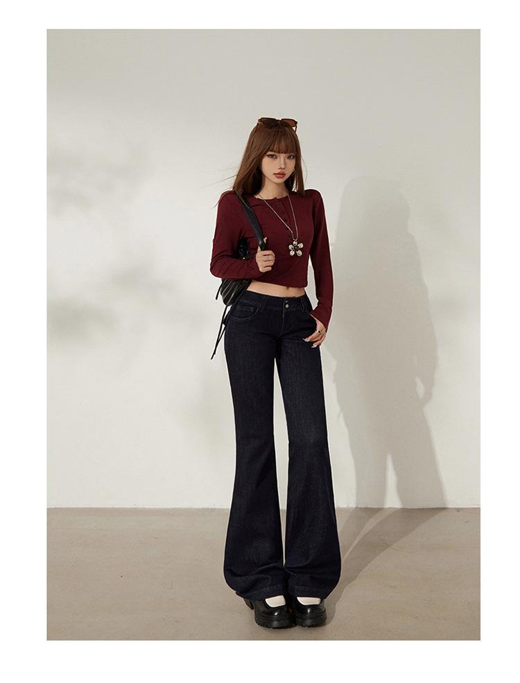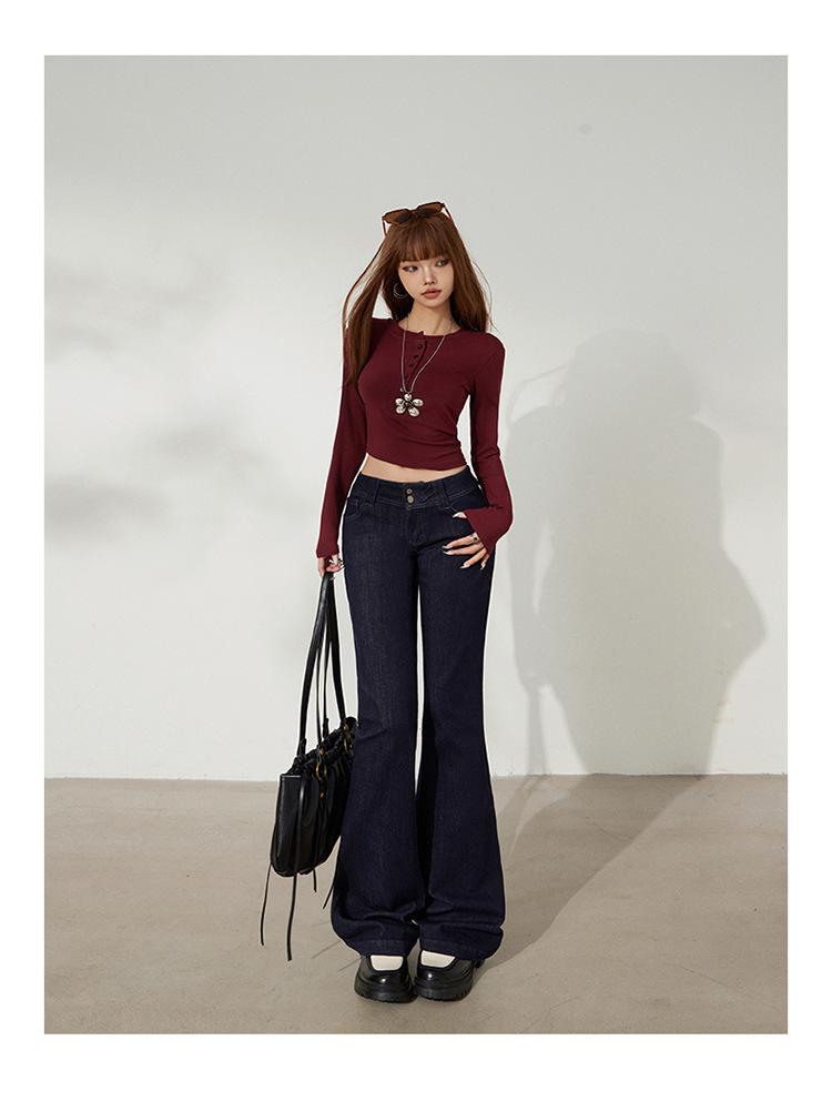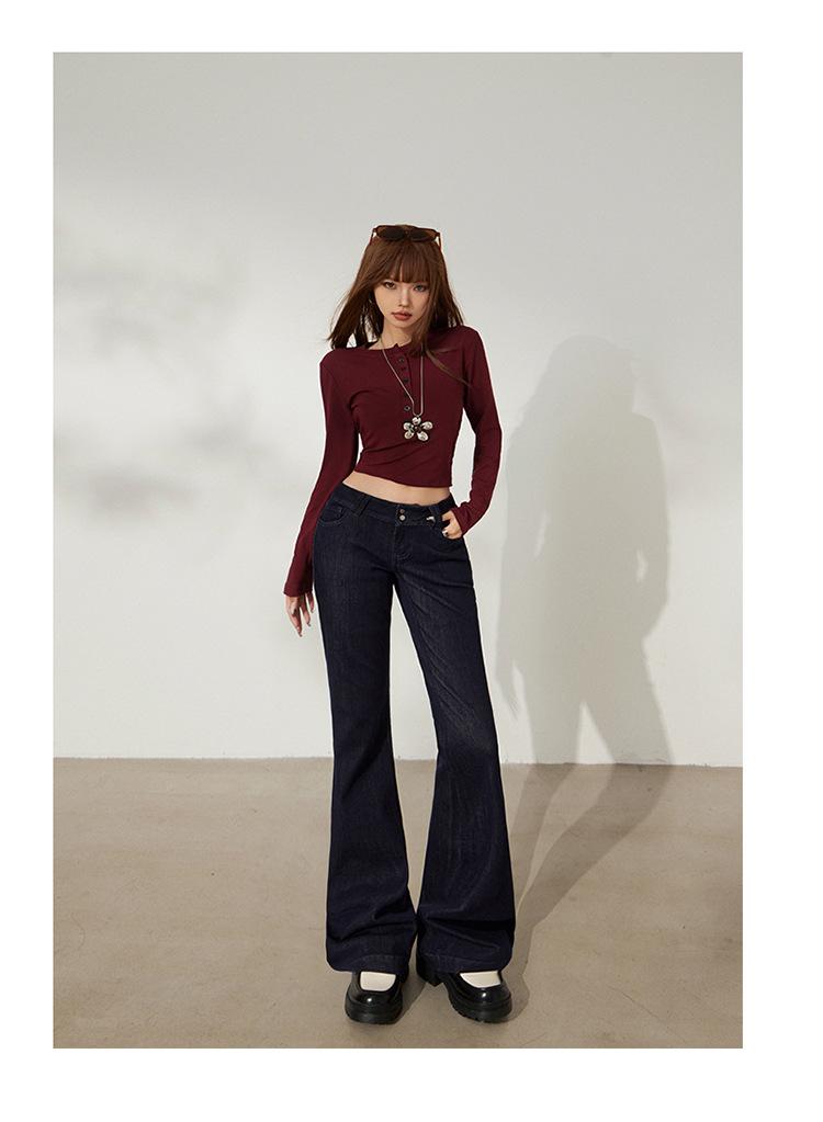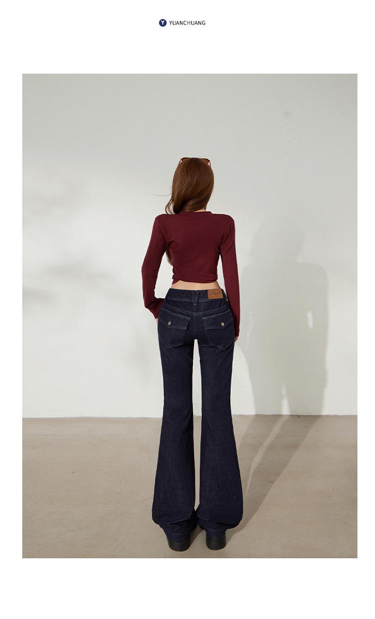YC&Retro Americano Chica Sexy Cintura Baja Doble Botón Ajustado Acampanado Pantalones Versátiles Otoño Invierno Jeans de Mezclilla Elásticos Mujer Nuevo