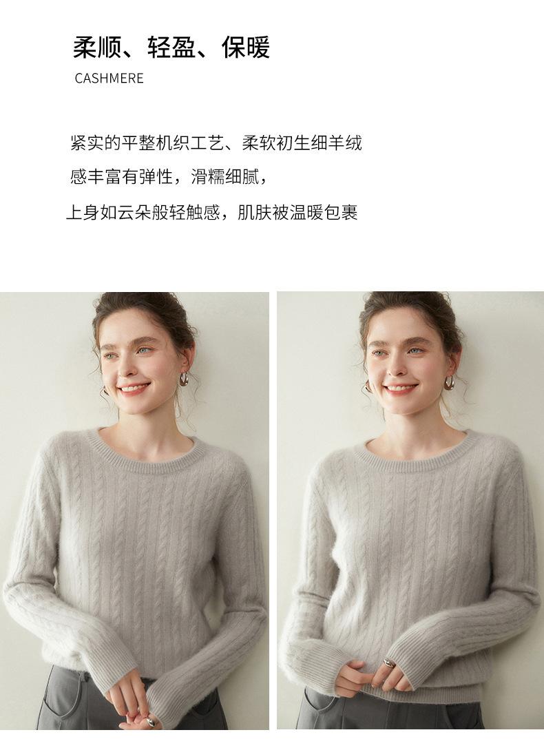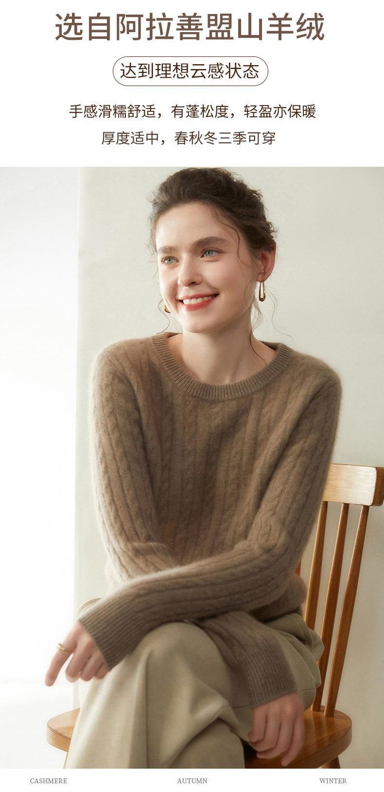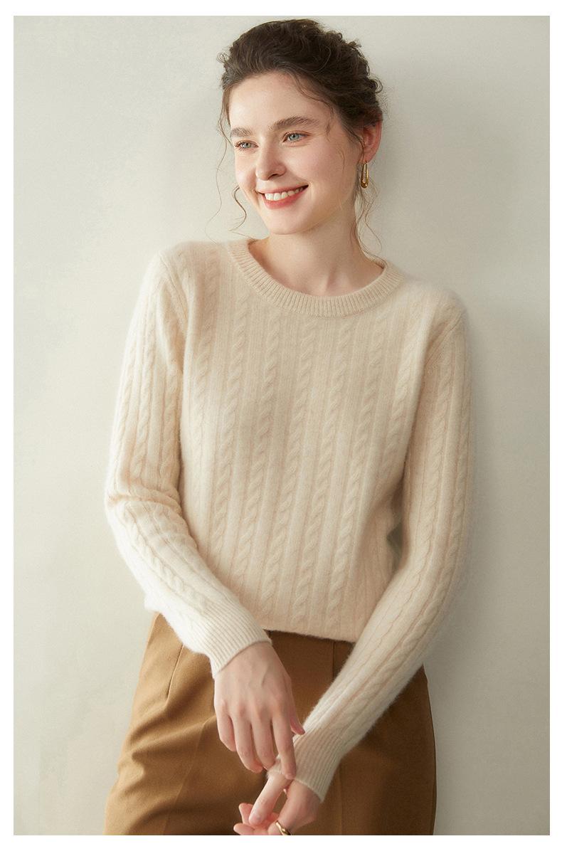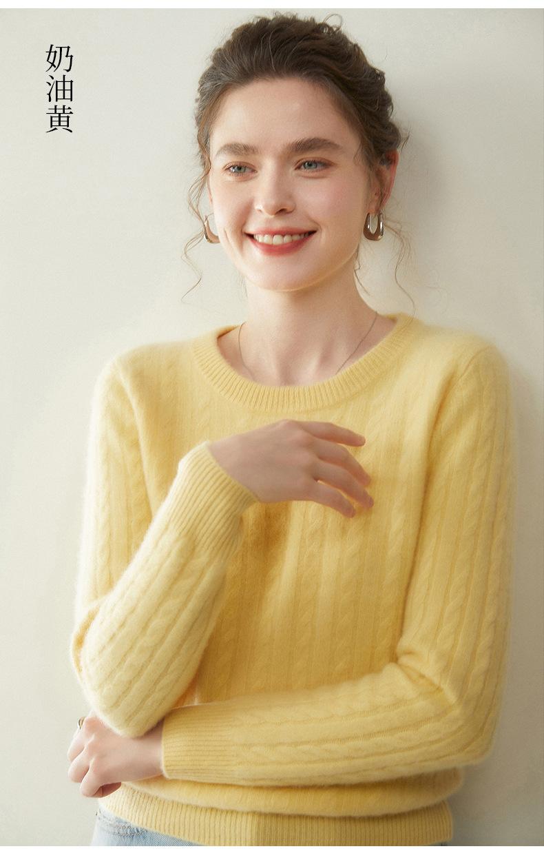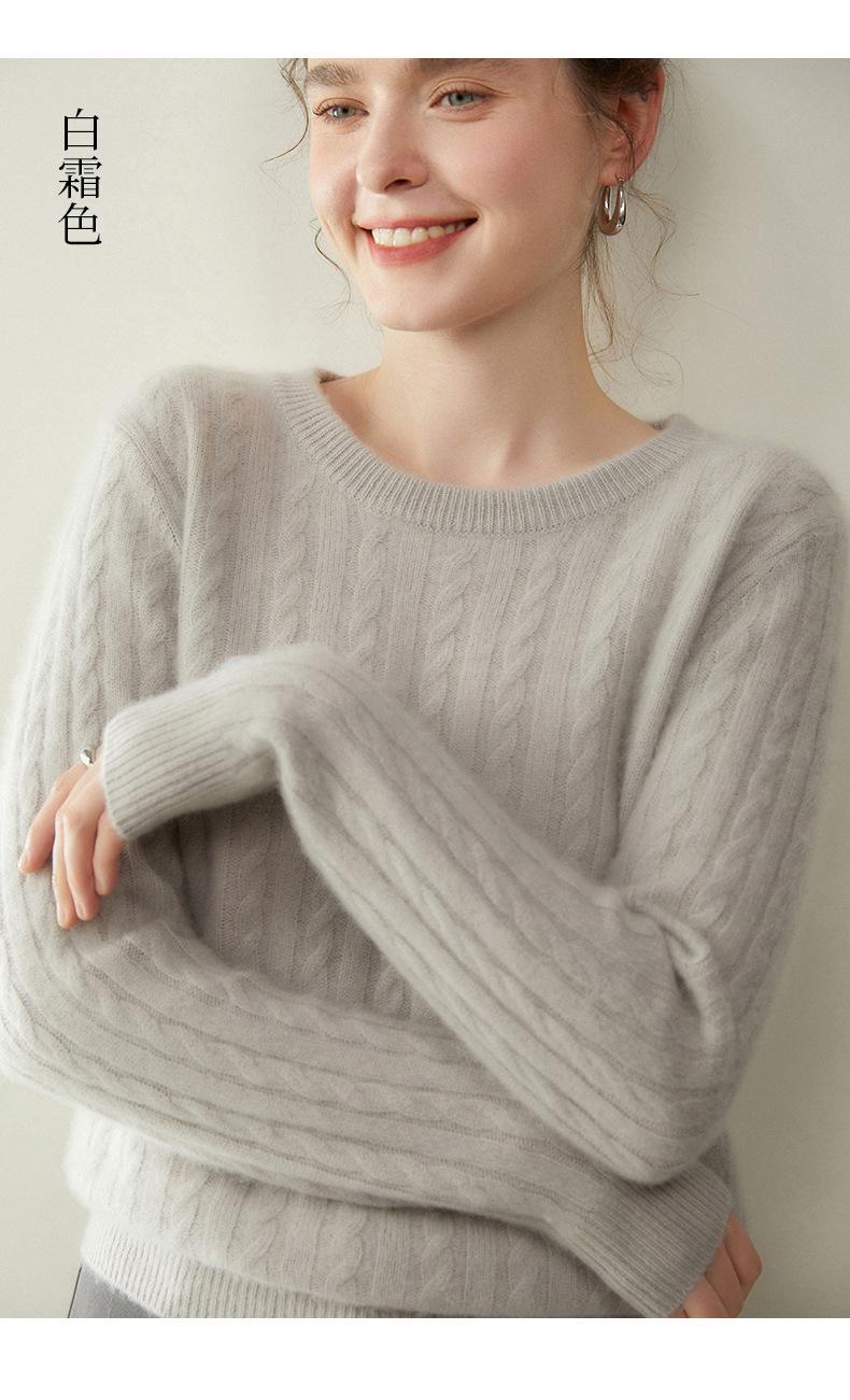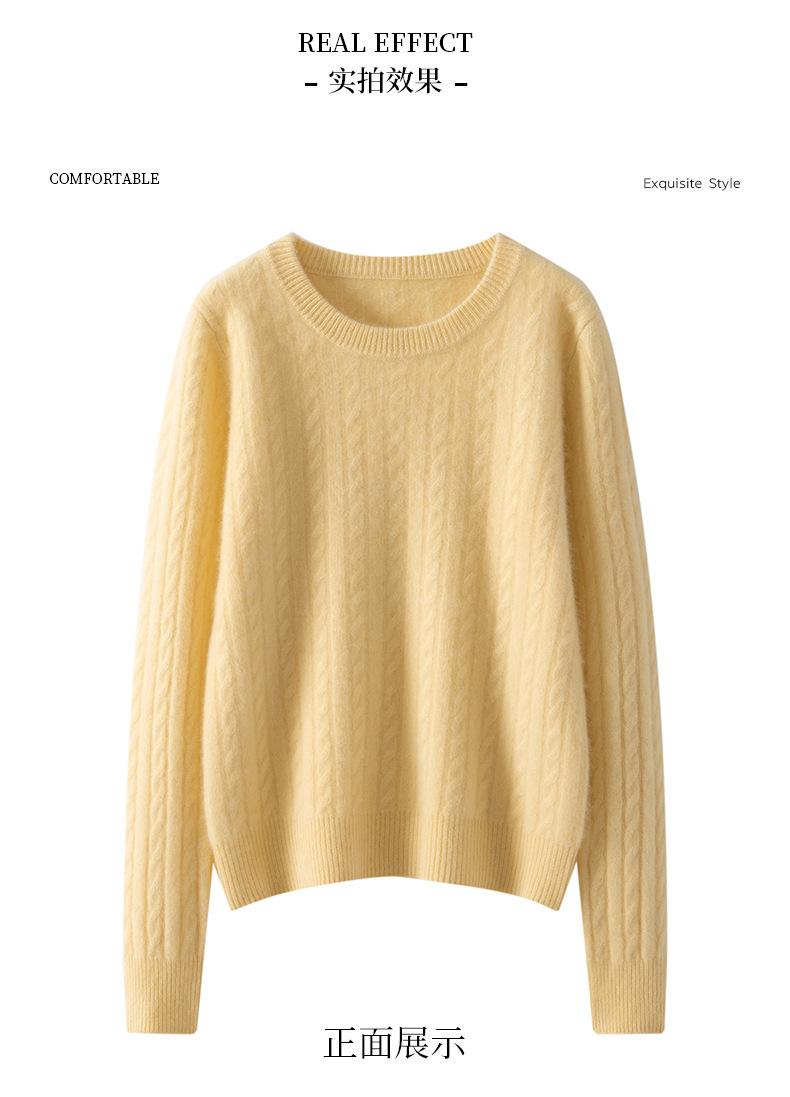 Suéter de Cachemira Mujer 2025 Otoño/Invierno Nuevo Corto Cuello Redondo Tejido de Cables Suelto Casual Base Simple Temperamento Suéter Interior