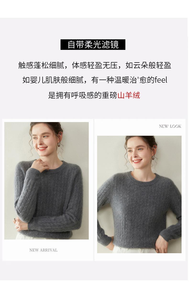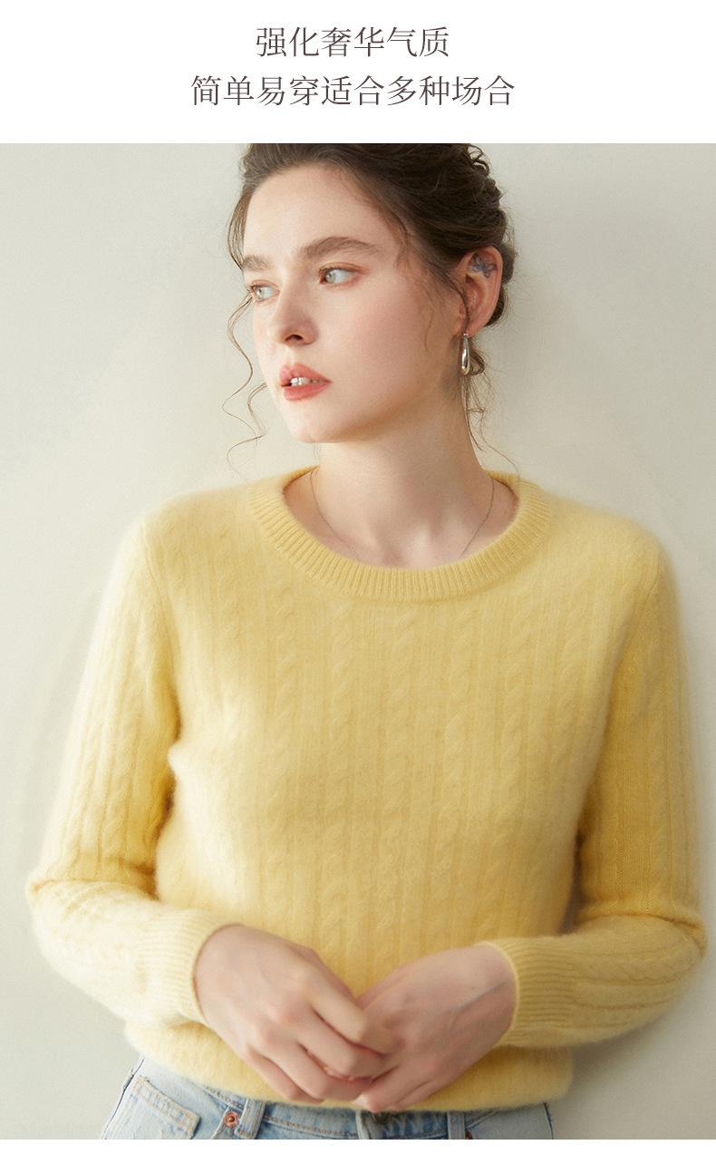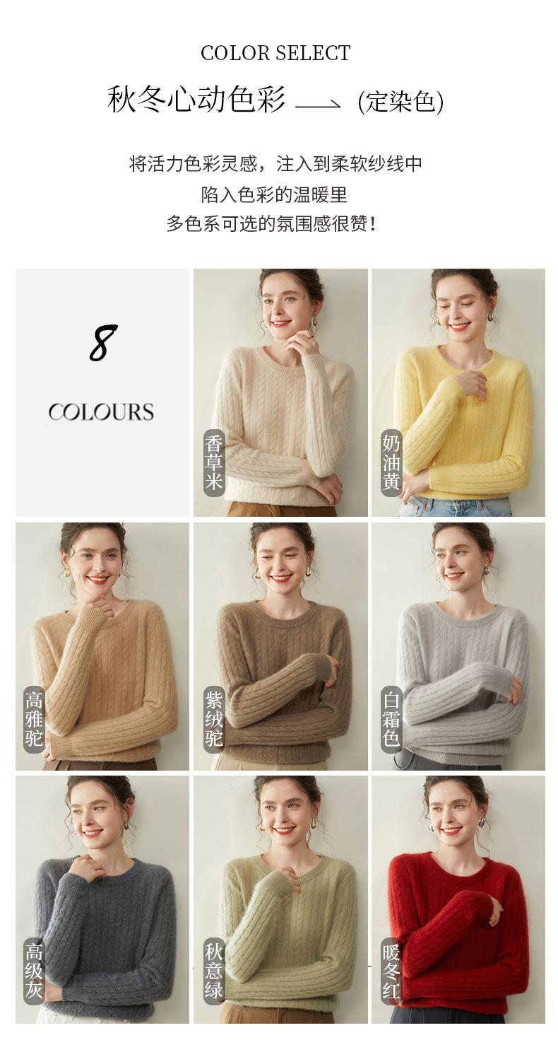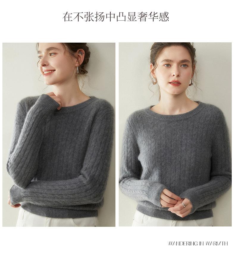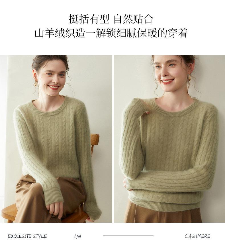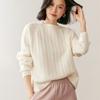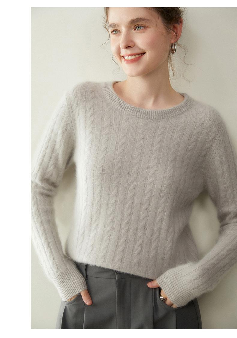 Suéter de Cachemira Mujer 2025 Otoño/Invierno Nuevo Corto Cuello Redondo Tejido de Cables Suelto Casual Base Simple Temperamento Suéter Interior