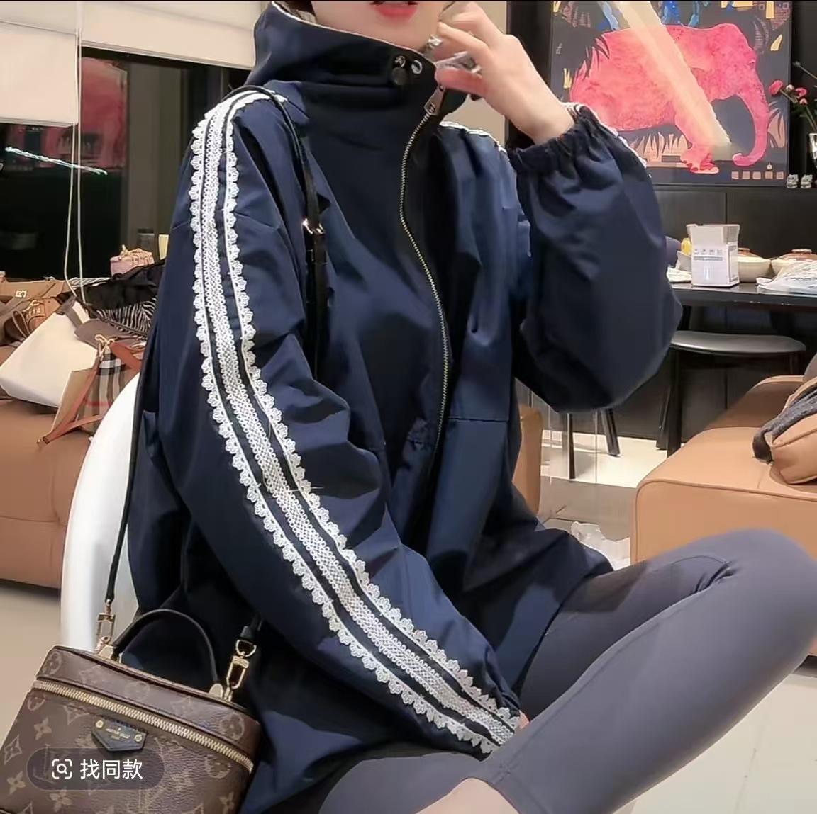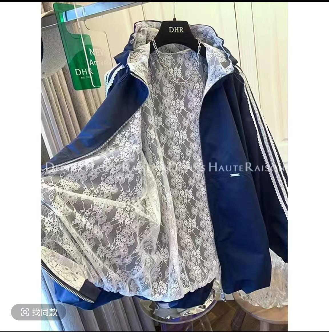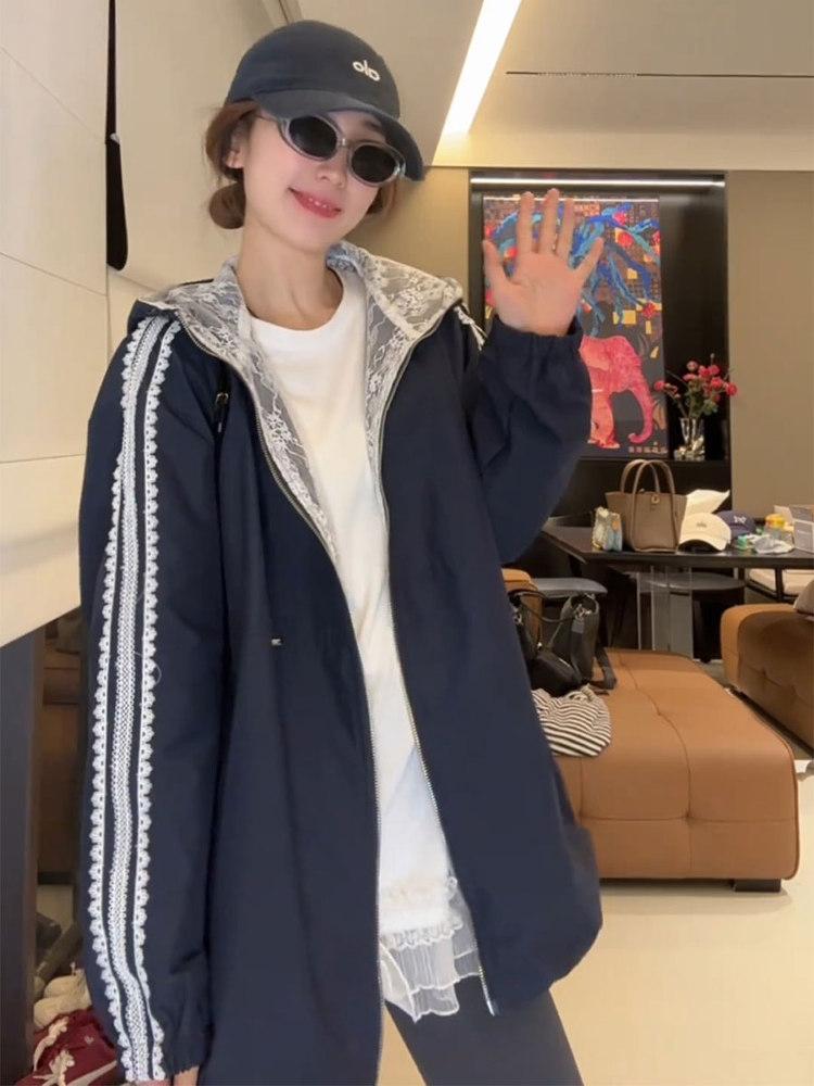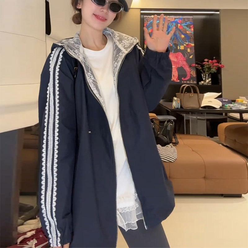 Chaqueta con Capucha Europea de Punto Calado a Rayas para Mujer Primavera 2025 Nueva Chaqueta Top de Diseño Holgado