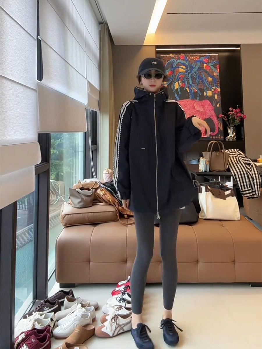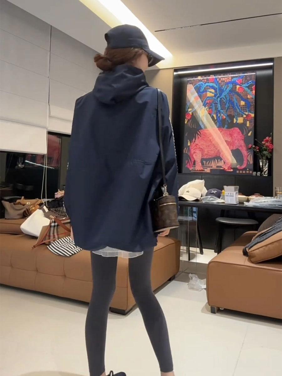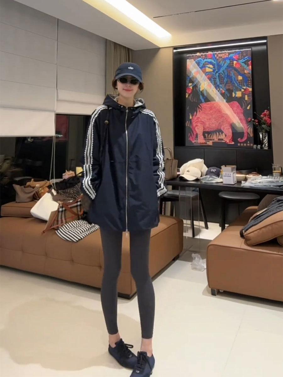 Chaqueta con Capucha Europea de Punto Calado a Rayas para Mujer Primavera 2025 Nueva Chaqueta Top de Diseño Holgado