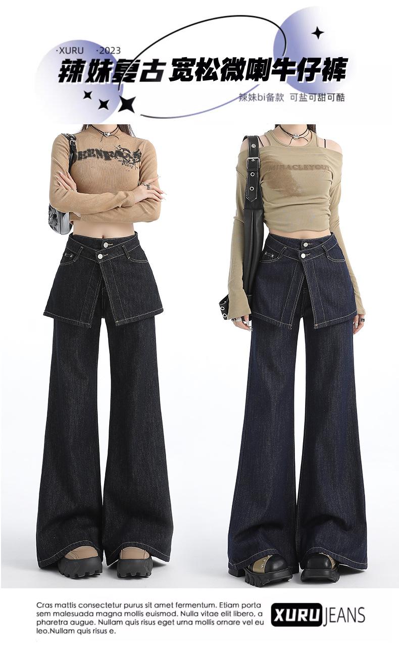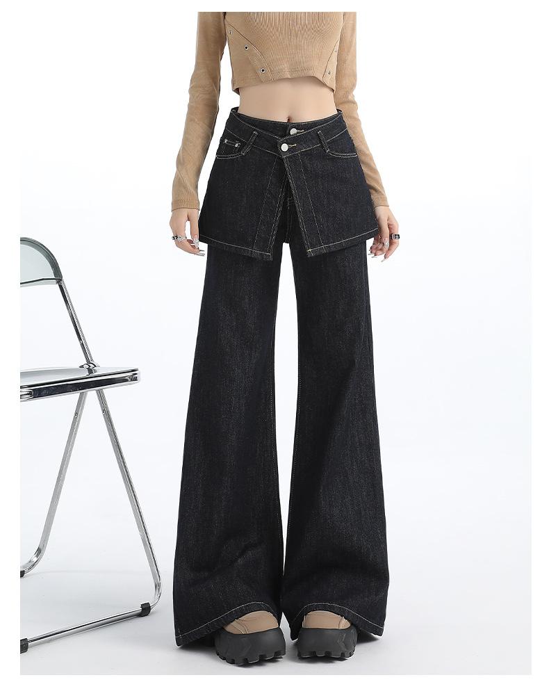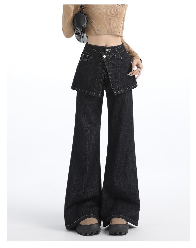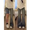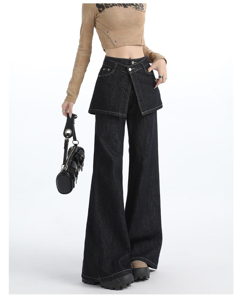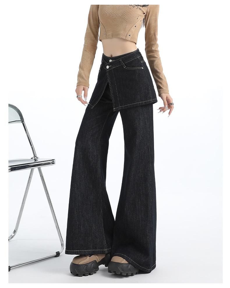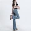 Jeans acampanados negros para mujer otoño e invierno 2025 nuevos de cintura alta con diseño irregular pantalones acampanados de herradura
