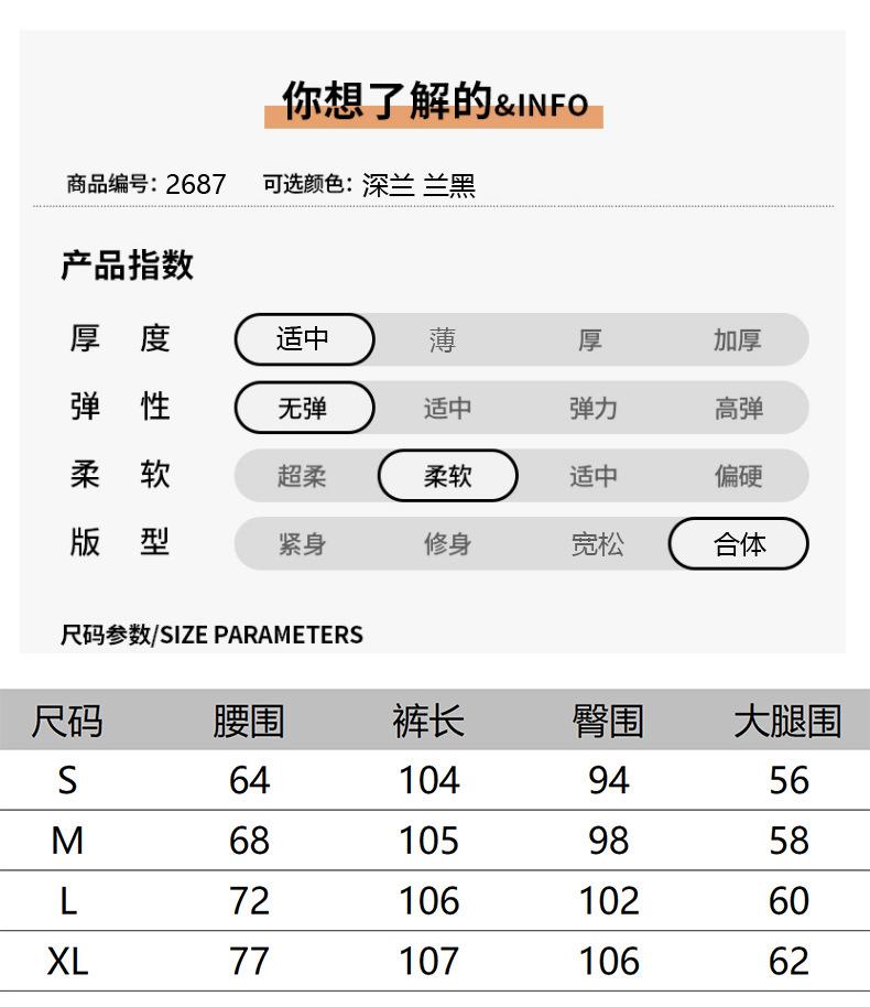 Black (trousers), Black (extended), Dark blue (trousers), Dark blue (extended)