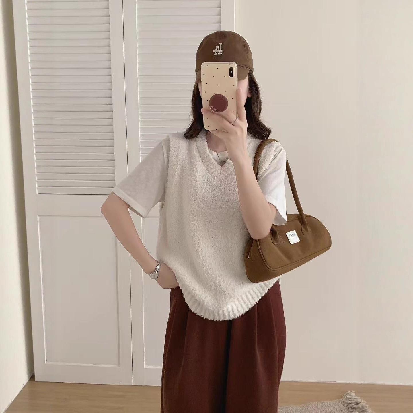 Chaleco suéter versátil 2025 primavera y otoño nuevo estilo holgado adelgazante elegante para superponer coreano casual suave tejido