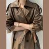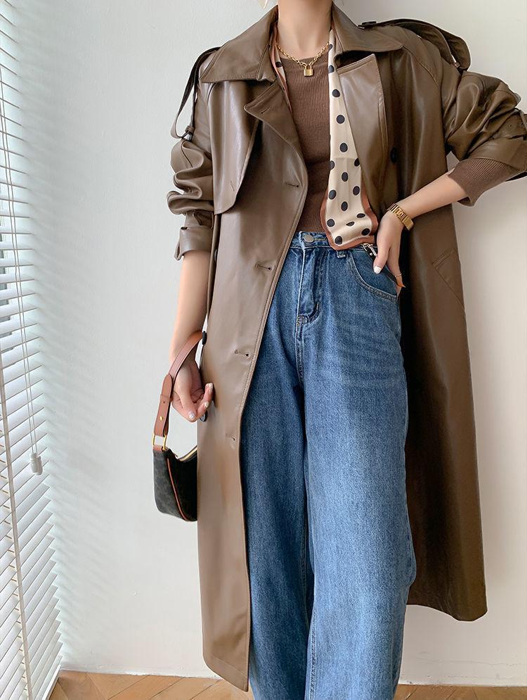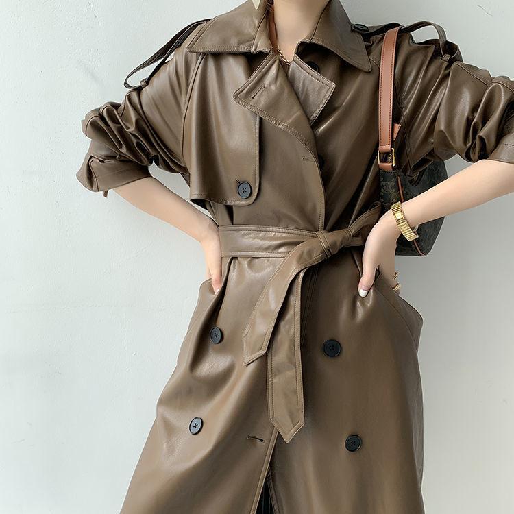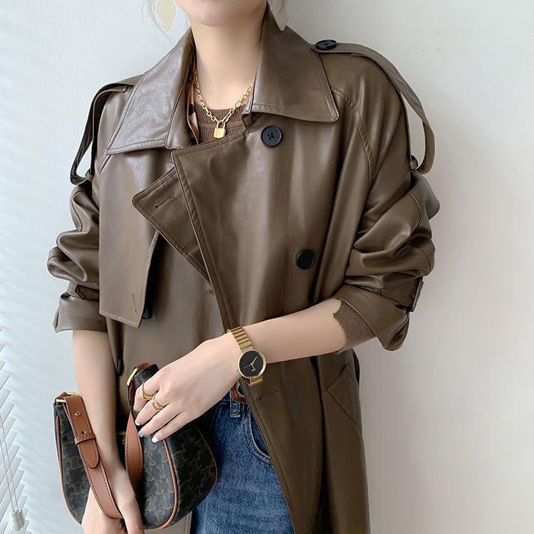 Chaqueta de Cuero para Motocicleta Estilo Británico Retro para Mujer 2025 Otoño Nuevo Largo Medio Adelgazante de Cintura Chaqueta de Cuero PU
