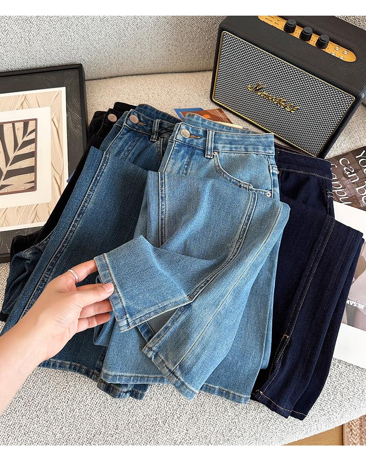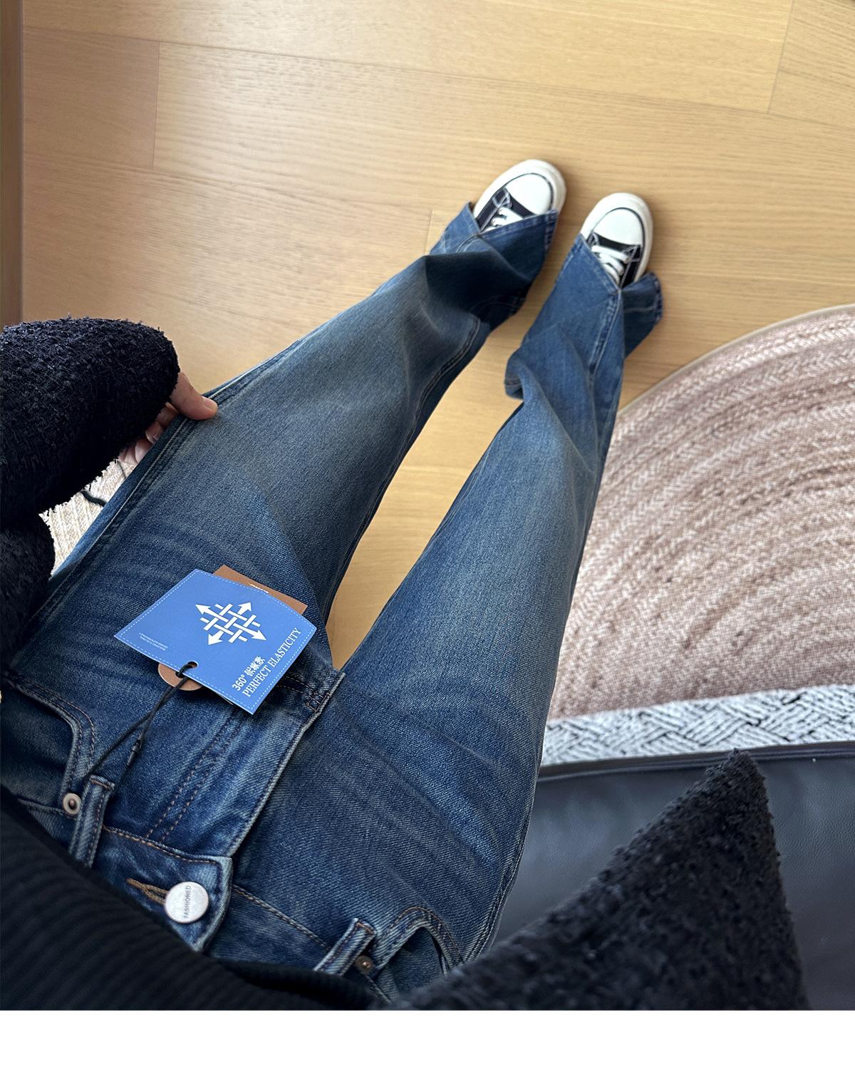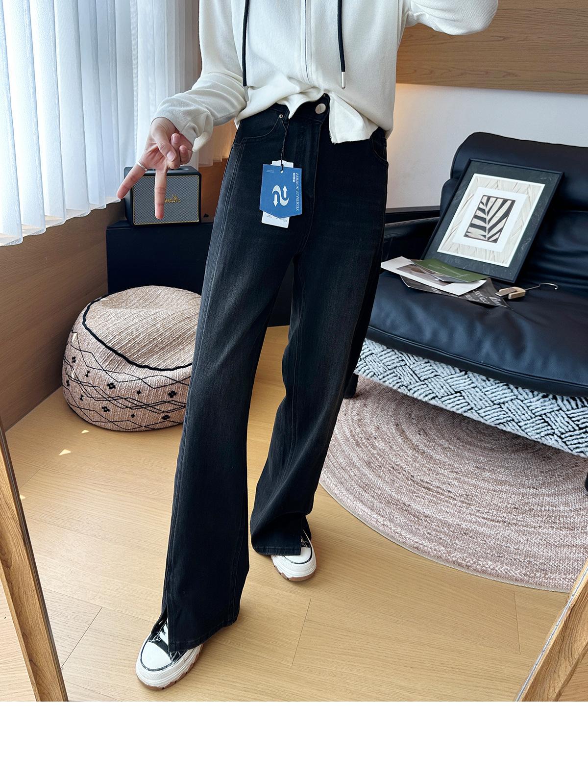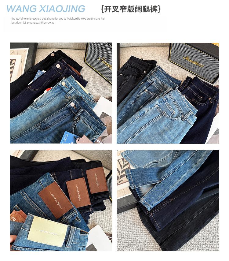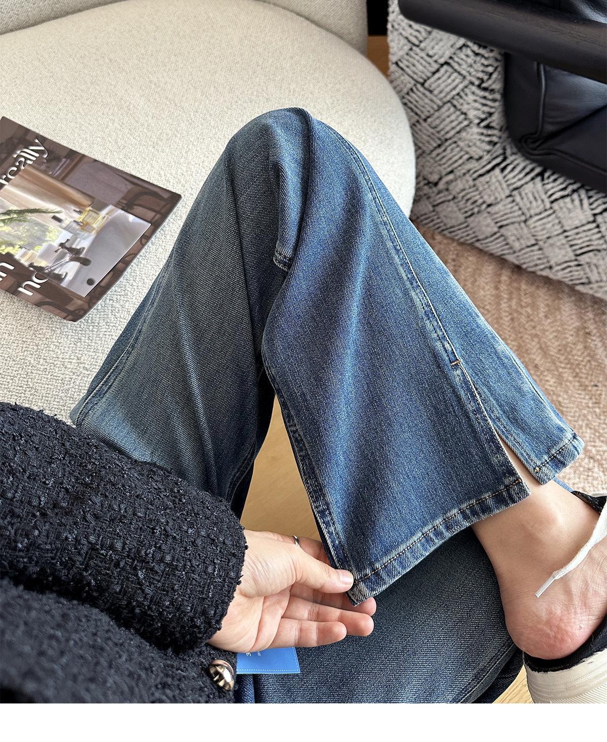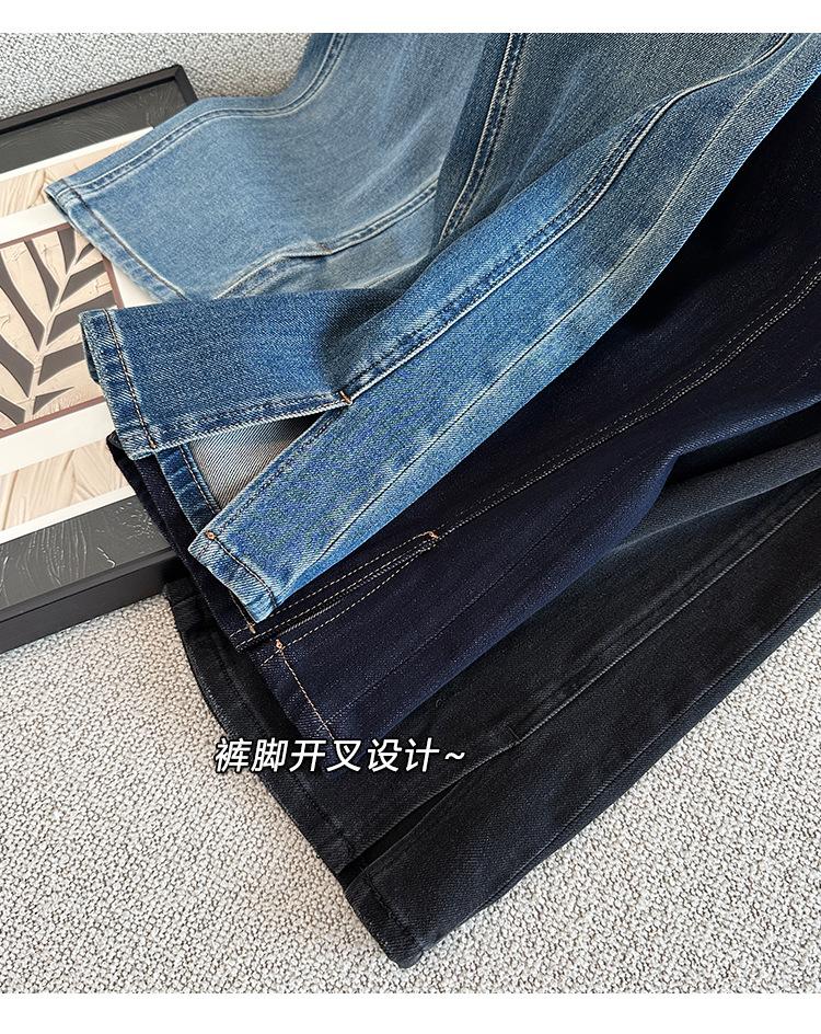 ¡Pantalones mágicos de efecto piernas largas! Otoño nuevos jeans con abertura lateral mujer elásticos en cuatro direcciones corte ajustado pierna recta pantalones de pierna ancha