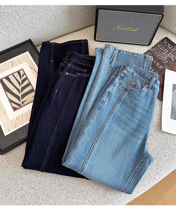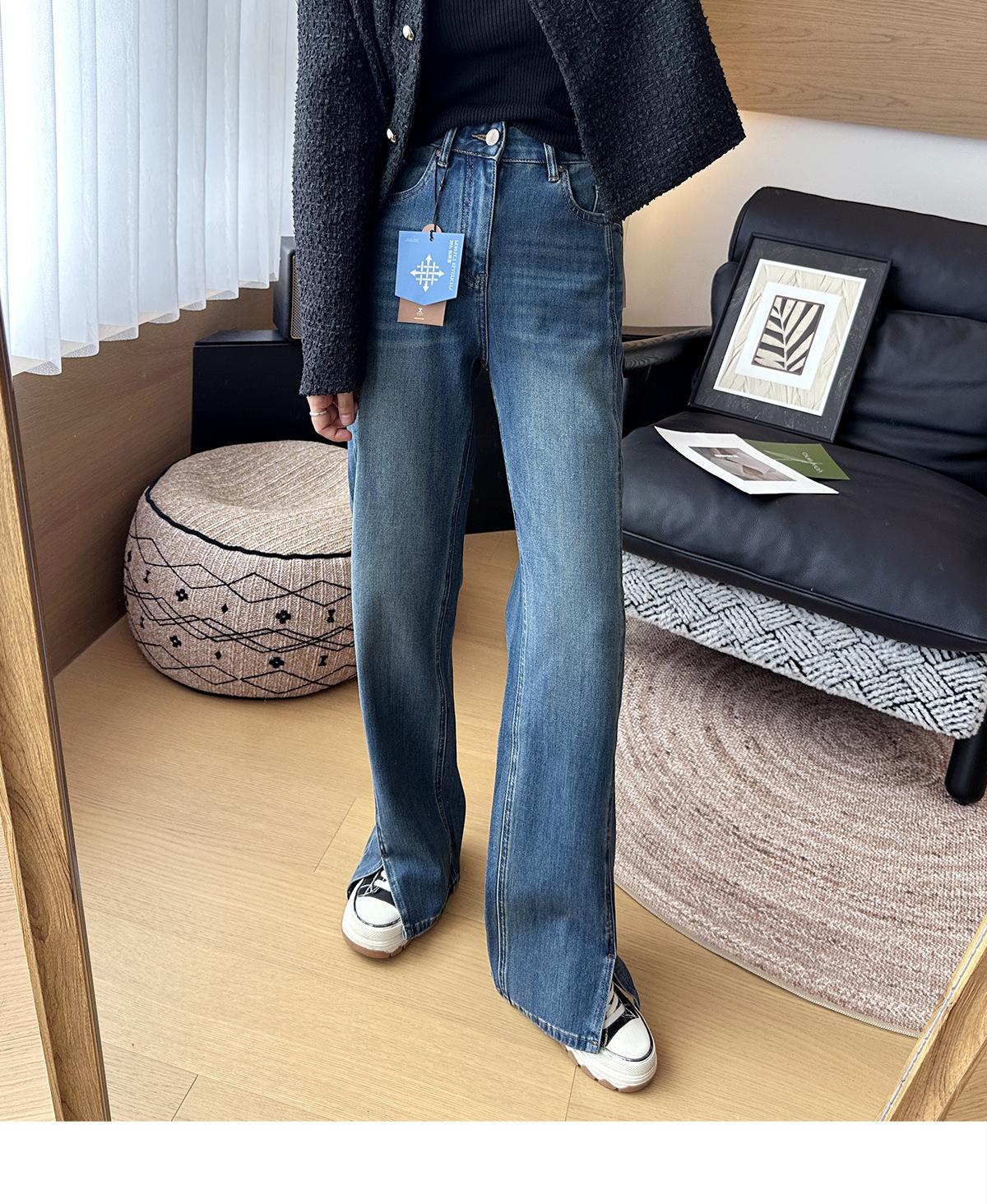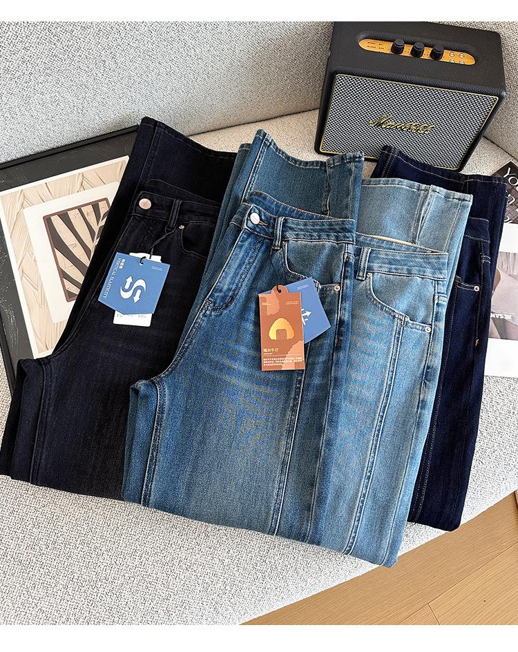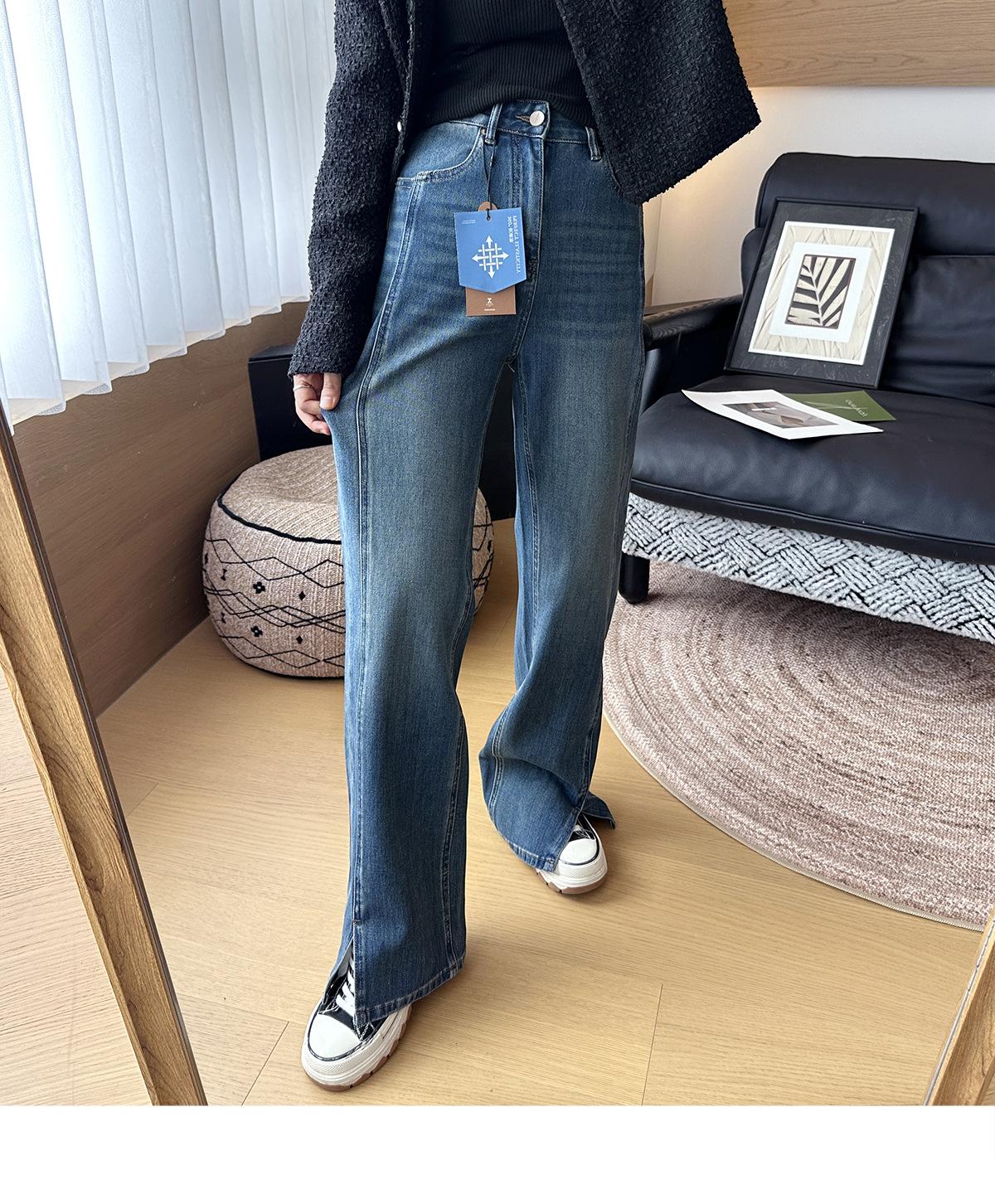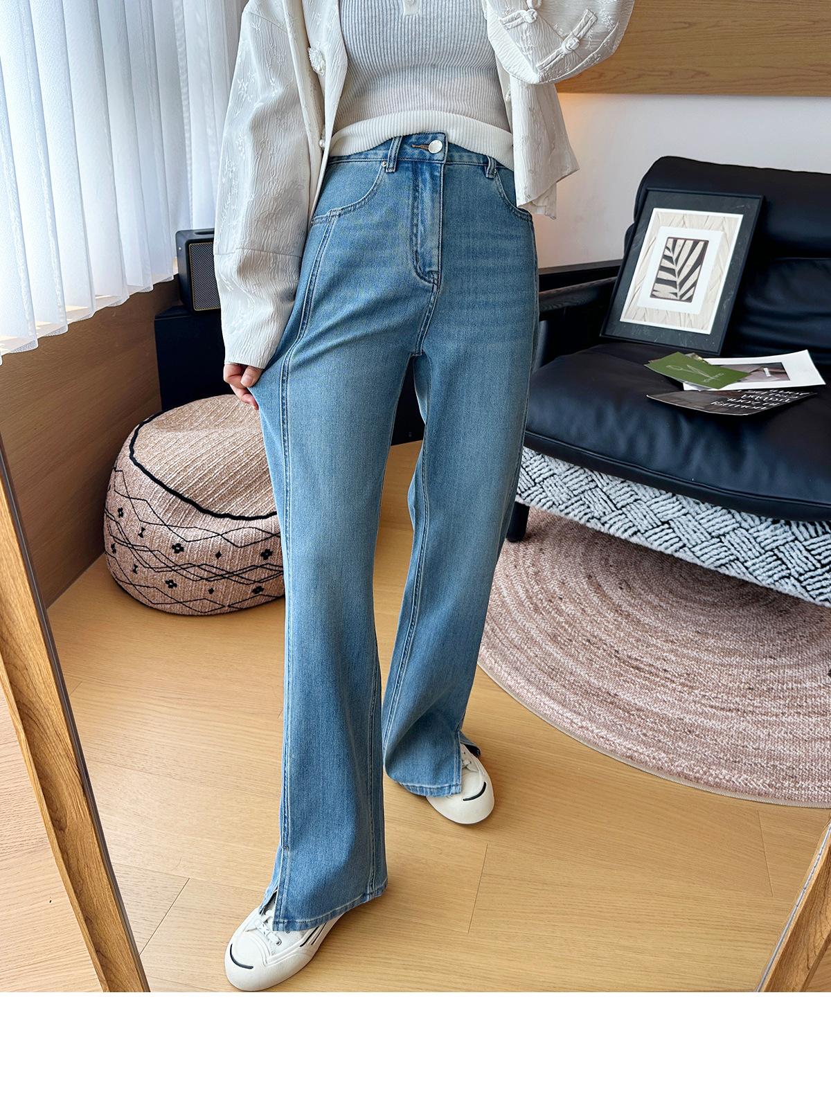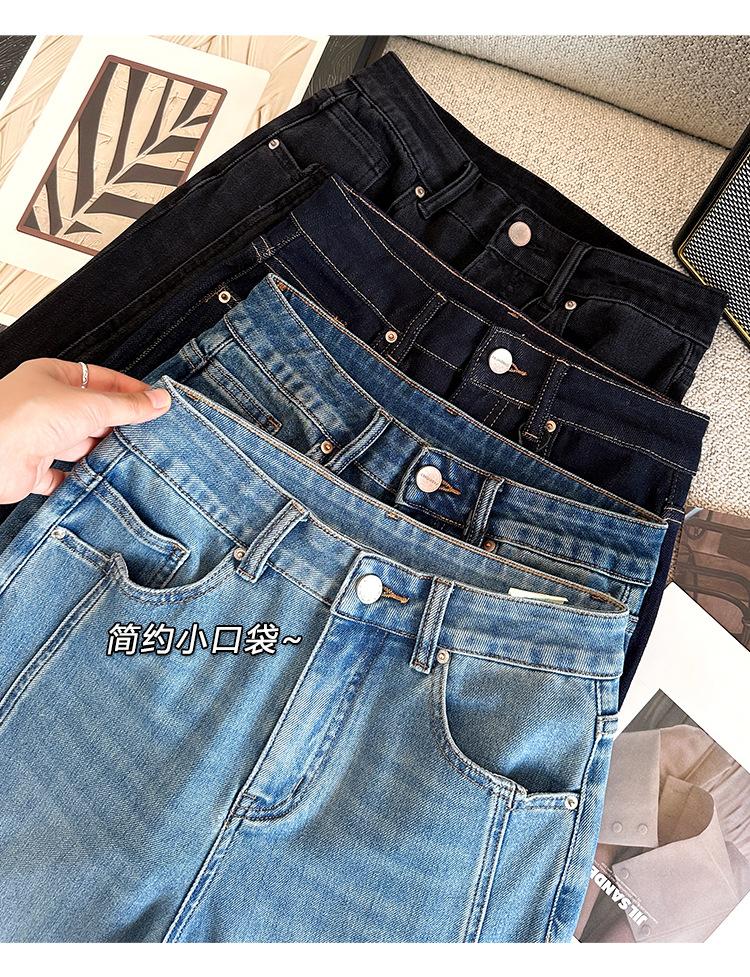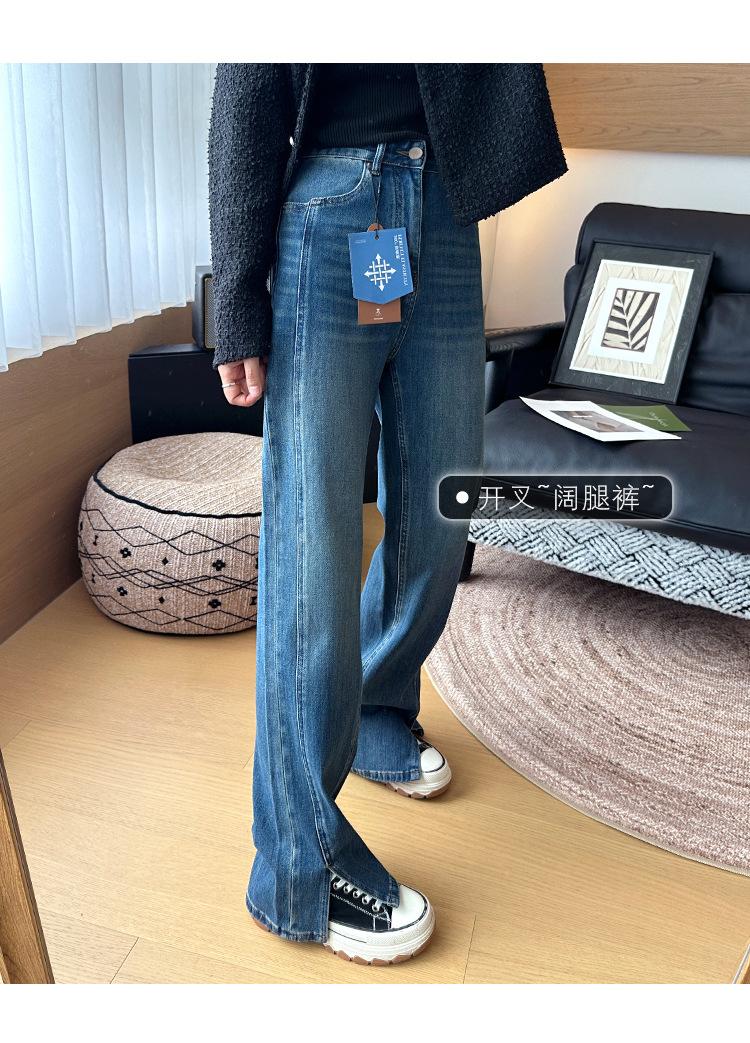 ¡Pantalones mágicos de efecto piernas largas! Otoño nuevos jeans con abertura lateral mujer elásticos en cuatro direcciones corte ajustado pierna recta pantalones de pierna ancha