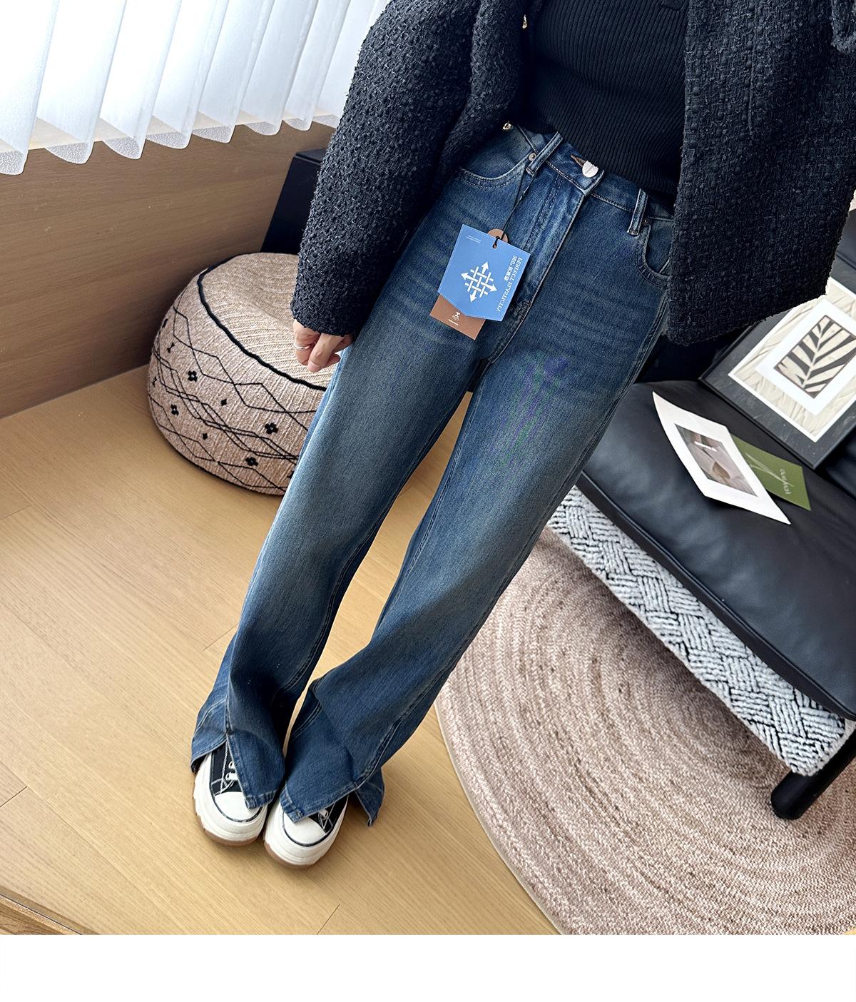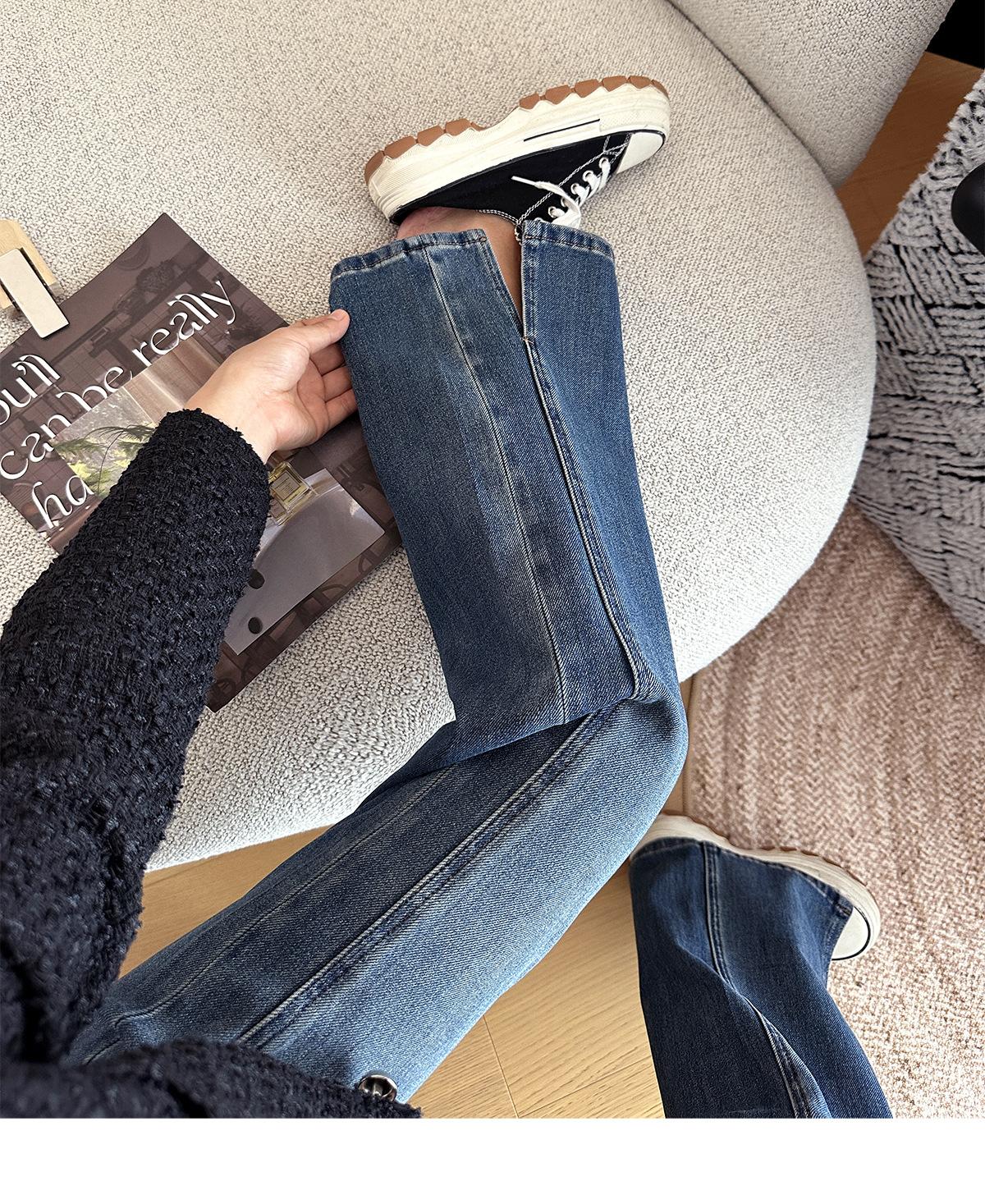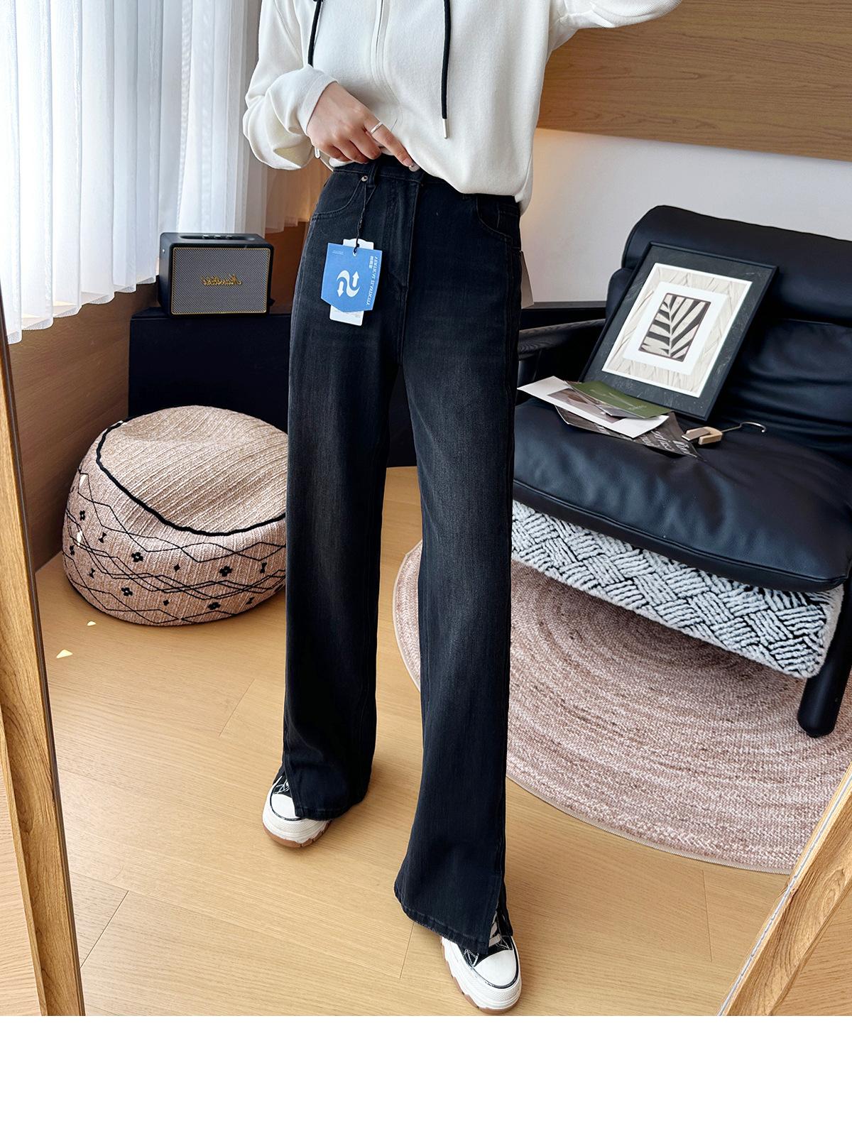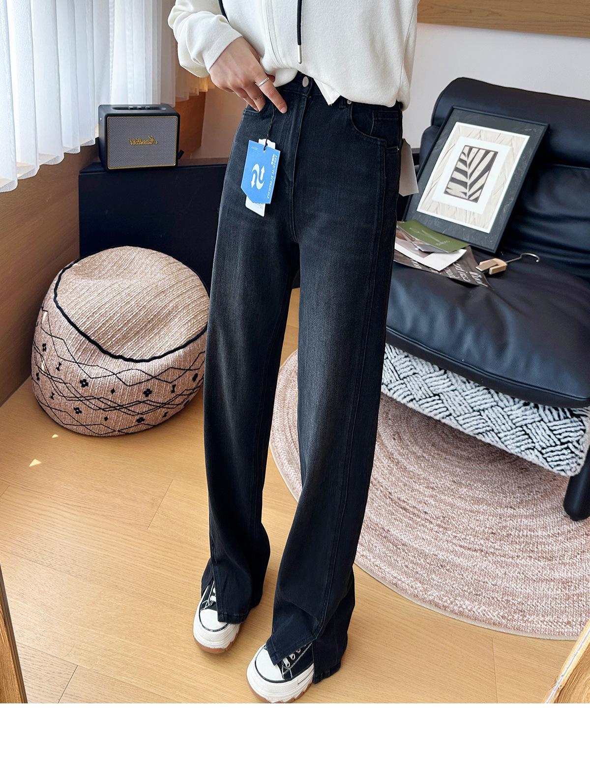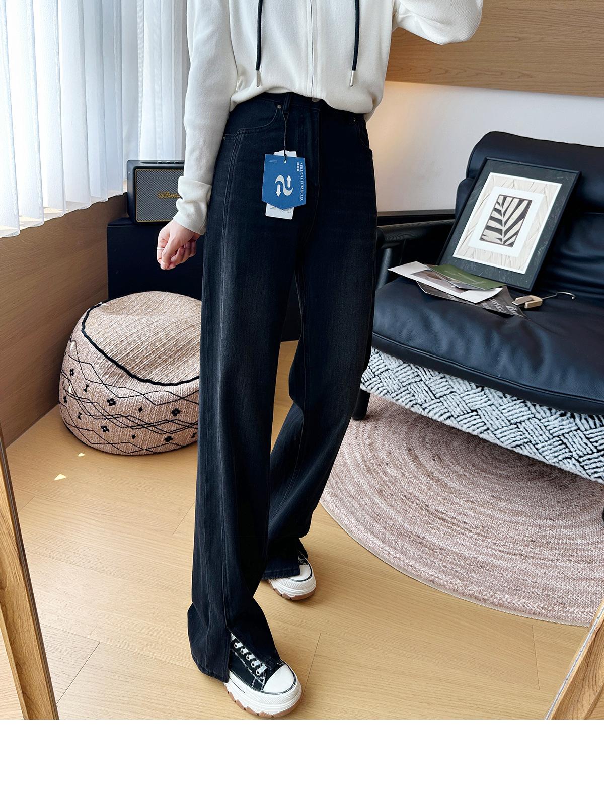 ¡Pantalones mágicos de efecto piernas largas! Otoño nuevos jeans con abertura lateral mujer elásticos en cuatro direcciones corte ajustado pierna recta pantalones de pierna ancha