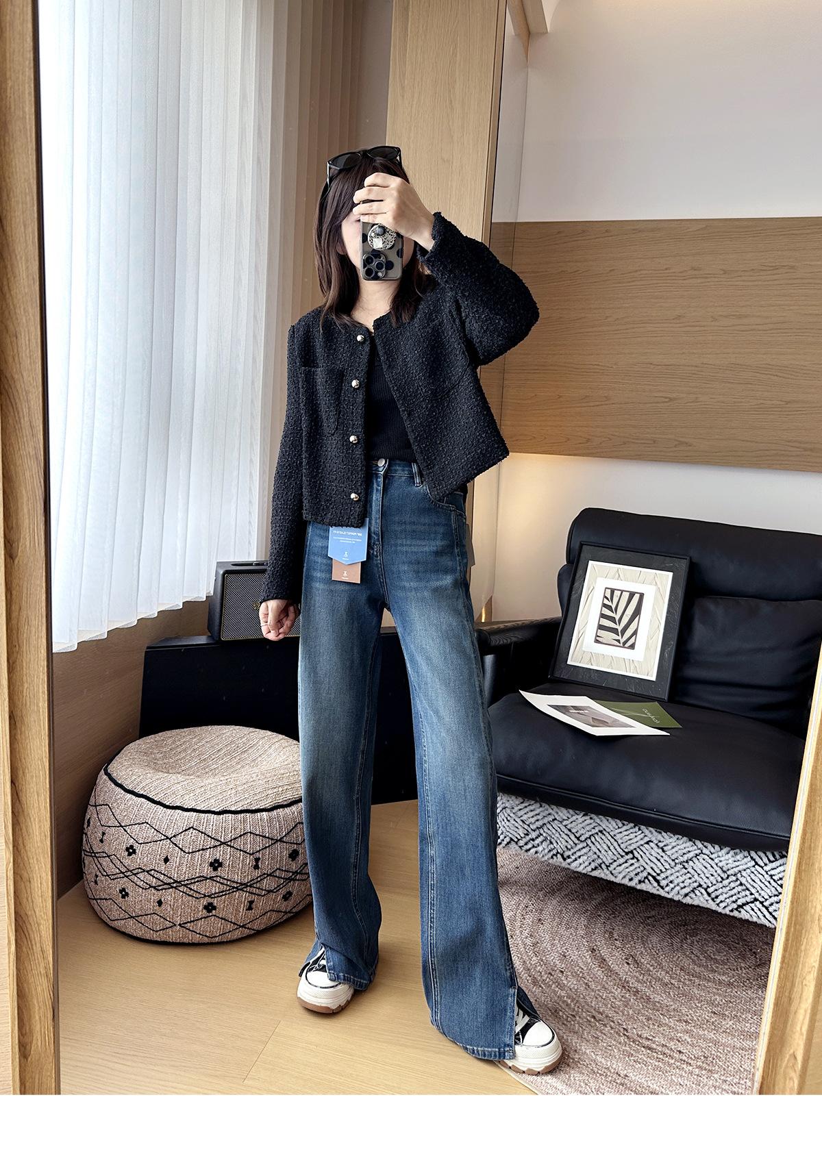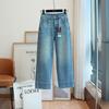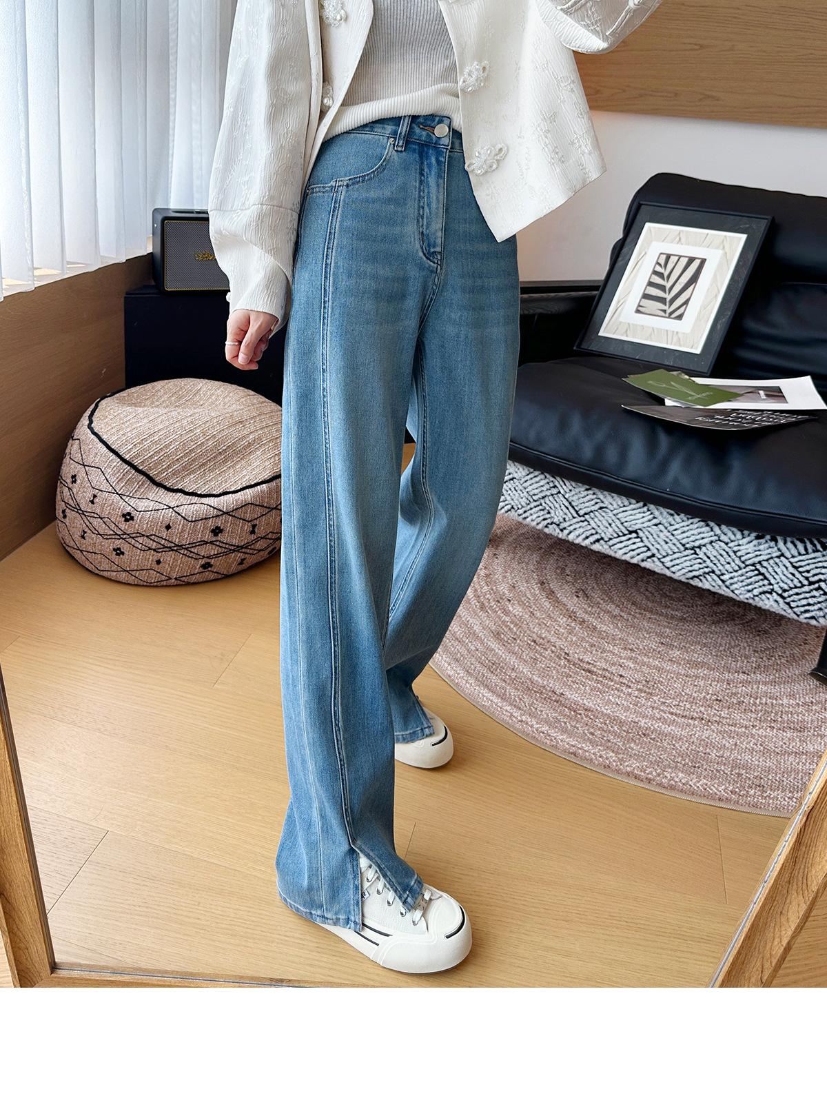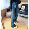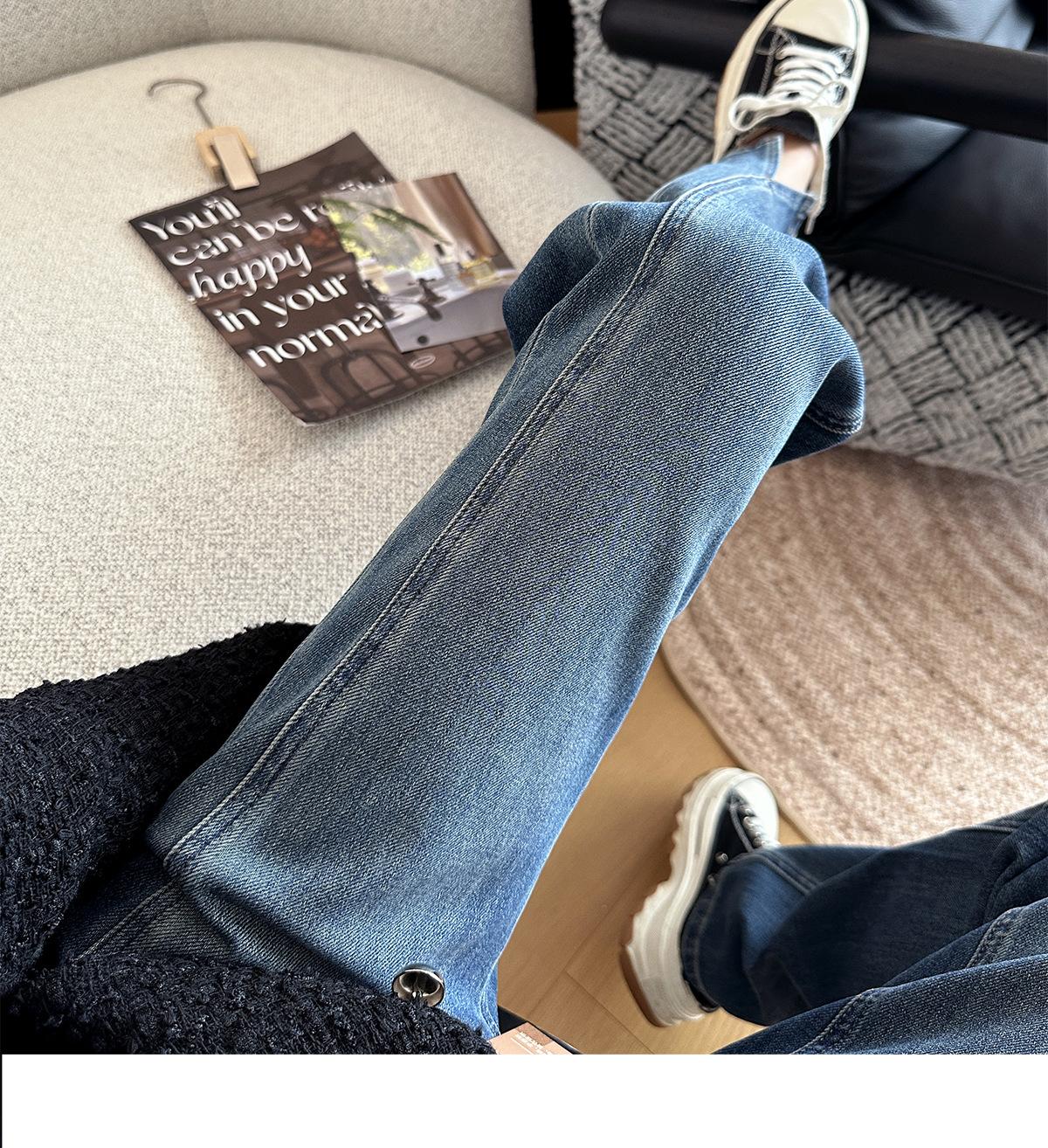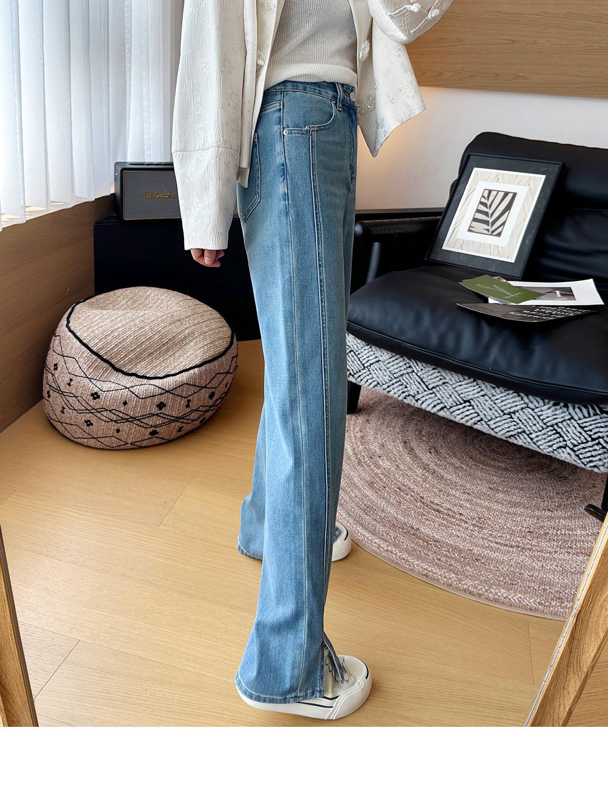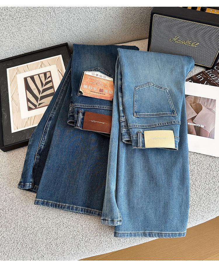 ¡Pantalones mágicos de efecto piernas largas! Otoño nuevos jeans con abertura lateral mujer elásticos en cuatro direcciones corte ajustado pierna recta pantalones de pierna ancha