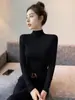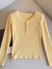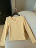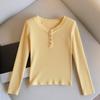 Camiseta Amarilla de Manga Larga con Hombro Recto para Mujer Otoño Ajuste Slim Capa Interior Camiseta Base Diseño Top 2025 Nuevo Top