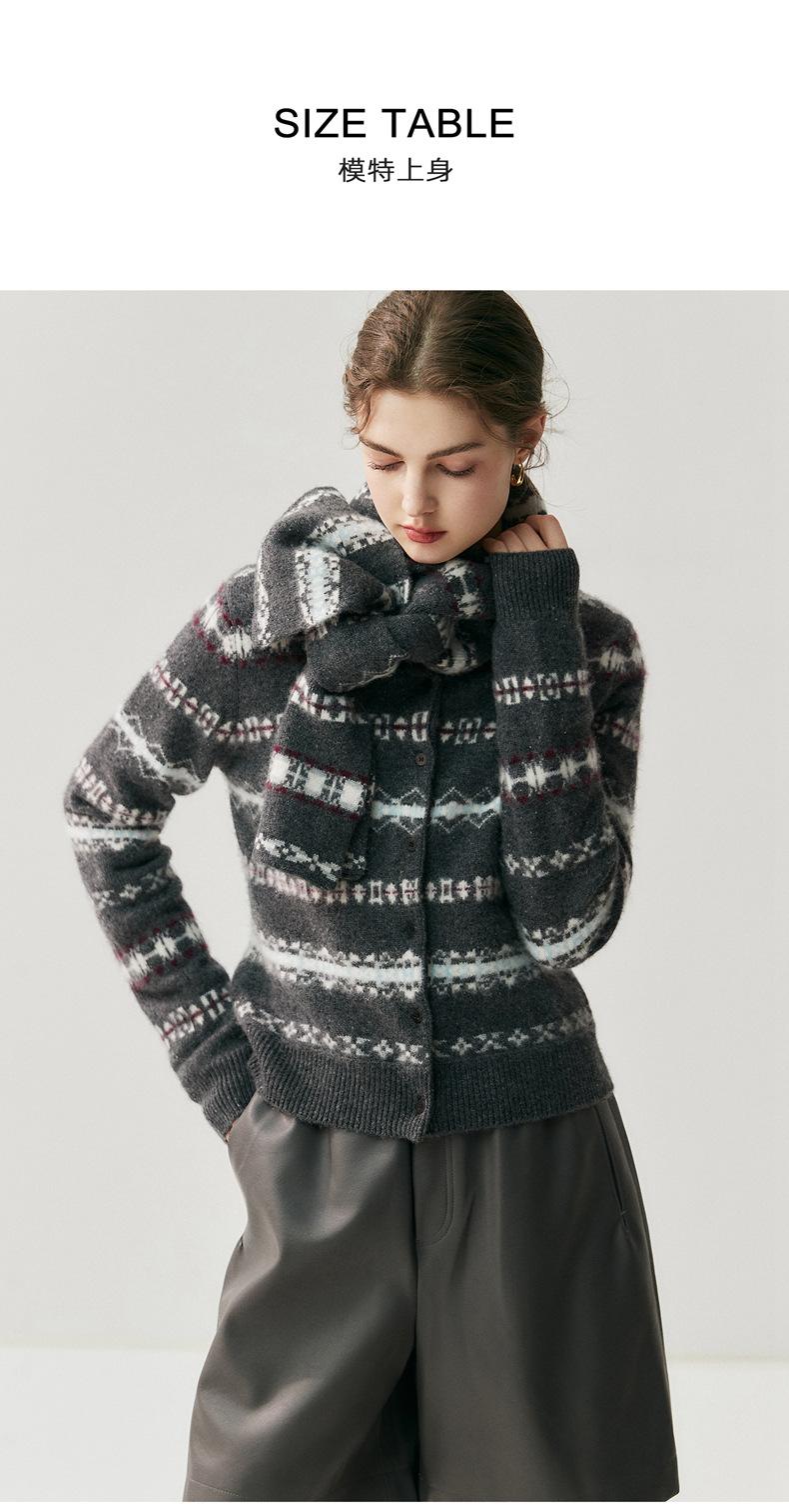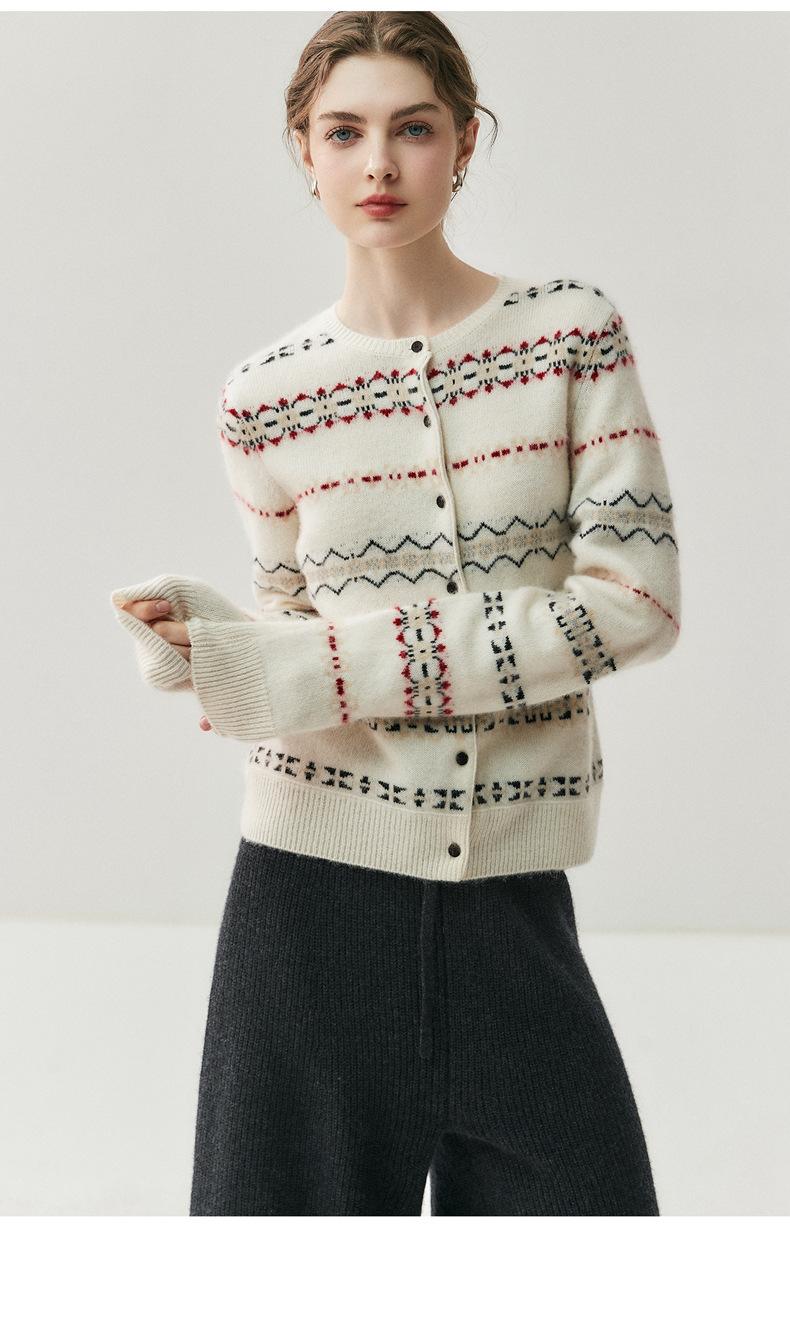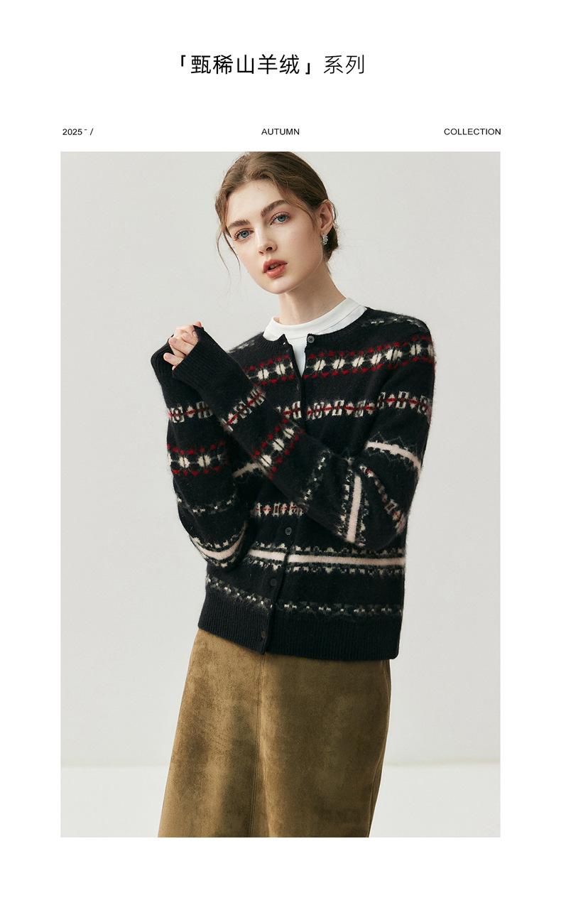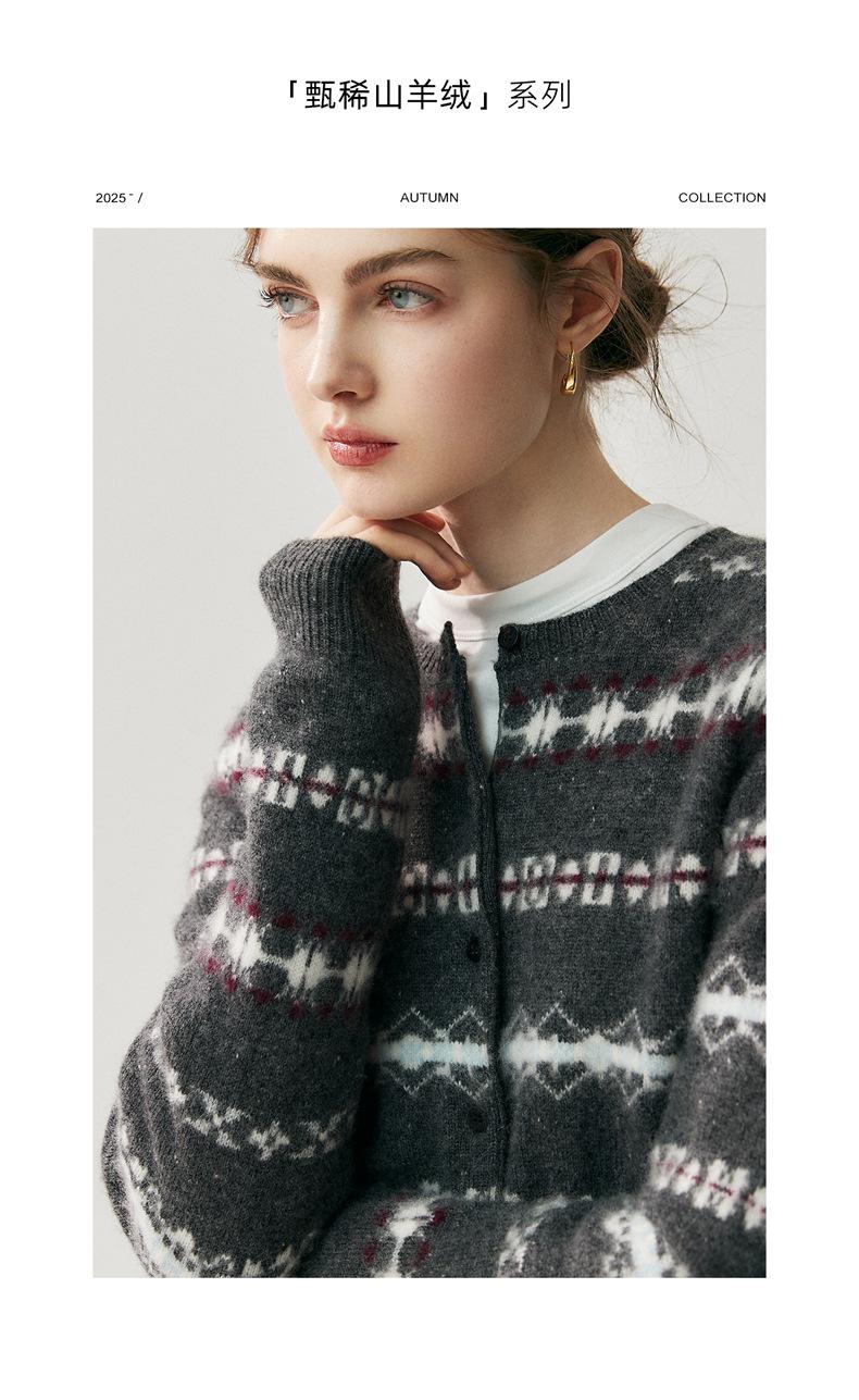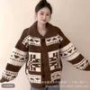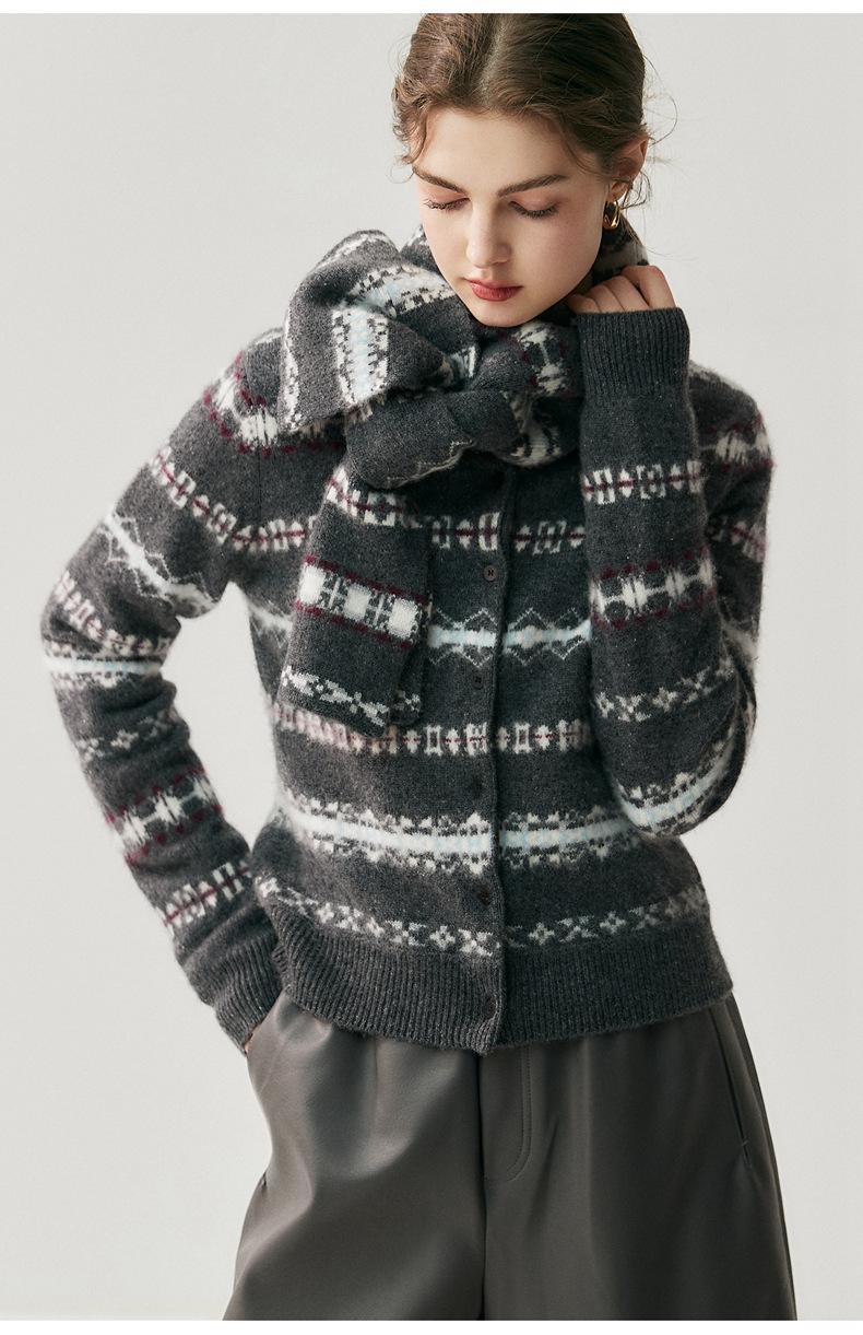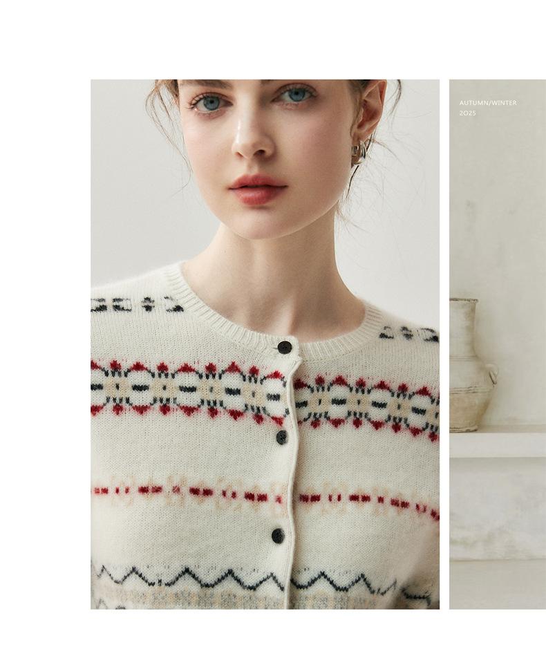 Jacquard Fair Isle Prendas de Punto de Cachemira para Mujer Otoño/Invierno 2025 Nuevo Cárdigan de Punto con Bloques de Color Retro Simple Suave